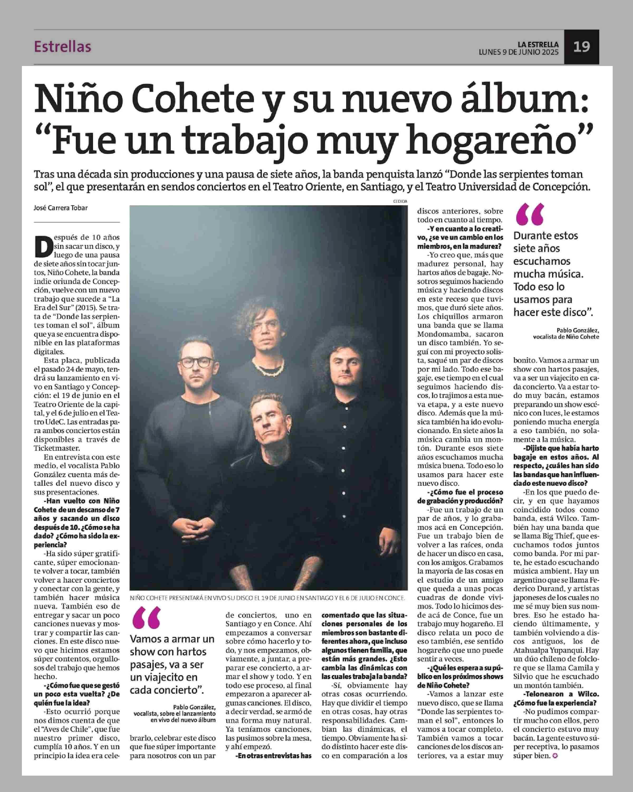 Niño Cohete y su nuevo álbum: "Fue un trabajo muy hogareño" 09-06-2025 La Estrella de Concepción |