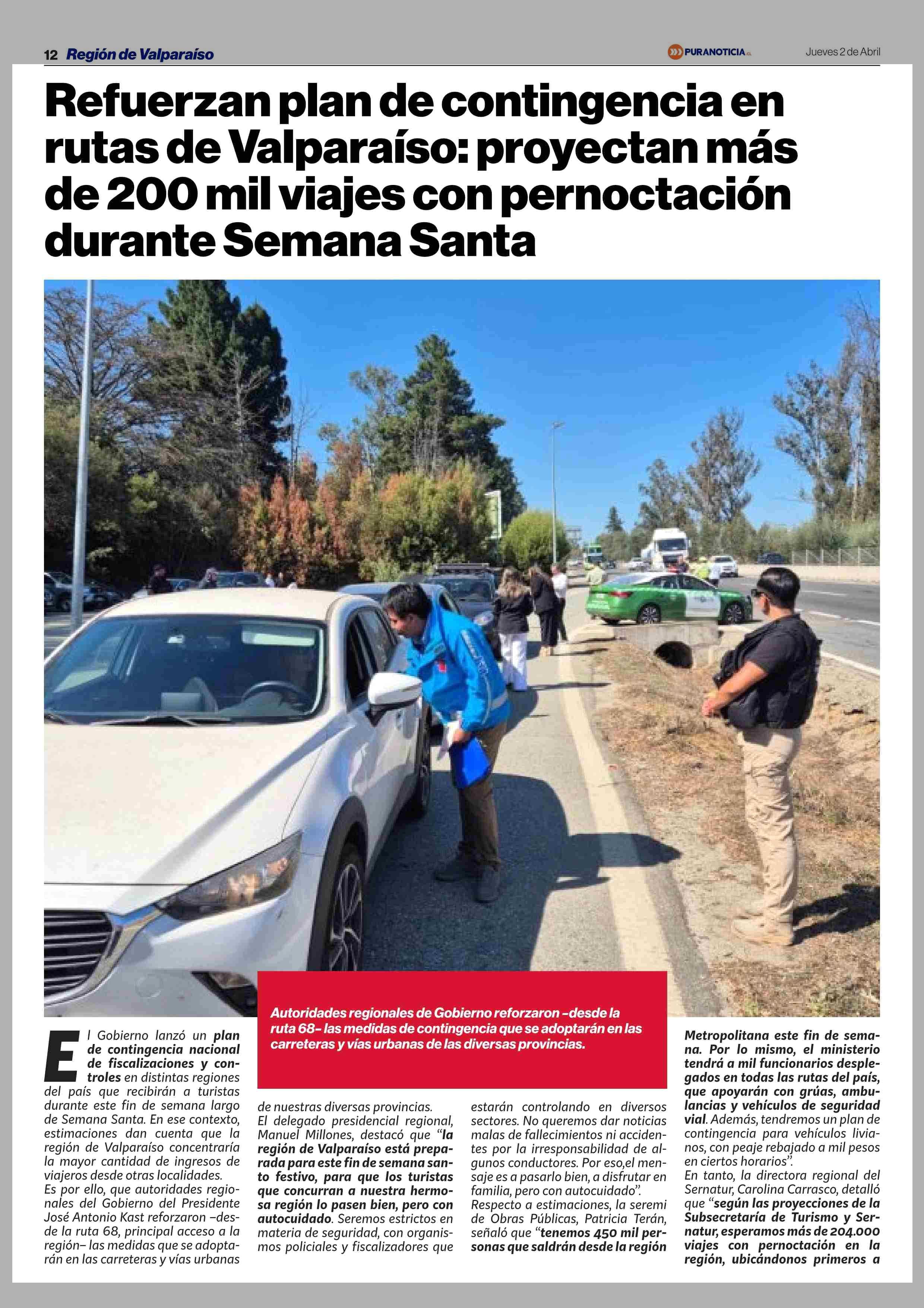 Refuerzan plan de contingencia en rutas de Valparaíso: proyectan más de 200 mil viajes con pernoctación durante Semana Santa 02-04-2026 Puranoticia.cl |