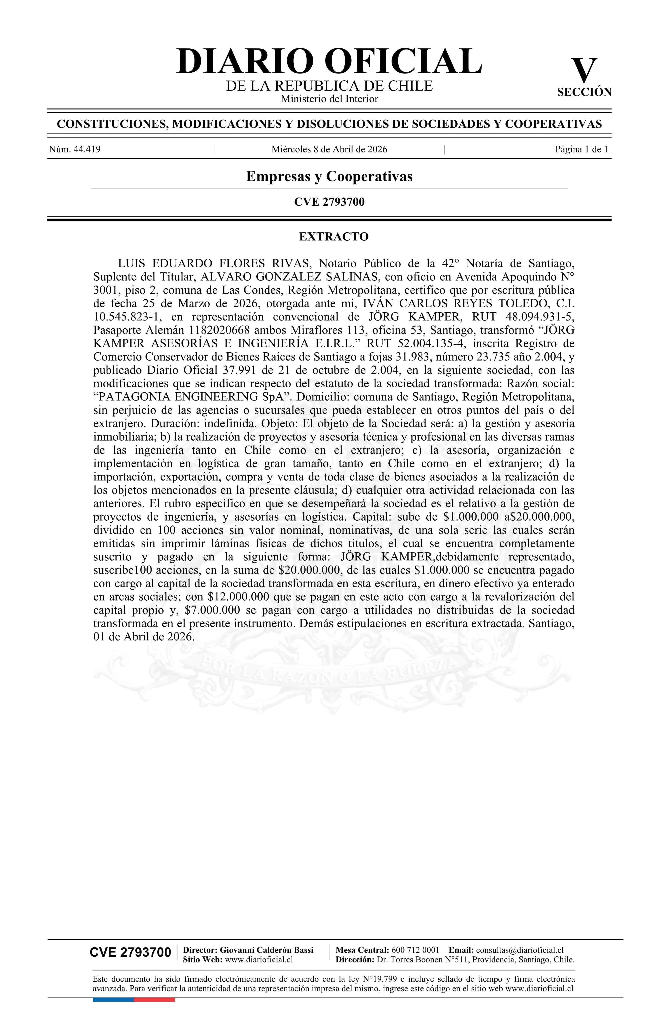 JÖRG KAMPER ASESORÍAS E INGENIERÍA E.I.R.L. 52.004.135-4 08-04-2026 Diario Oficial Edición Electrónica |
