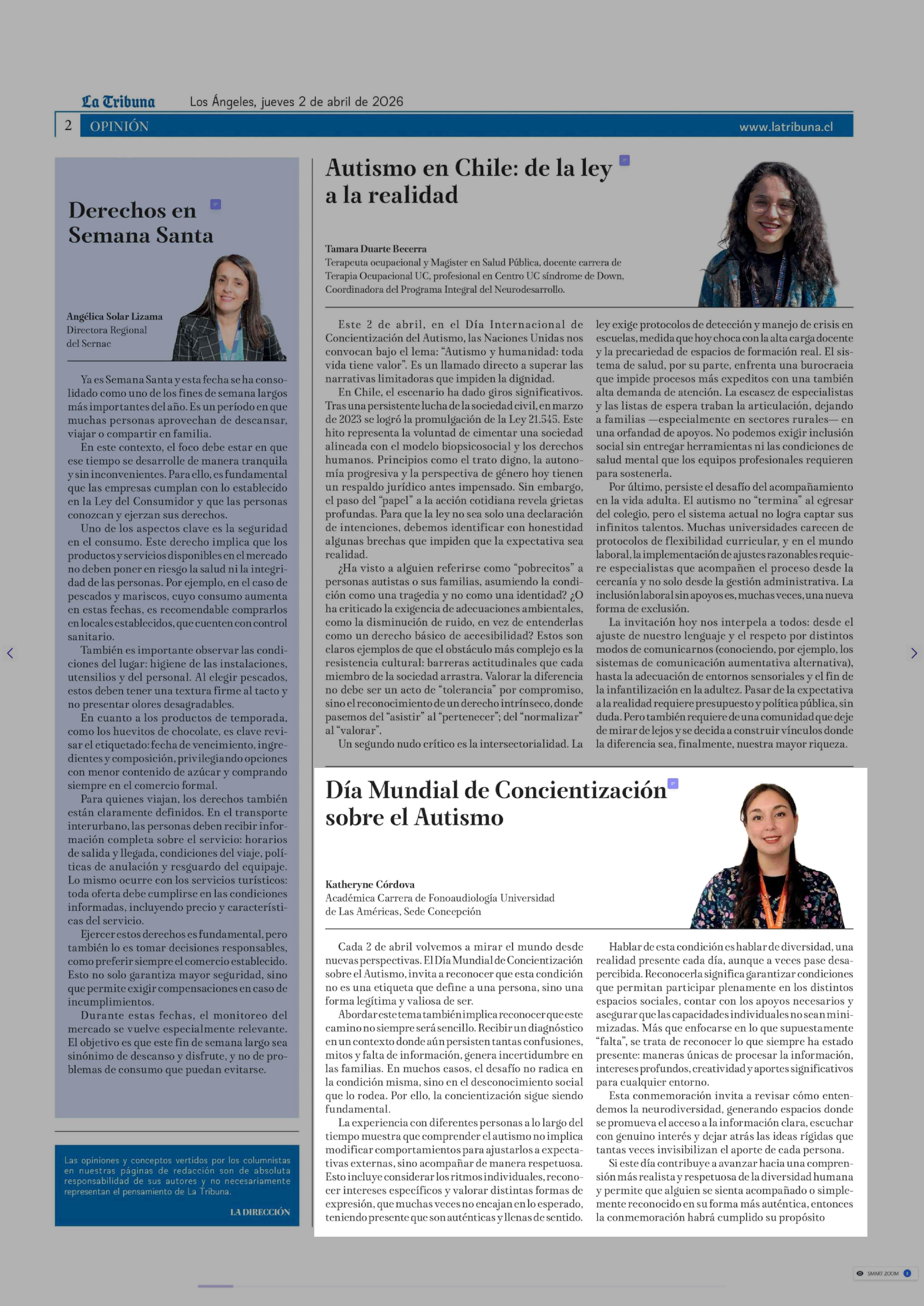 | Título: | Columnas de Opinión: Día Mundial de Concientización sobre el Autismo |