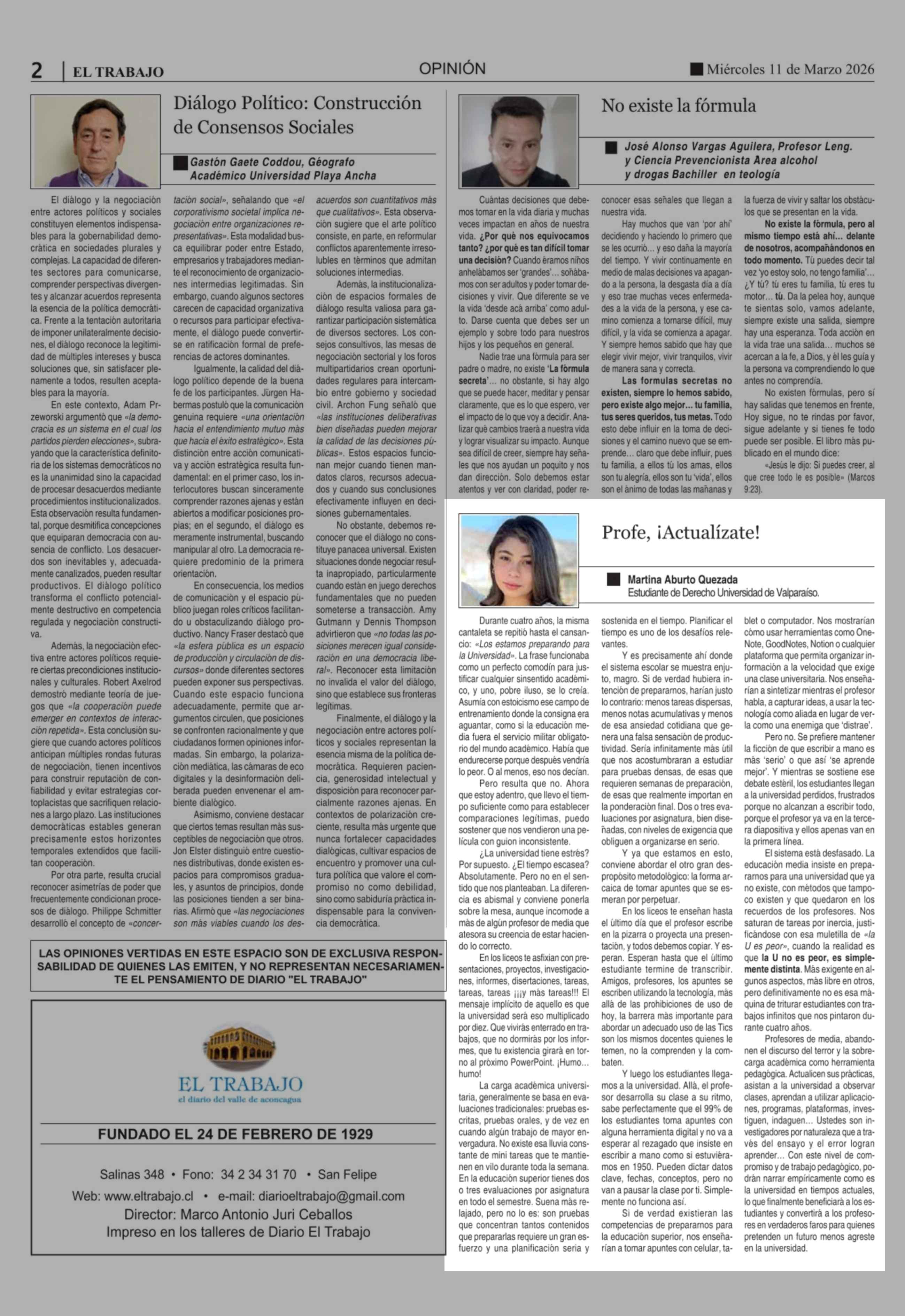 Fecha: 11-03-2026 Sector: Columnas de Opinión Región: Región de Valparaíso