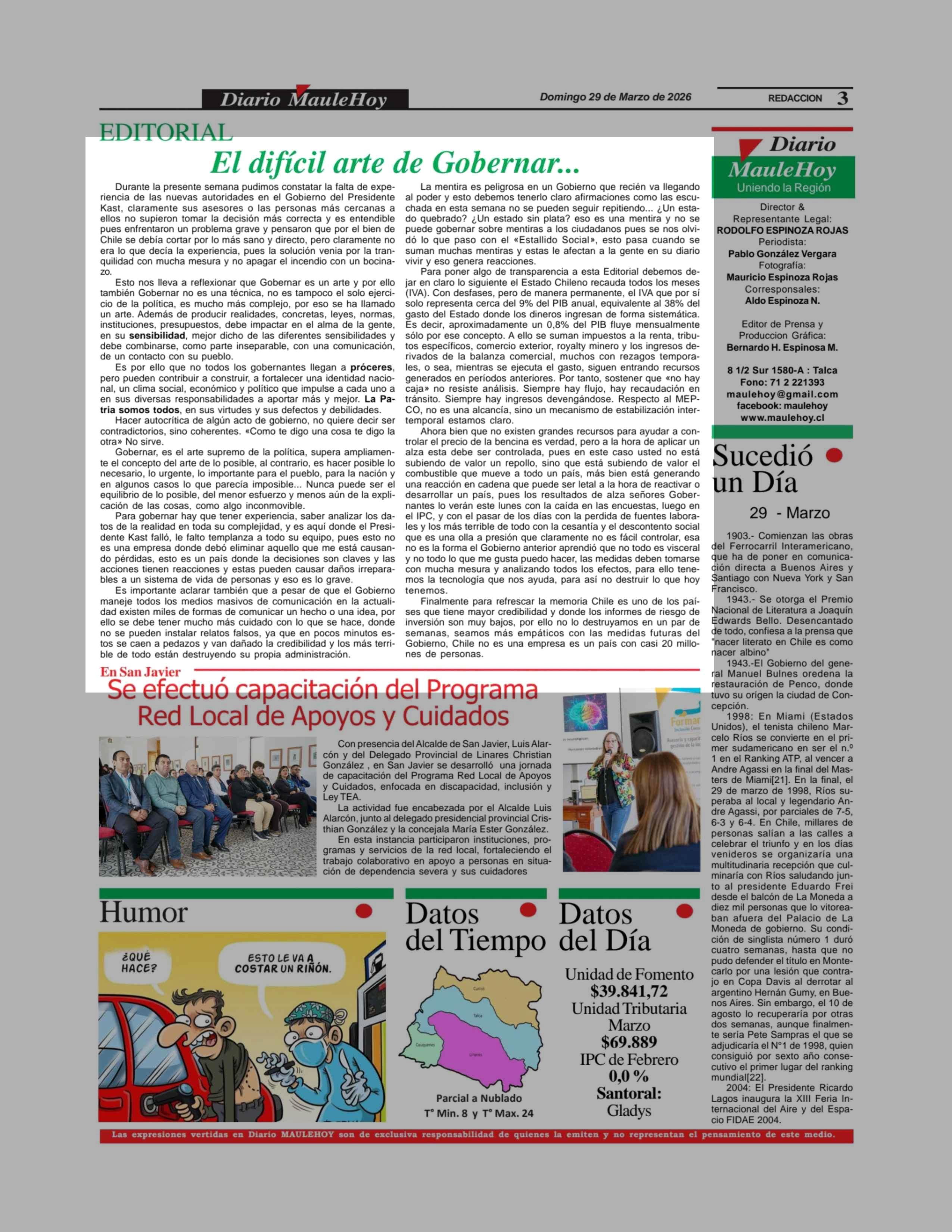 Fecha: 29-03-2026 Sector: Editorial Región: Región del Maule