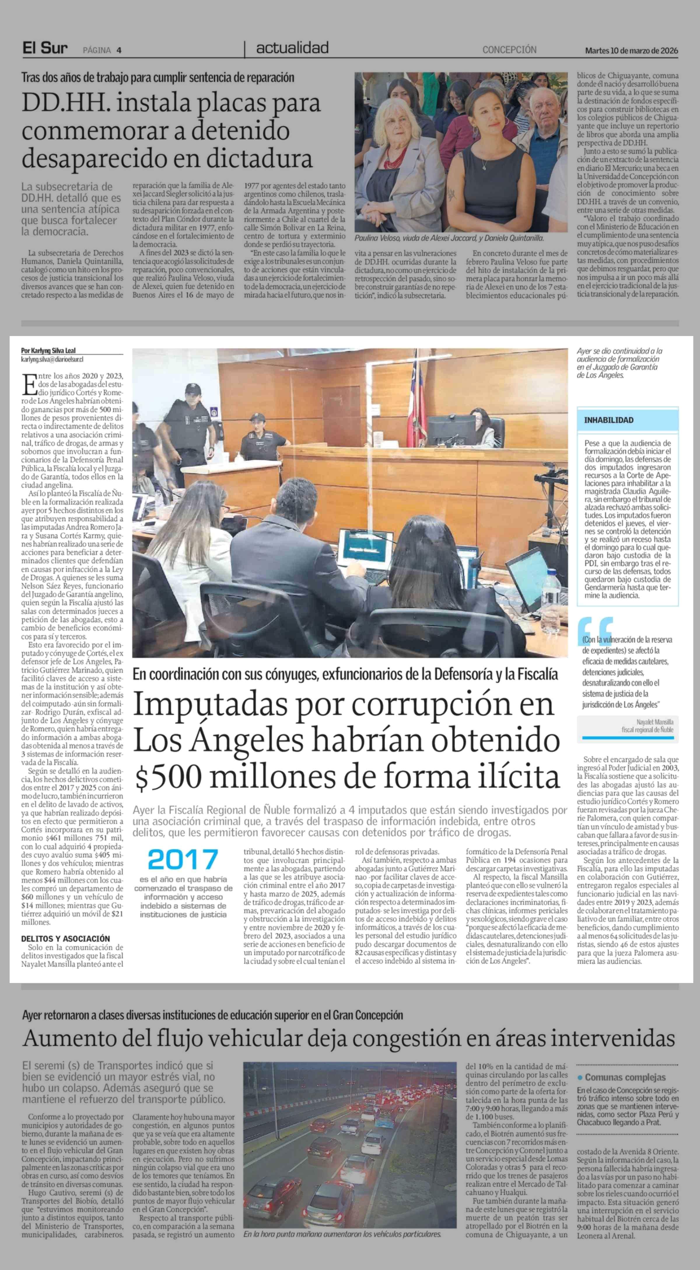 Imputadas por corrupción en Los Angeles habrían obtenido $500 millones de forma ilícita 10-03-2026 El Sur |