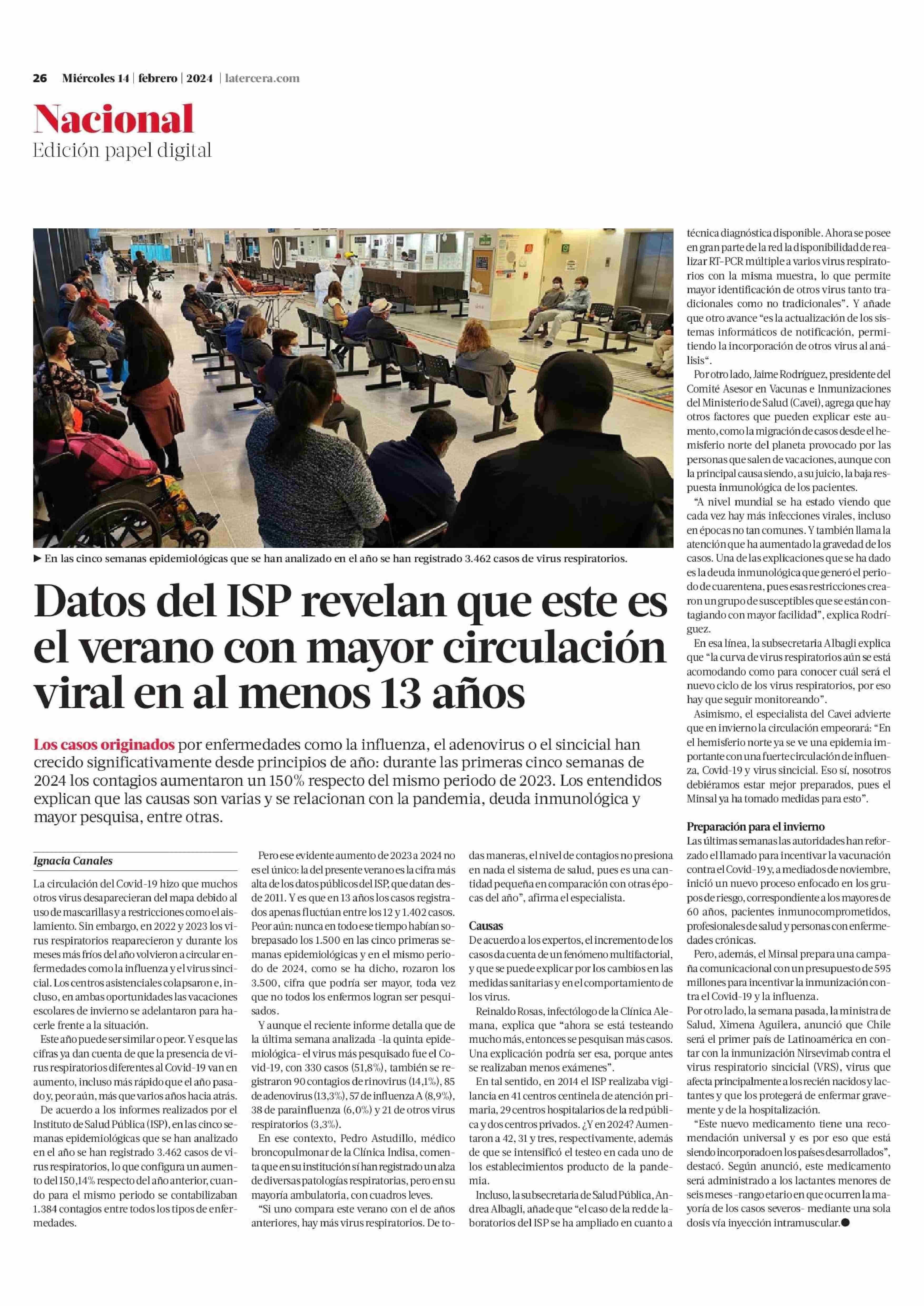 Datos del ISP revelan que este es el verano con mayor circulación viral en al menos 13 años 14-02-2024 La Tercera |