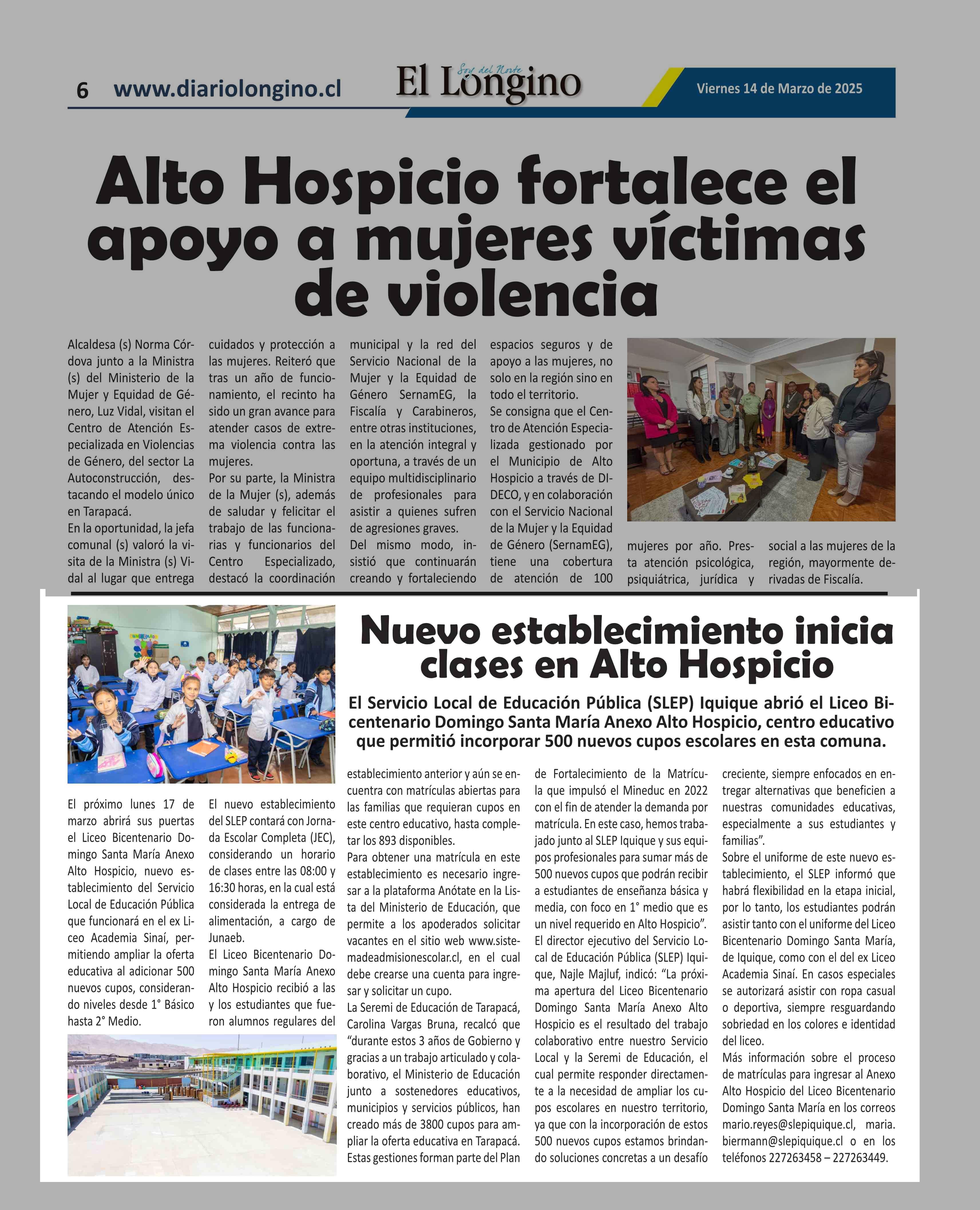 Nuevo establecimiento inicia clases en Alto Hospicio 14-03-2025 El Longino |