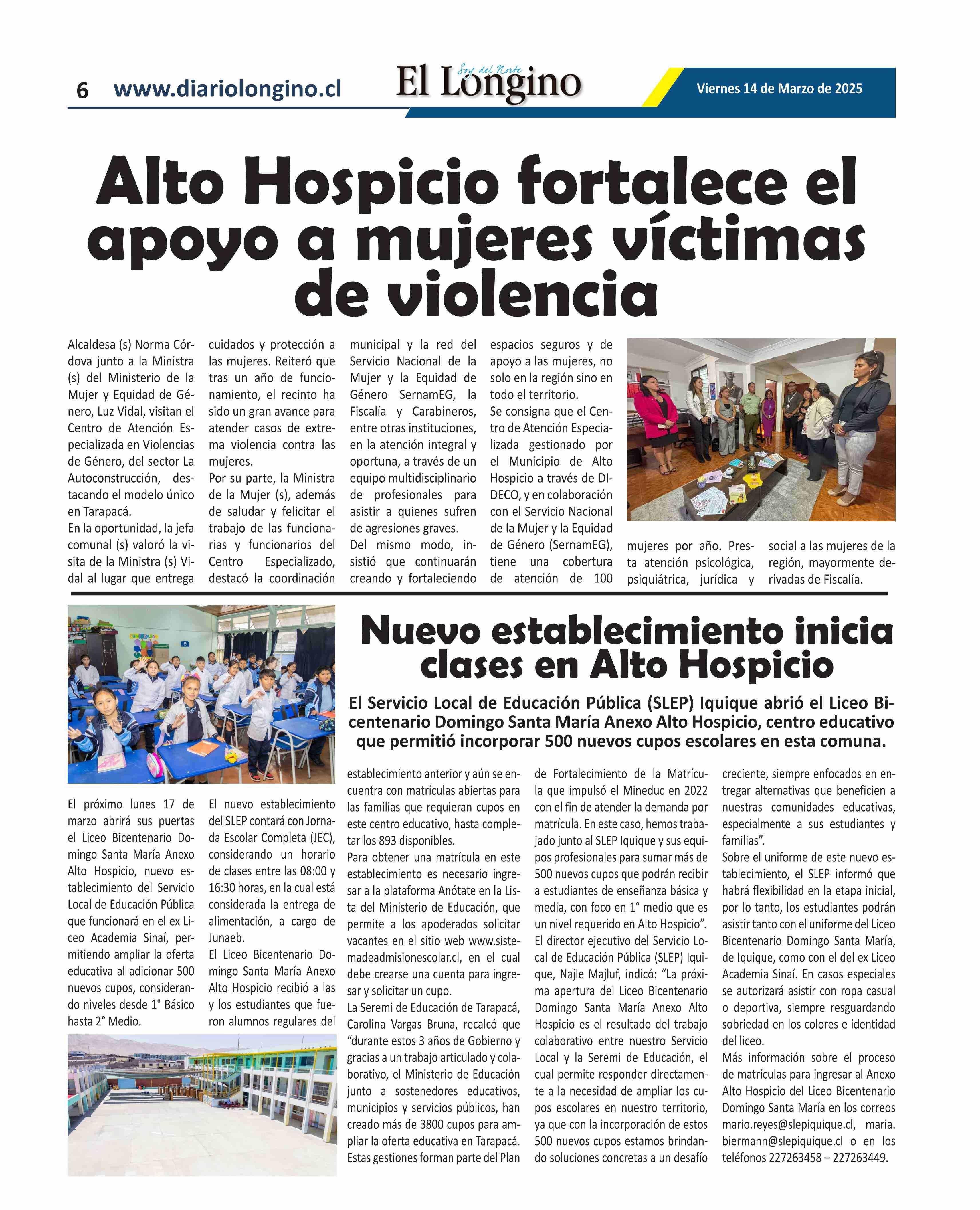 | Fecha: | 14-03-2025 | Sector: | Noticia general | Región: | Región de Tarapacá |