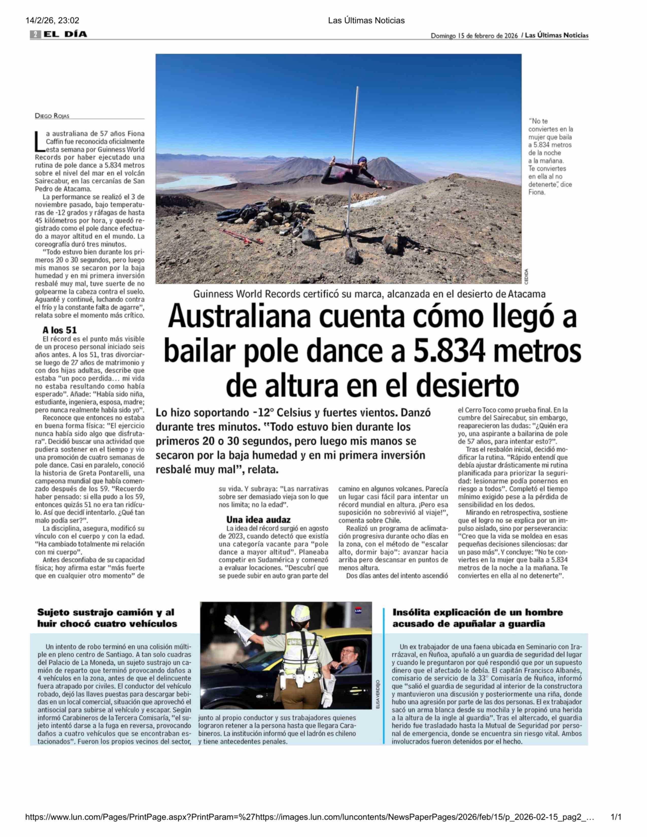 | Fecha: | 15-02-2026 | Sector: | Noticia general | Región: | Región Metropolitana de Santiago |