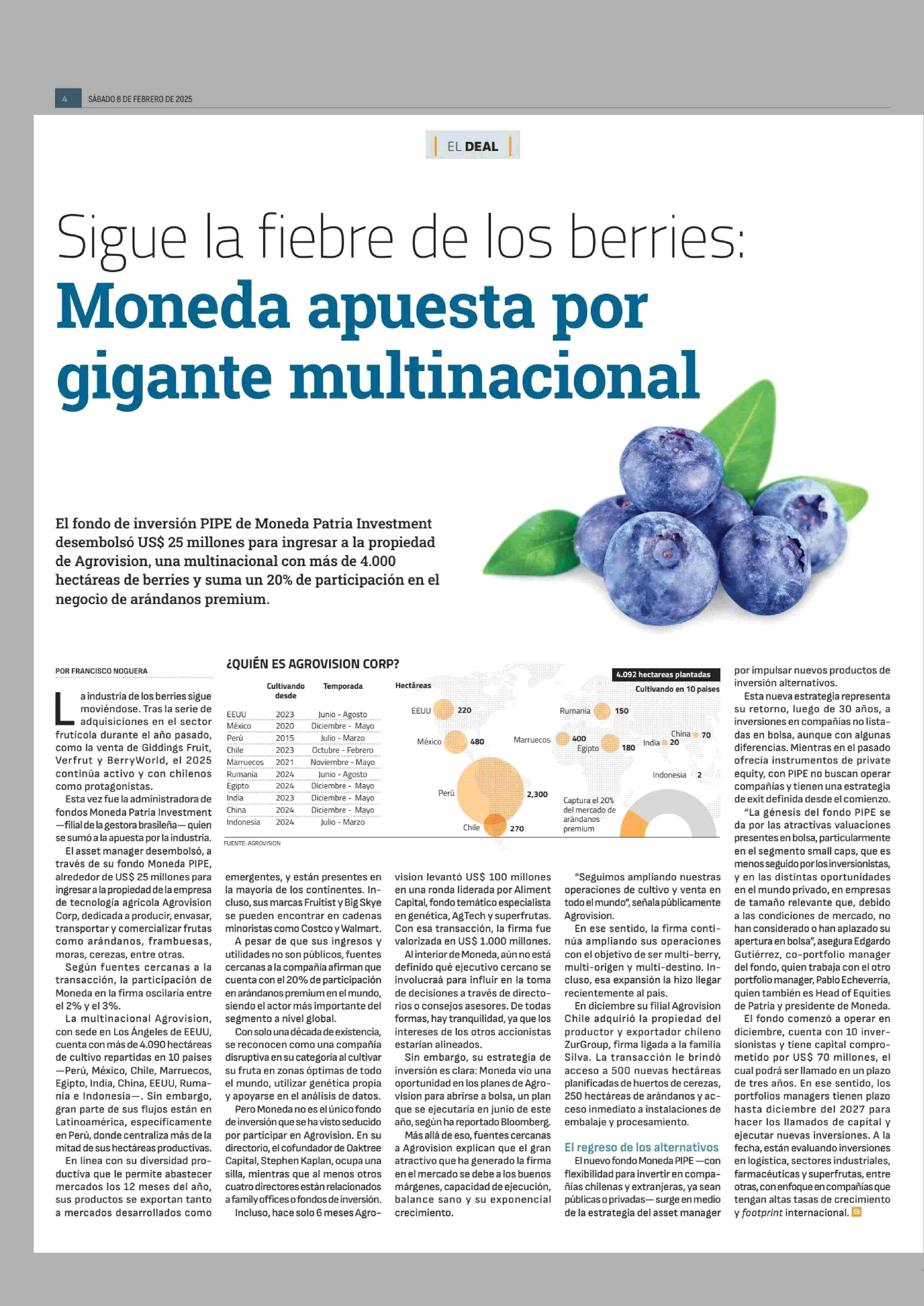 Sigue la fiebre de los berries: Moneda apuesta por gigante multinacional 08-02-2025 Diario Financiero |