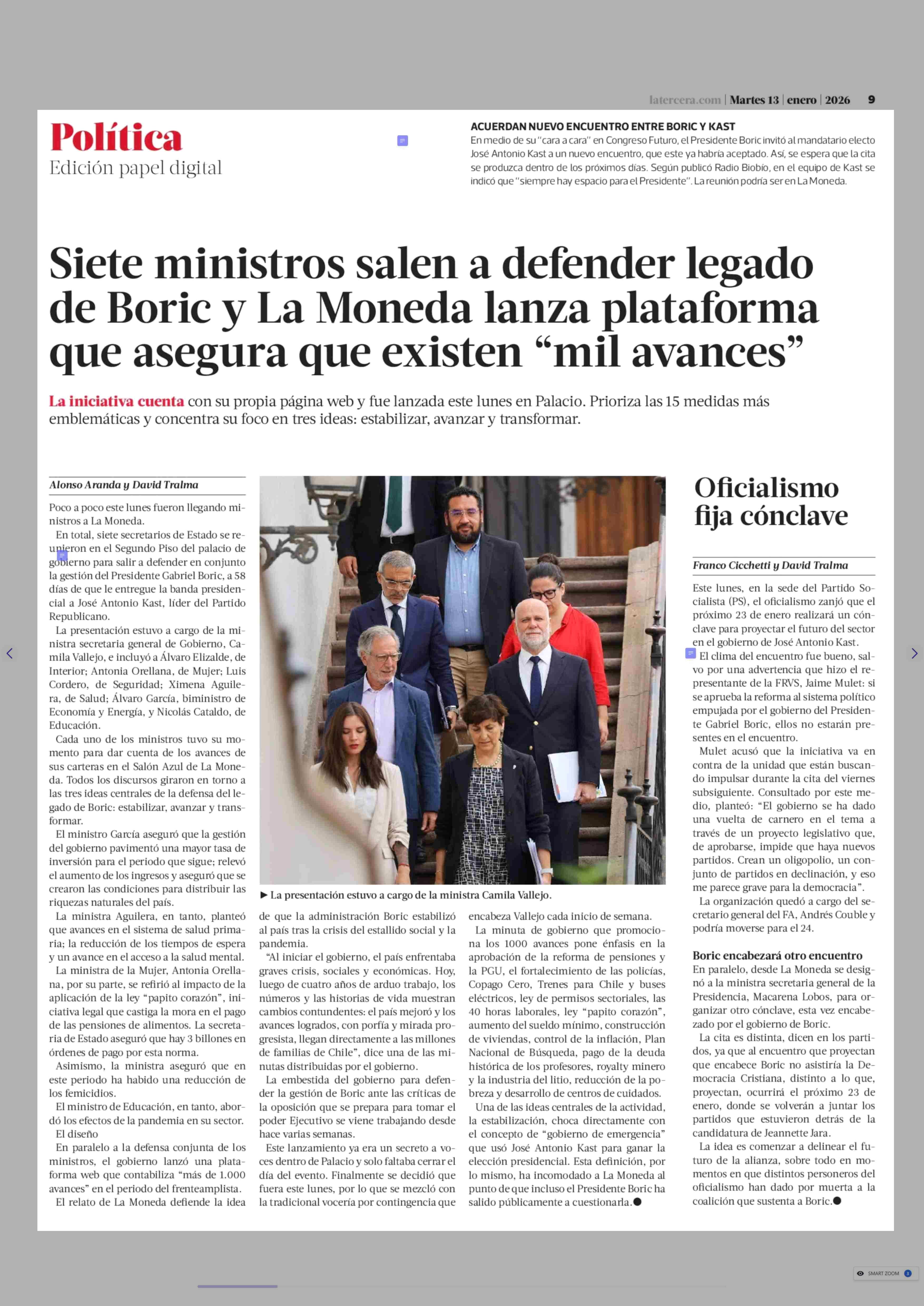 Título: Siete ministros salen a defender legado de Boric y La Moneda lanza plataforma que asegura que existen "mil avances"