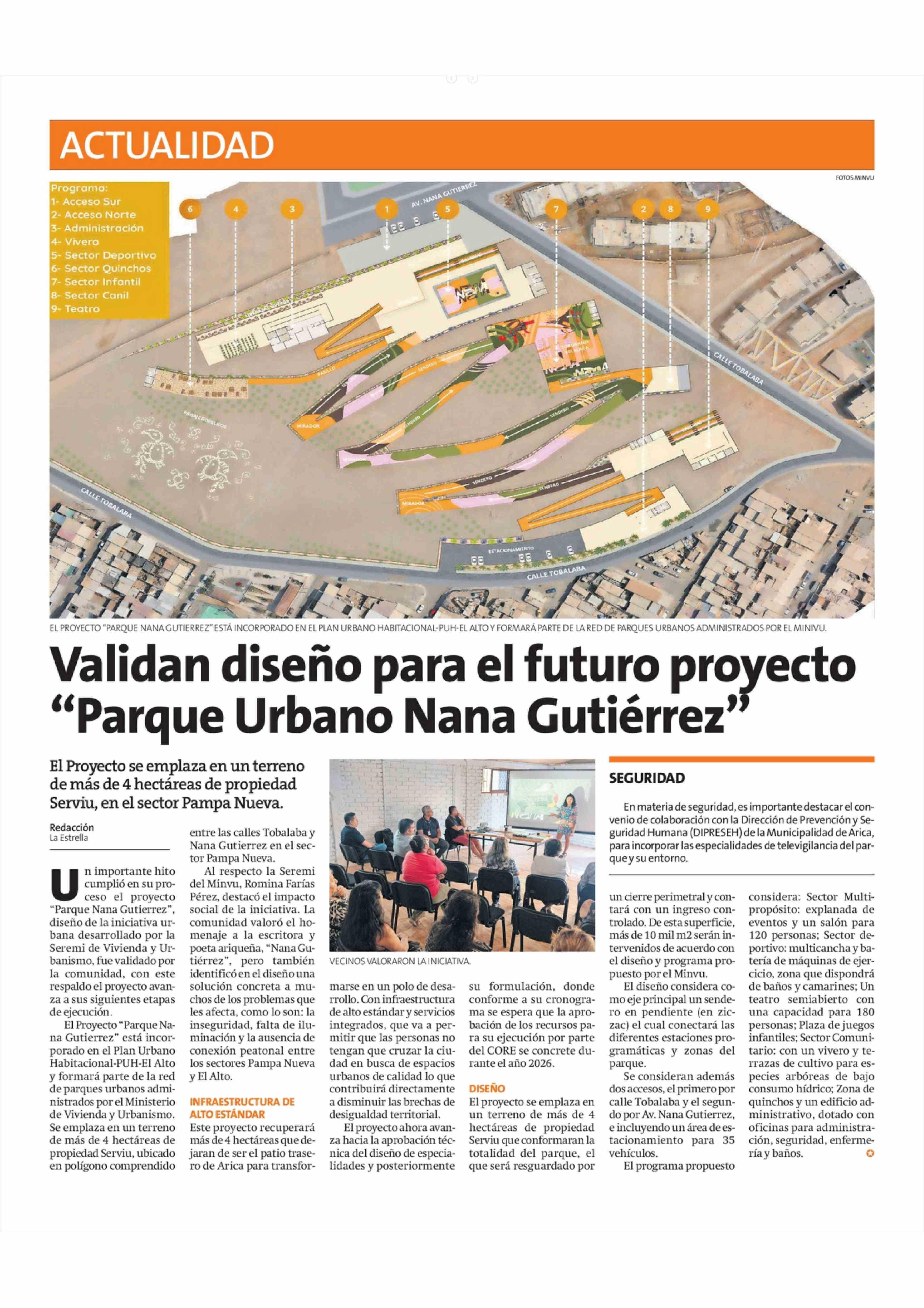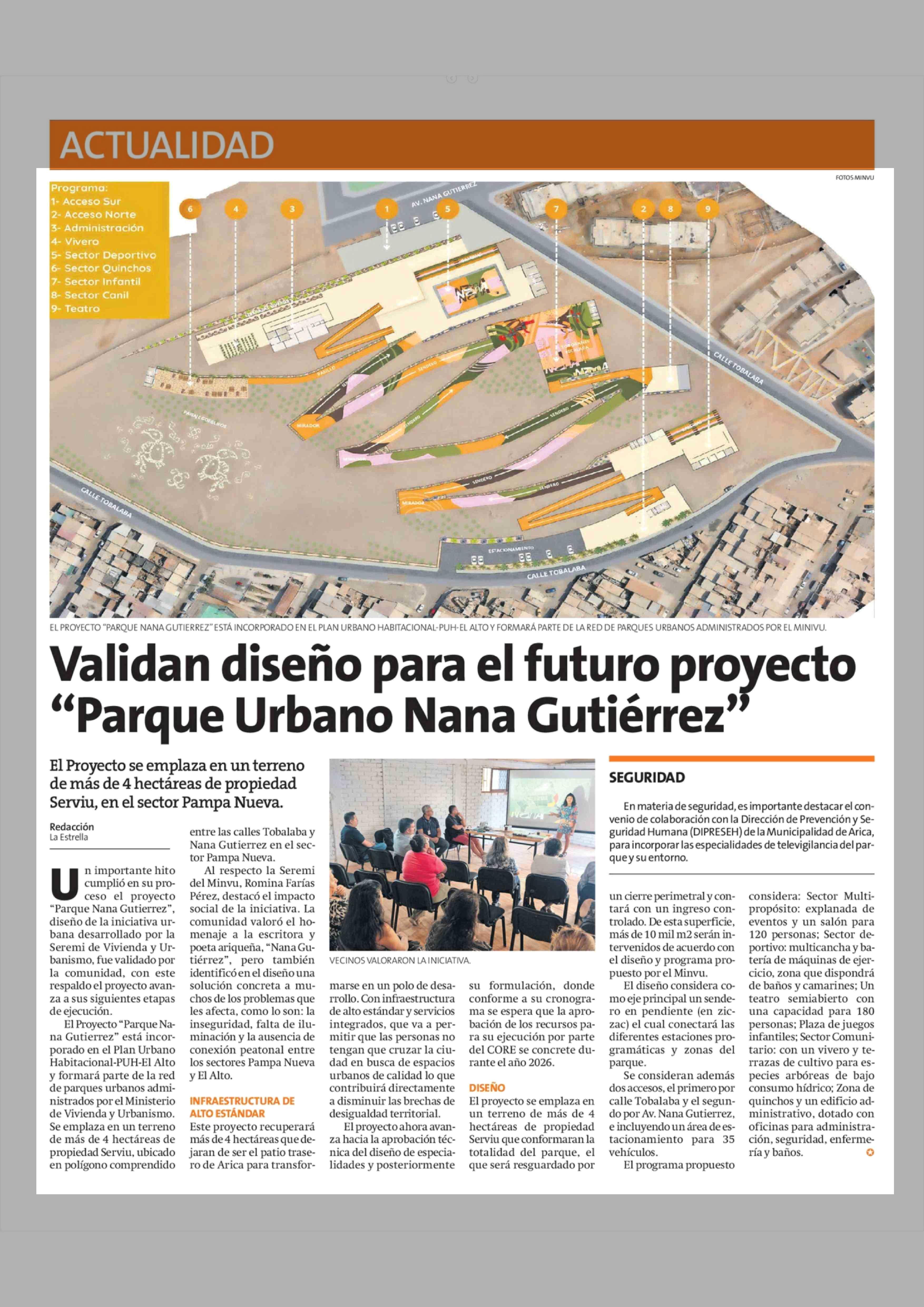 Validan diseño para el futuro proyecto "Parque Urbano Nana Gutiérrez' 10-02-2026 La Estrella de Arica |