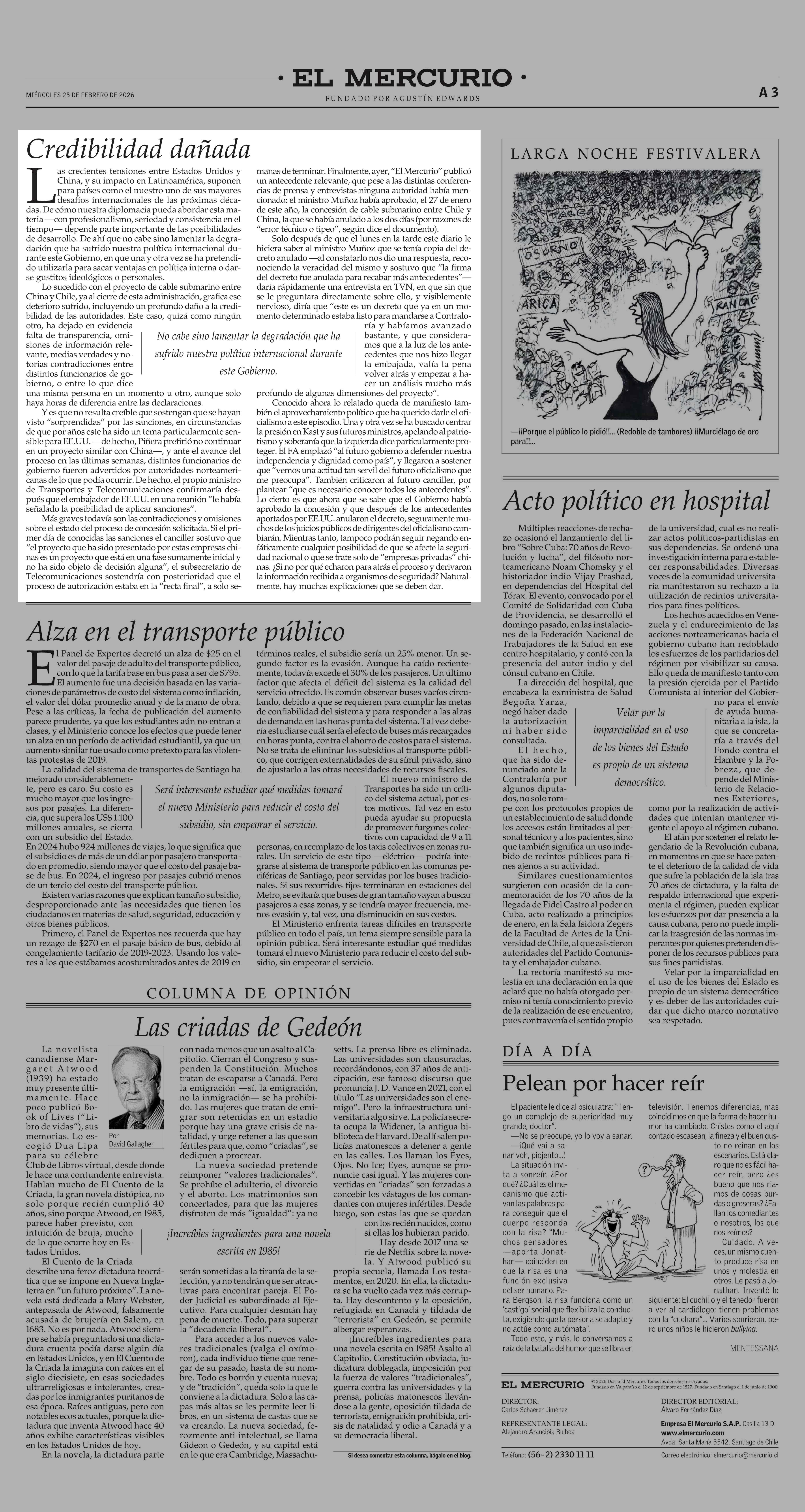 Editorial: Credibilidad dañada 25-02-2026 El Mercurio |