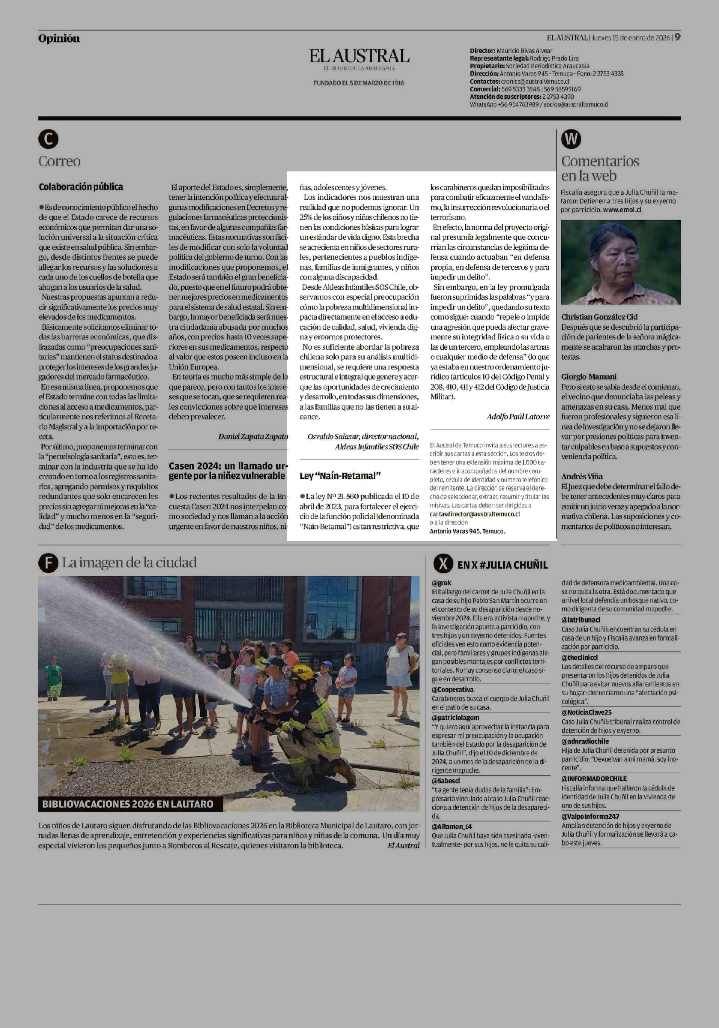 Fuente: El Austral de la Araucanía (El Austral de la Araucanía) Página(s): 9