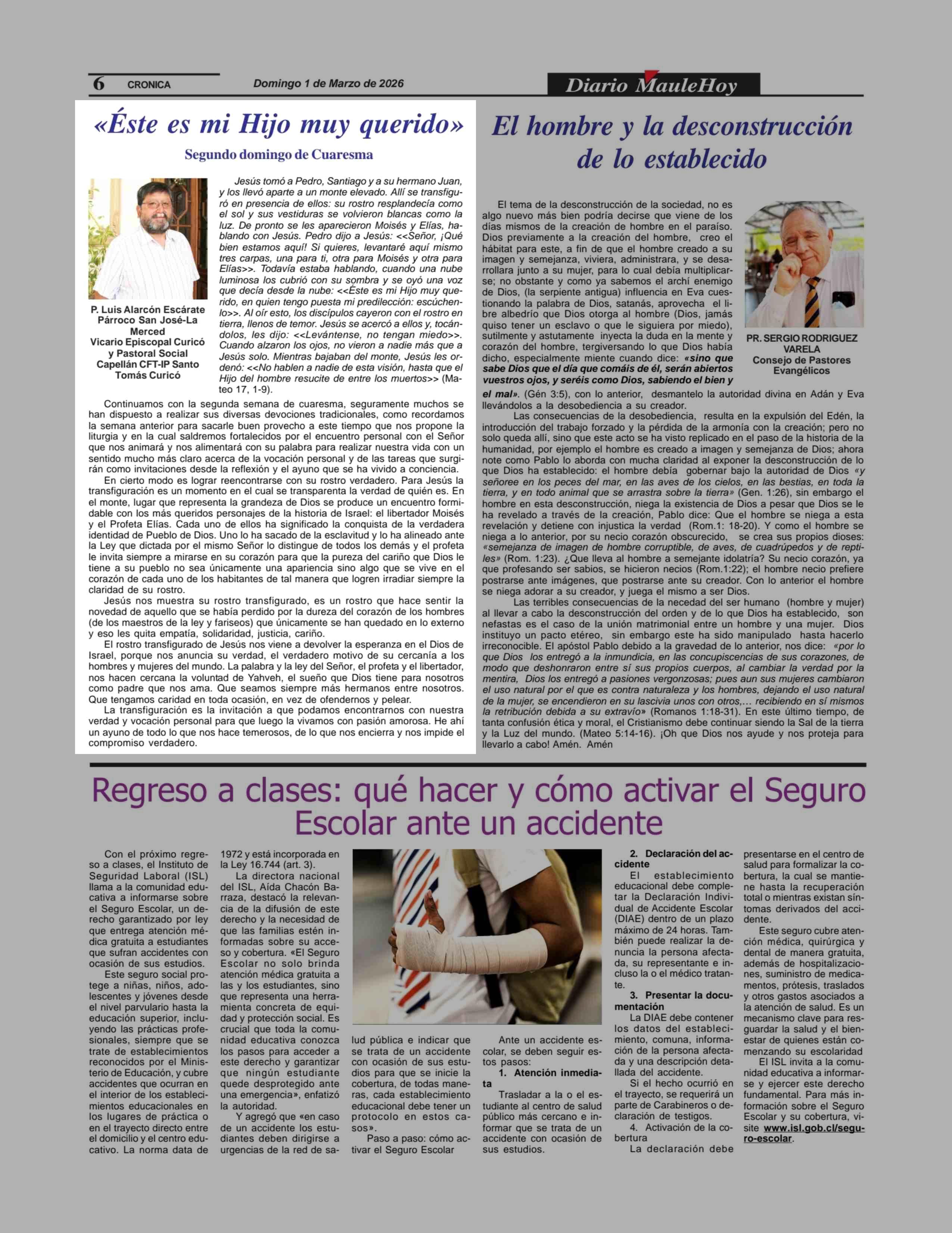 COLUMNAS DE OPINIÓN: «Éste es mi Hijo muy querido» 01-03-2026 Maule Hoy |