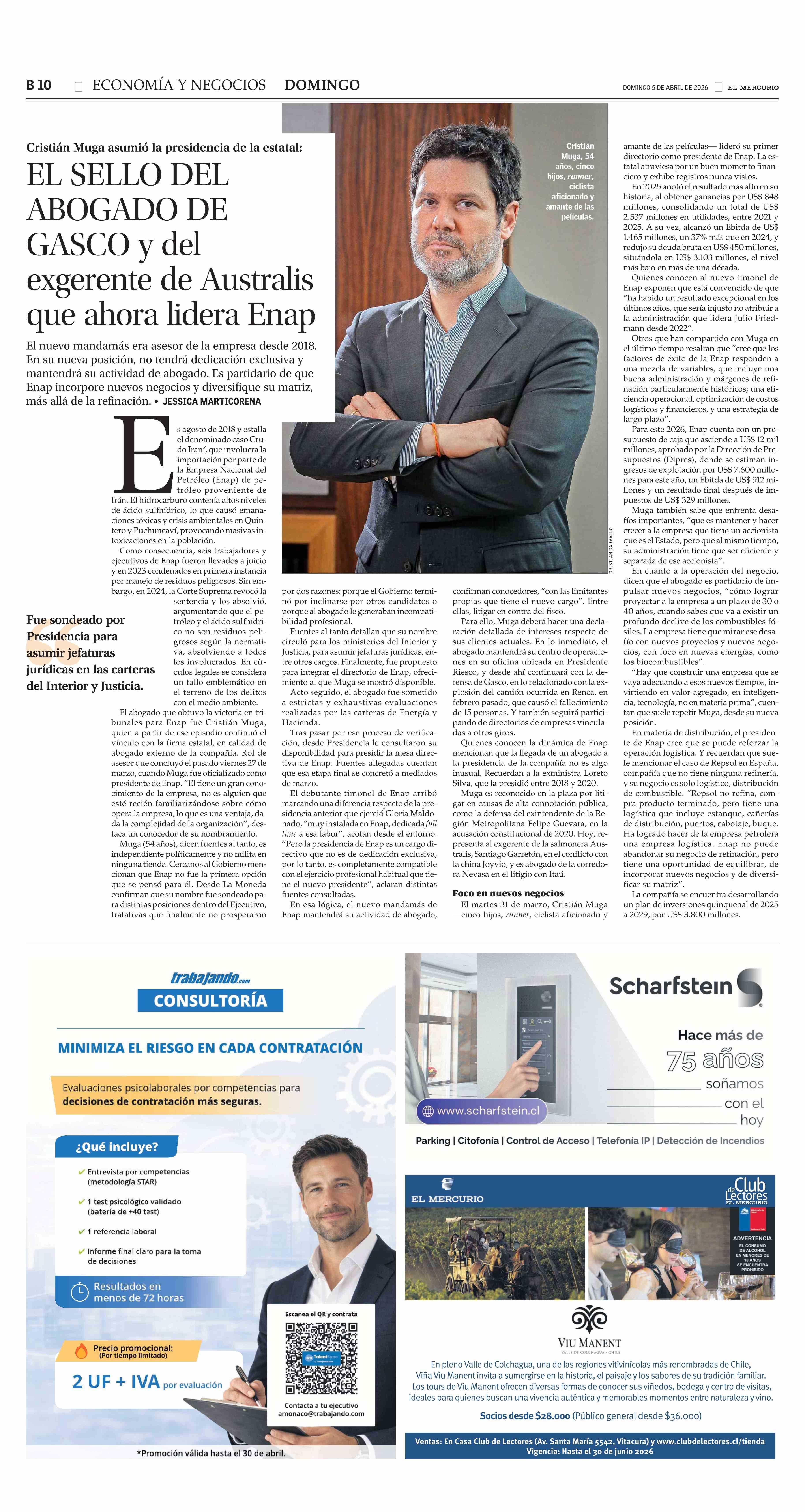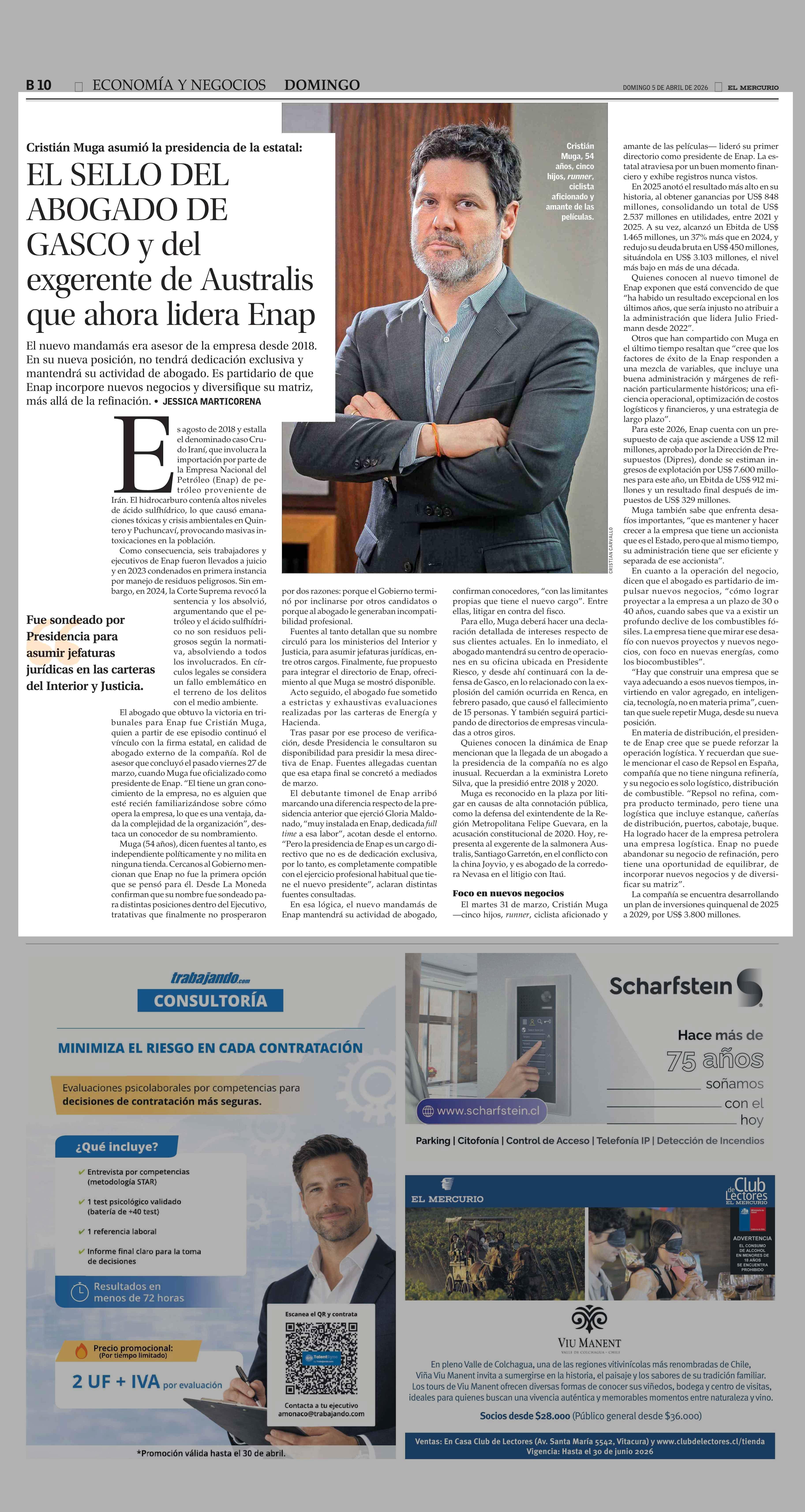 EL SELLO DEL ABOGADO DE GASCO y del exgerente de Australis que ahora lidera Enap 05-04-2026 El Mercurio |