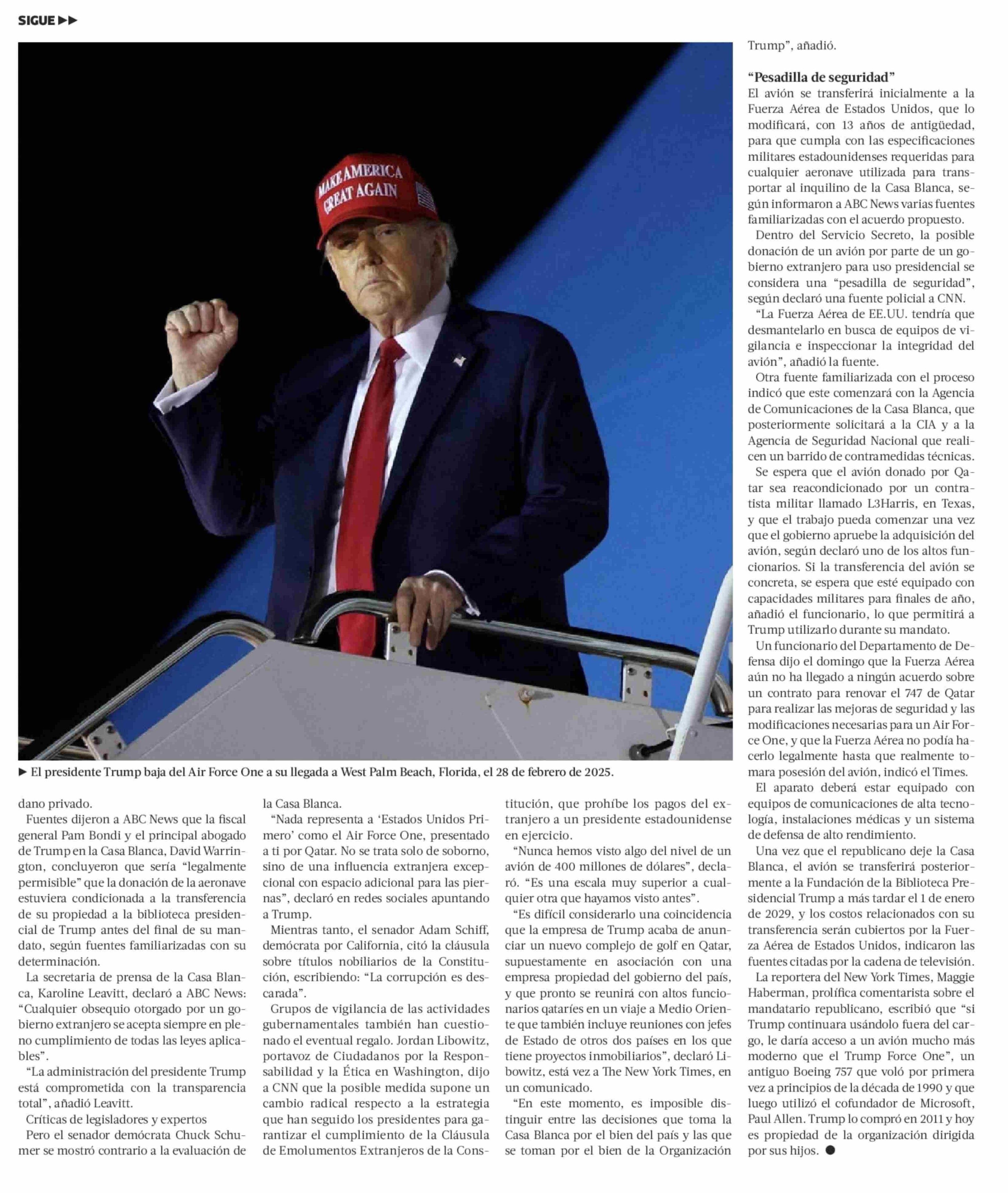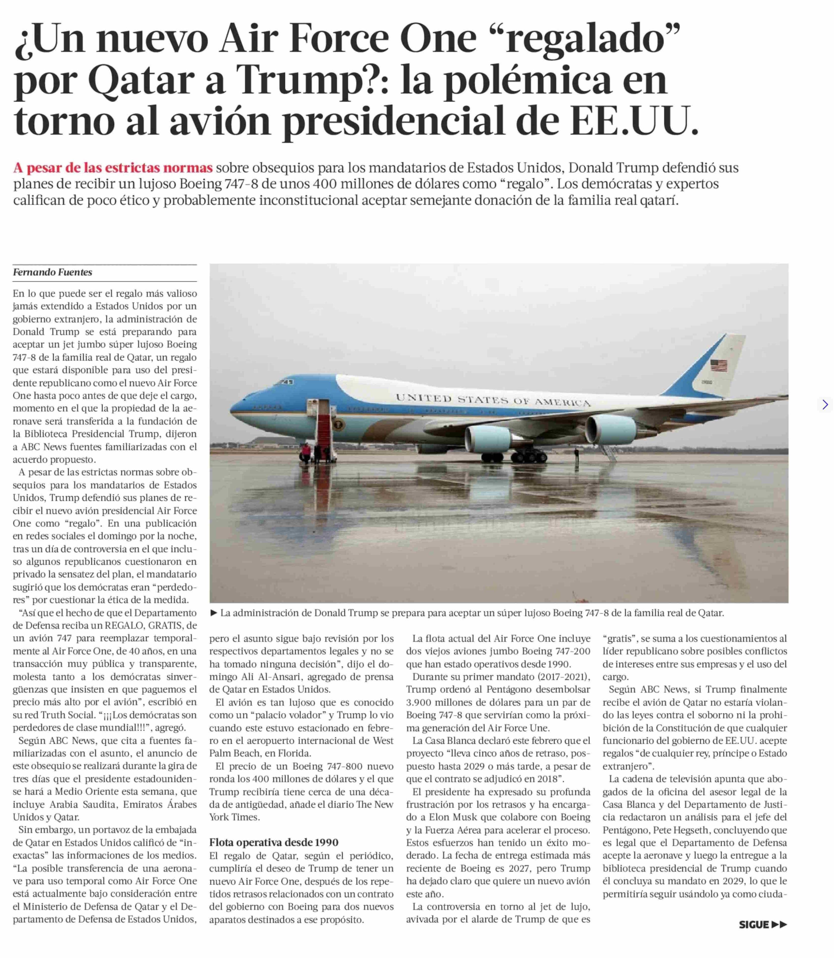 | Título: | ¿Un nuevo Air Force One “regalado” por Qatar a Trump”: la polémica en torno al avión presidencial de EE.UU. |