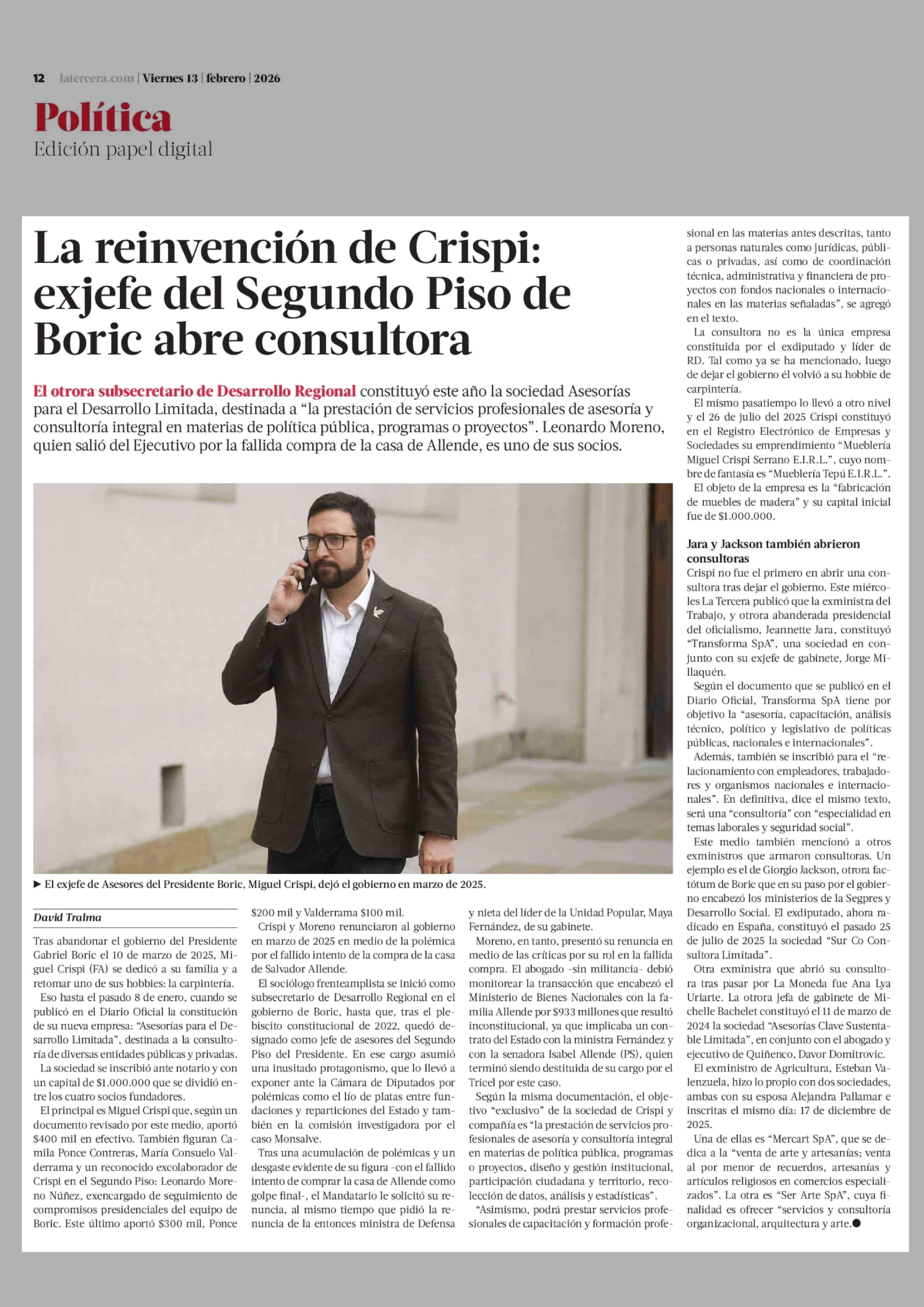 Título: La reinvención de Crispi: exjefe del Segundo Piso de Boric abre consultora
