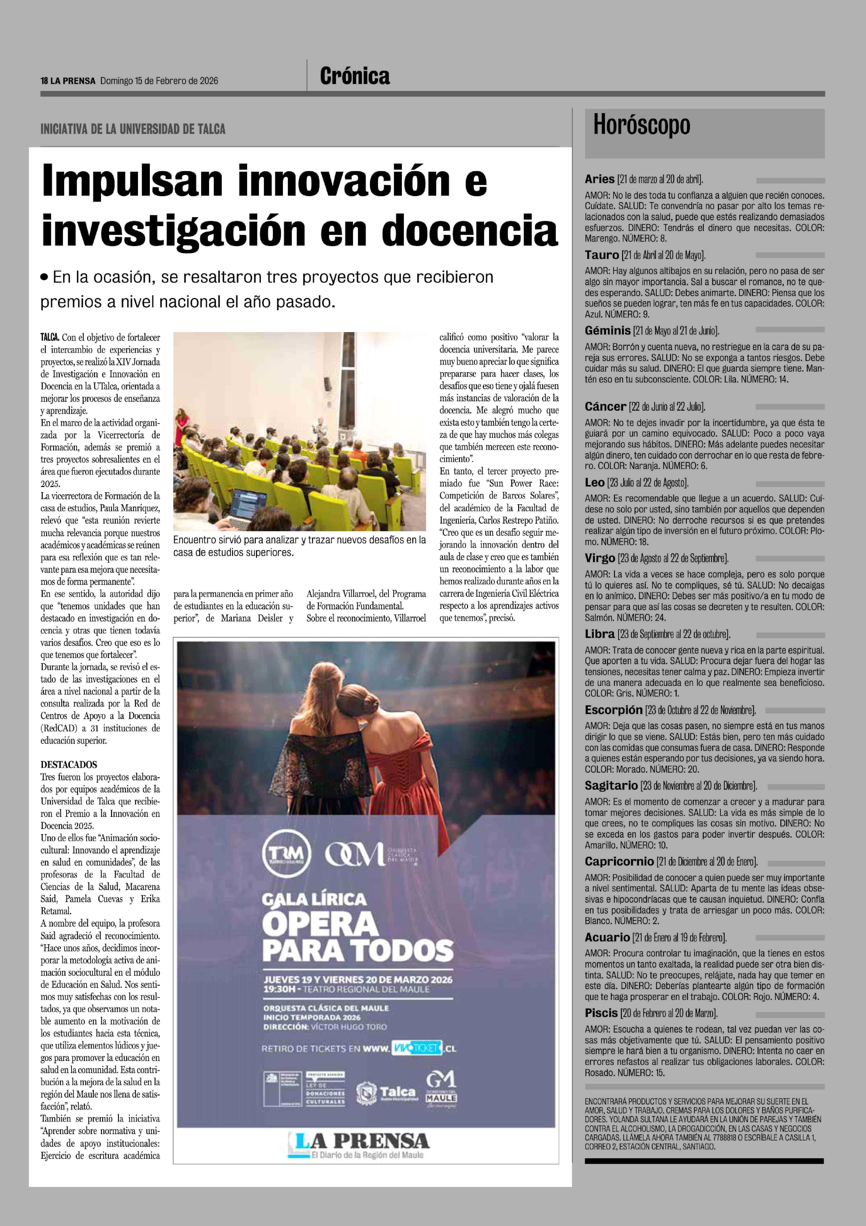 Impulsan innovación e investigación en docencia 15-02-2026 La Prensa de Curicó |