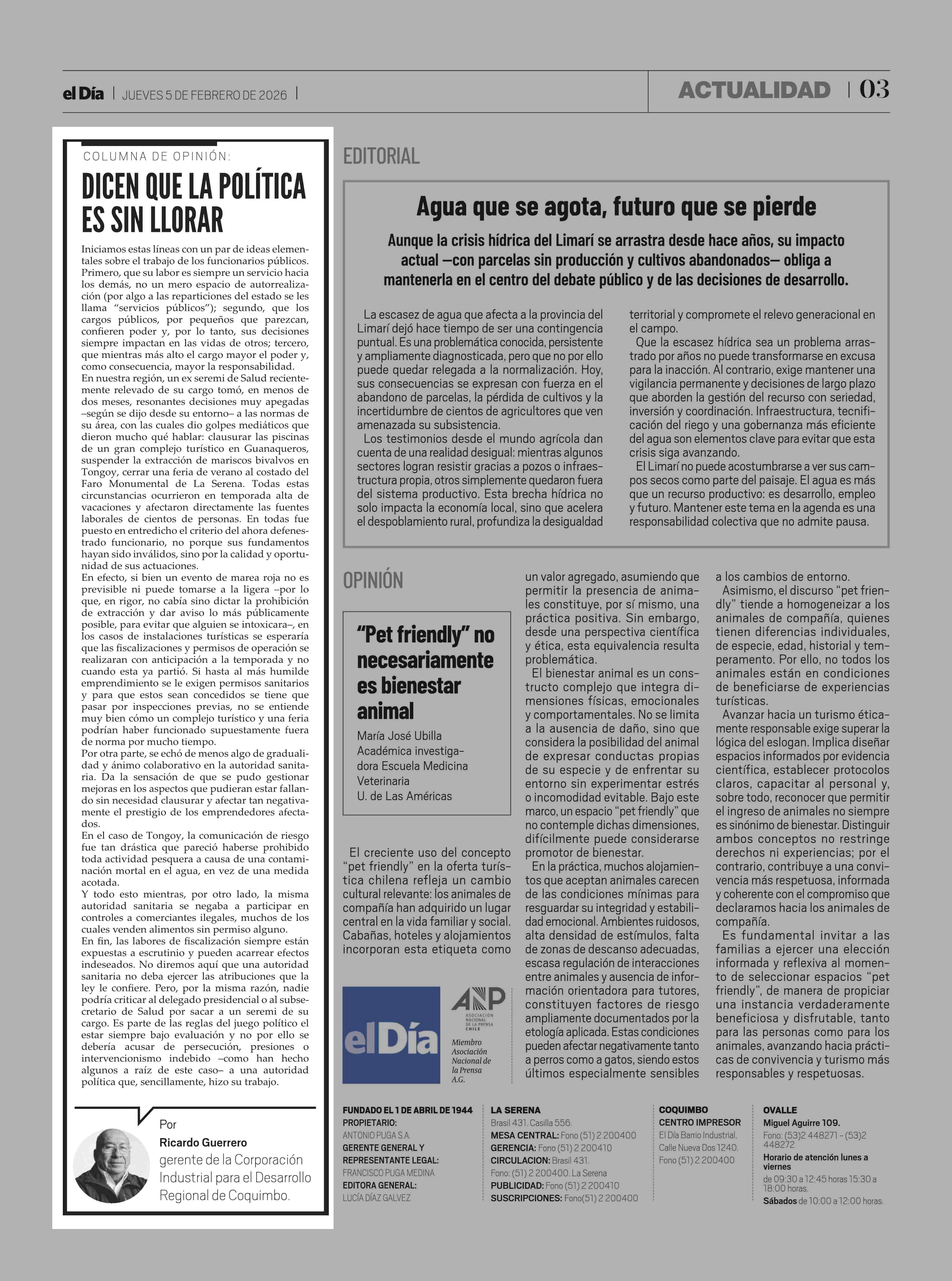Fecha: 05-02-2026 Sector: Columnas de Opinión Región: Región de Coquimbo