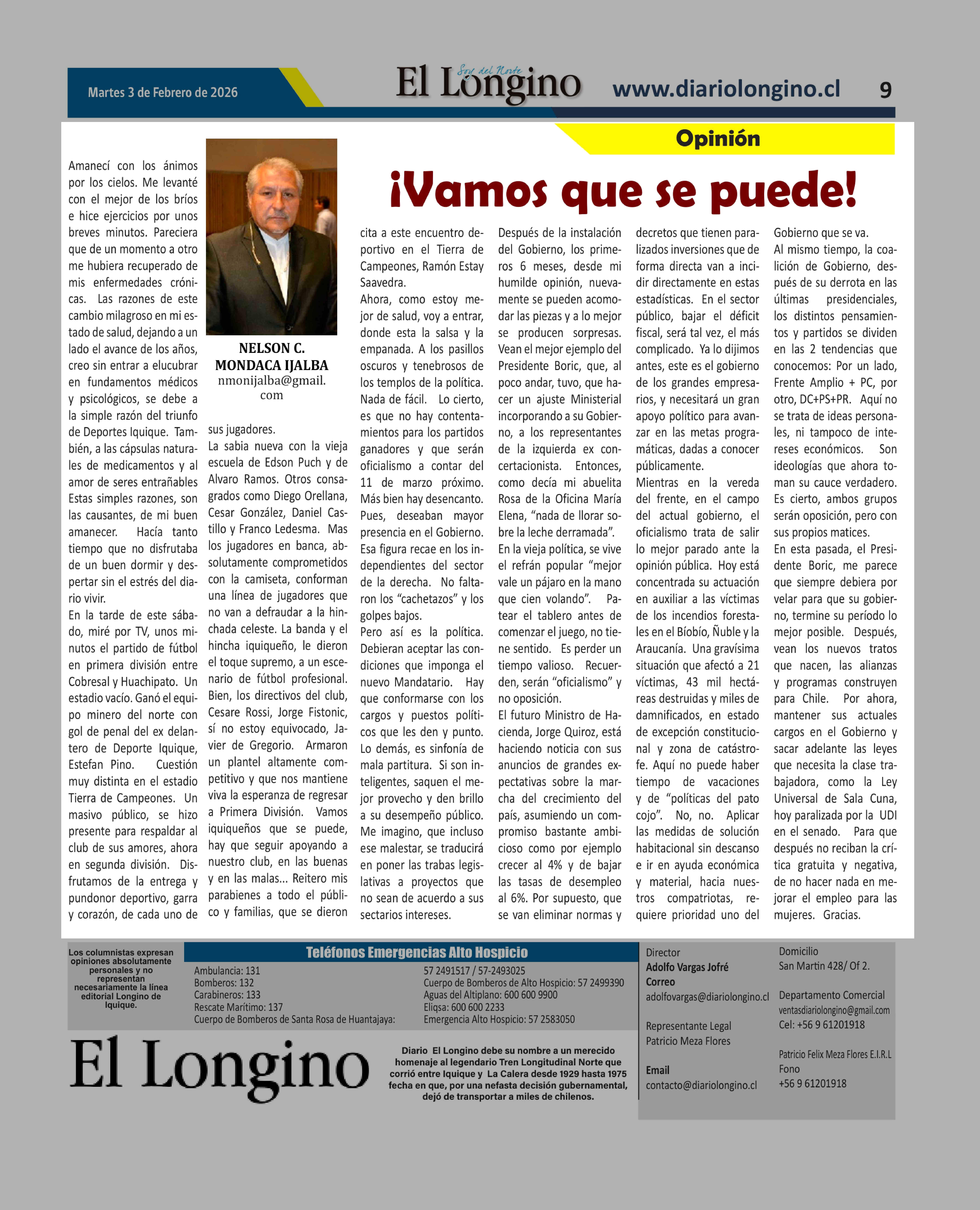 Fecha: 03-02-2026 Sector: Columnas de Opinión Región: Región de Tarapacá