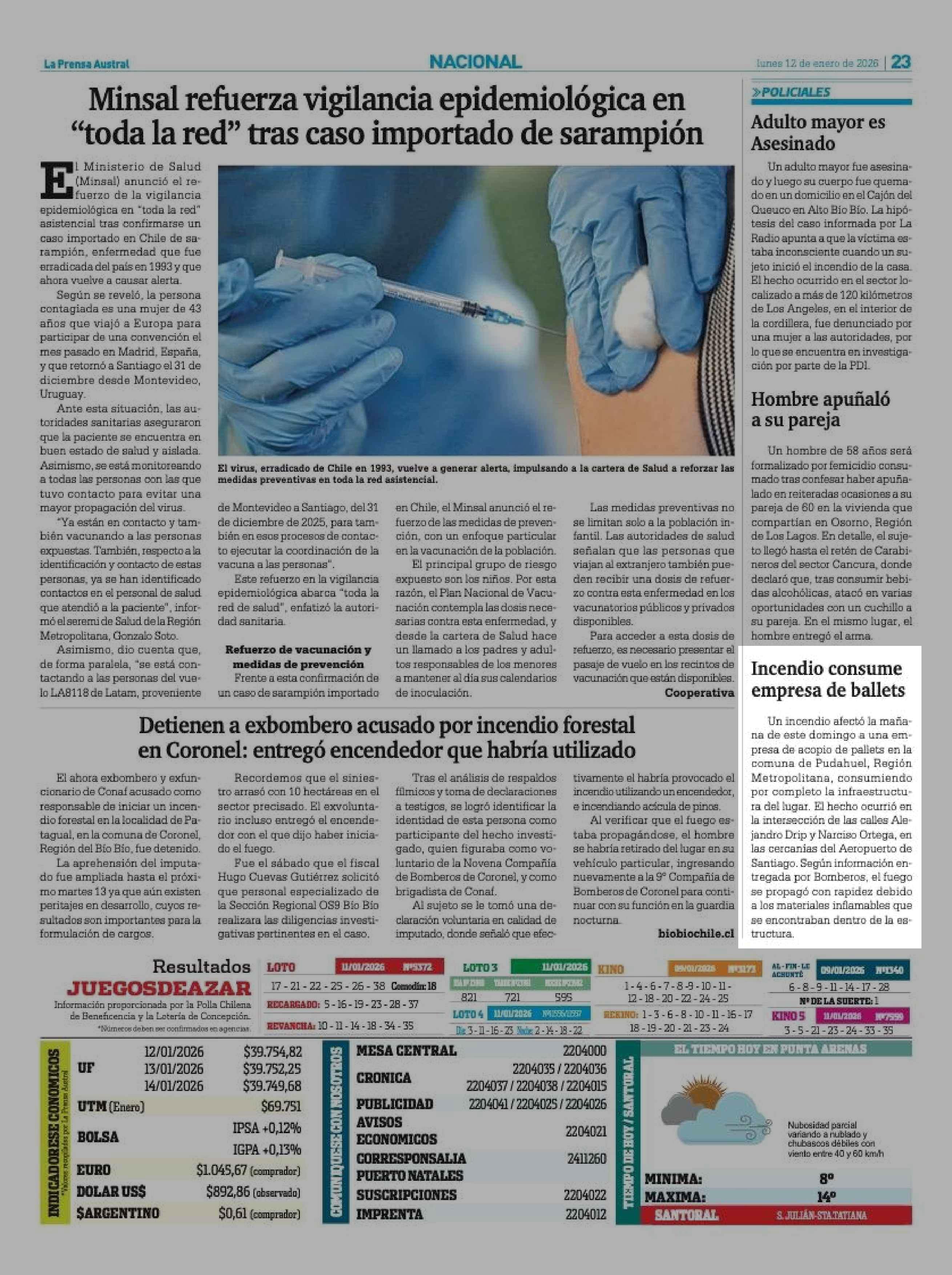 | Fecha: | 12-01-2026 | Sector: | Noticia general | Región: | Región de Magallanes y de la Antártica Chilena |