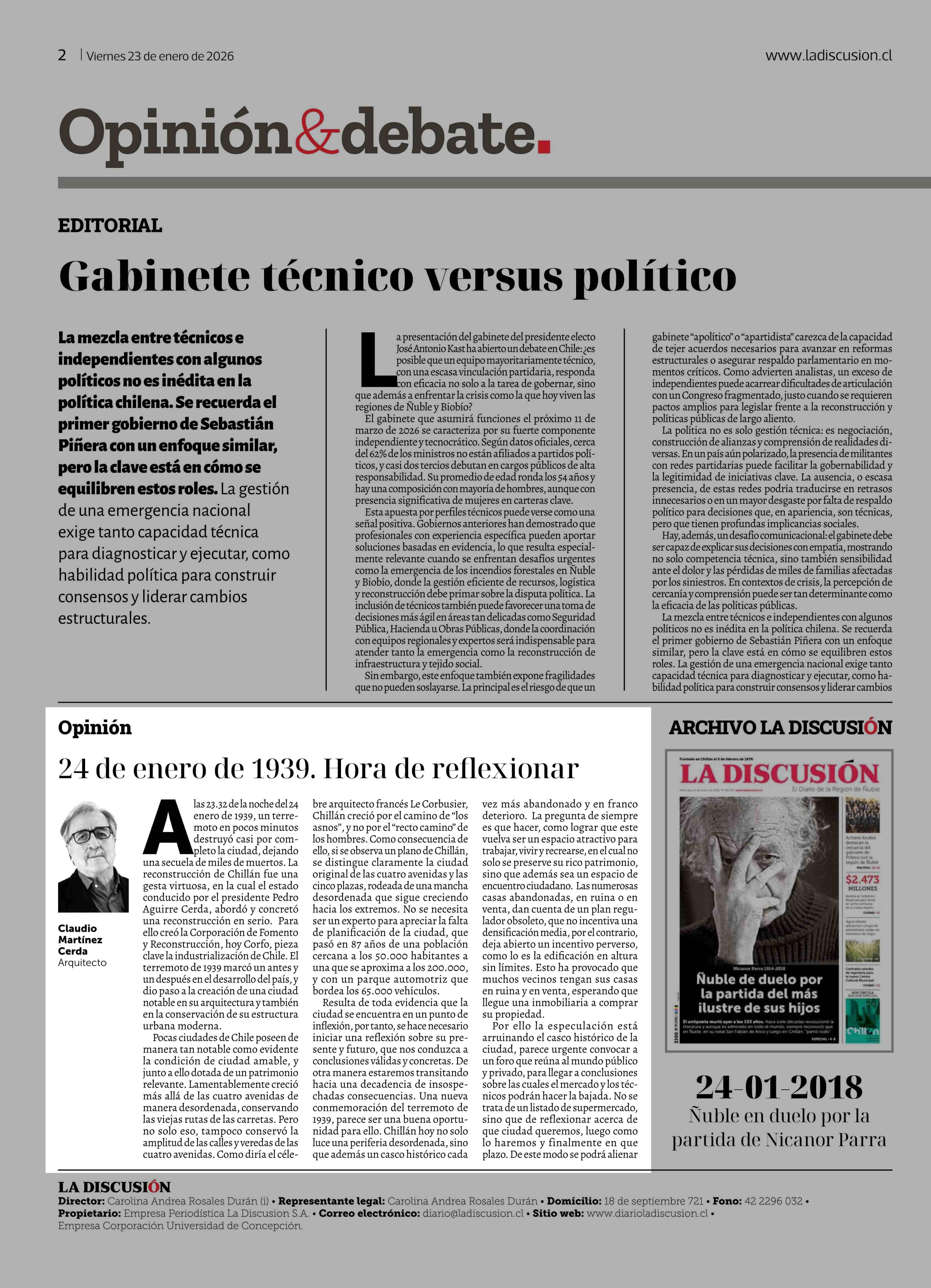 Fecha: 23-01-2026 Sector: Columnas de Opinión Región: Región del Ñuble
