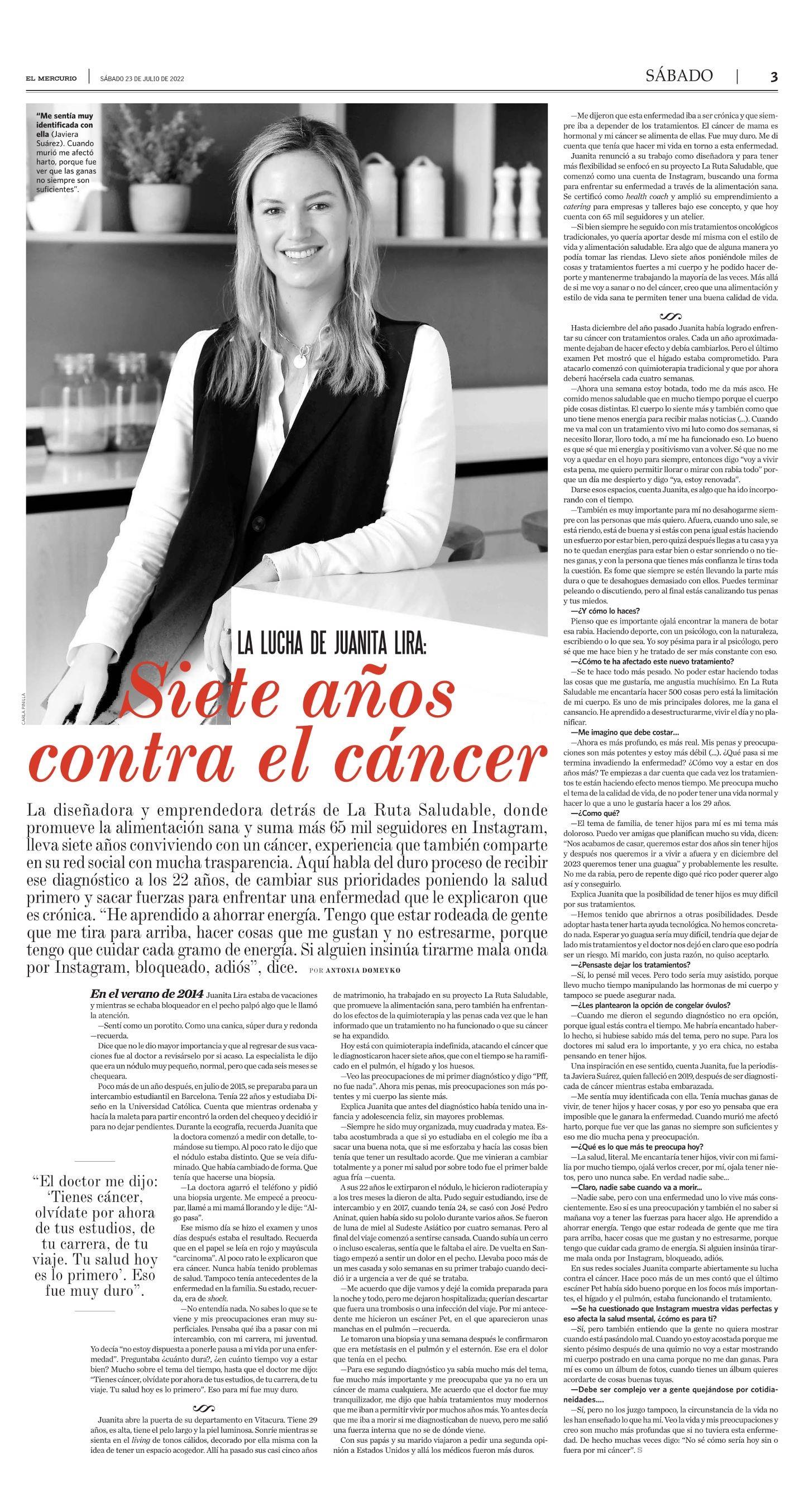 LA LUCHA DE JUANITA LIRA: Siete años contra el cáncer 23-07-2022 El Mercurio |