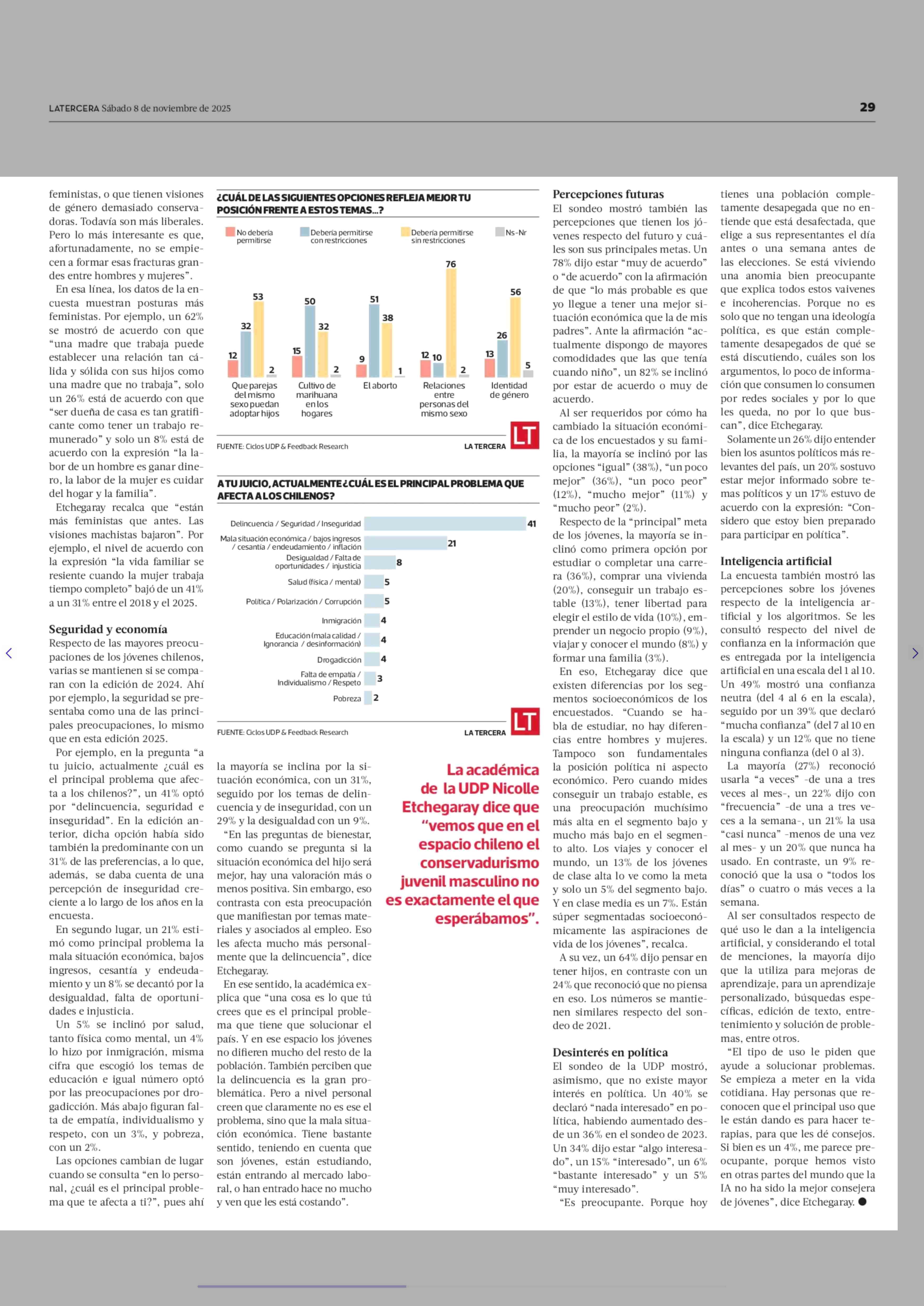 Liberales en lo valórico: el perfil de los jóvenes chilenos 08-11-2025 La Tercera |
