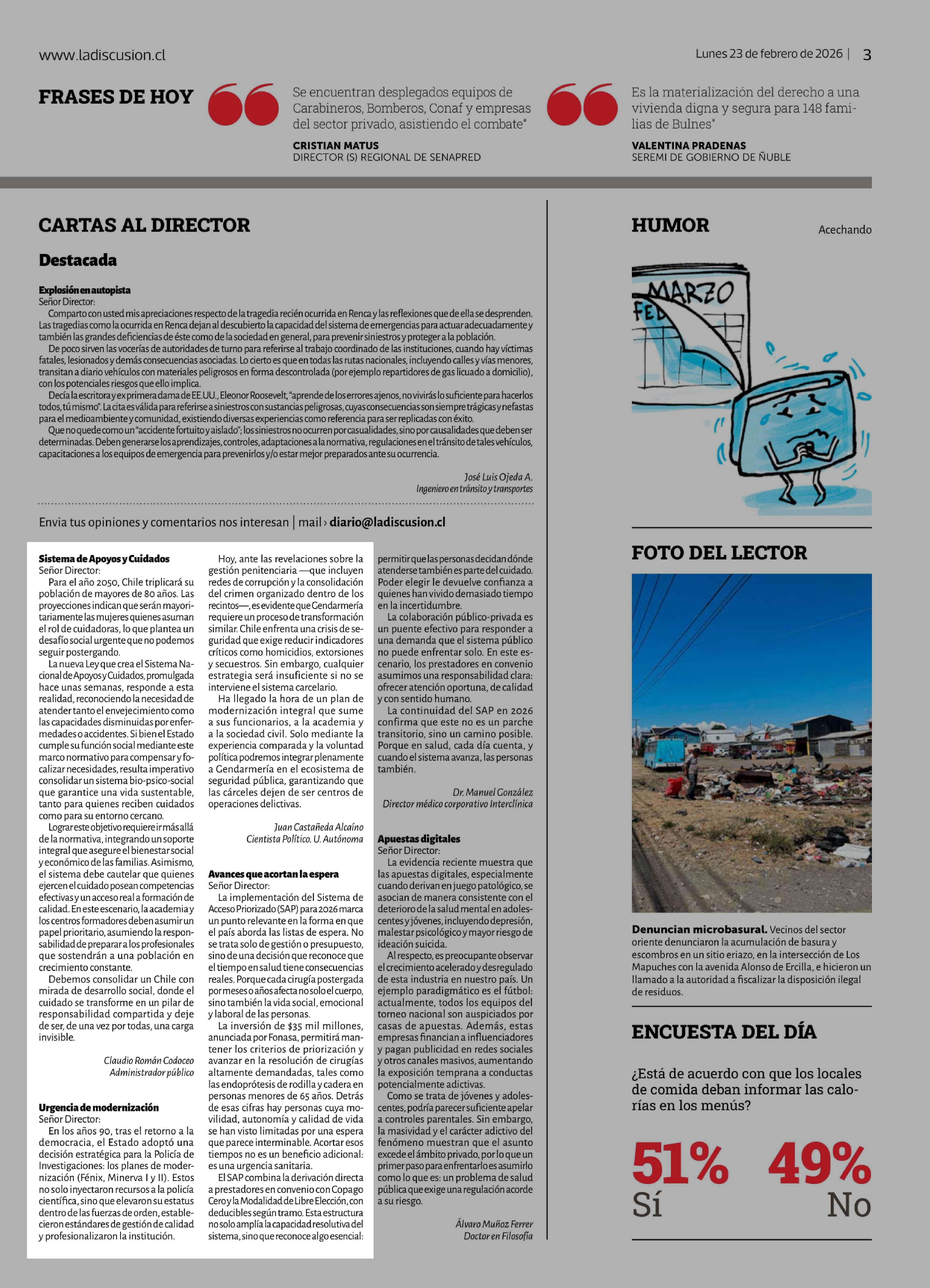 Fecha: 23-02-2026 Sector: Noticia general Región: Región del Ñuble