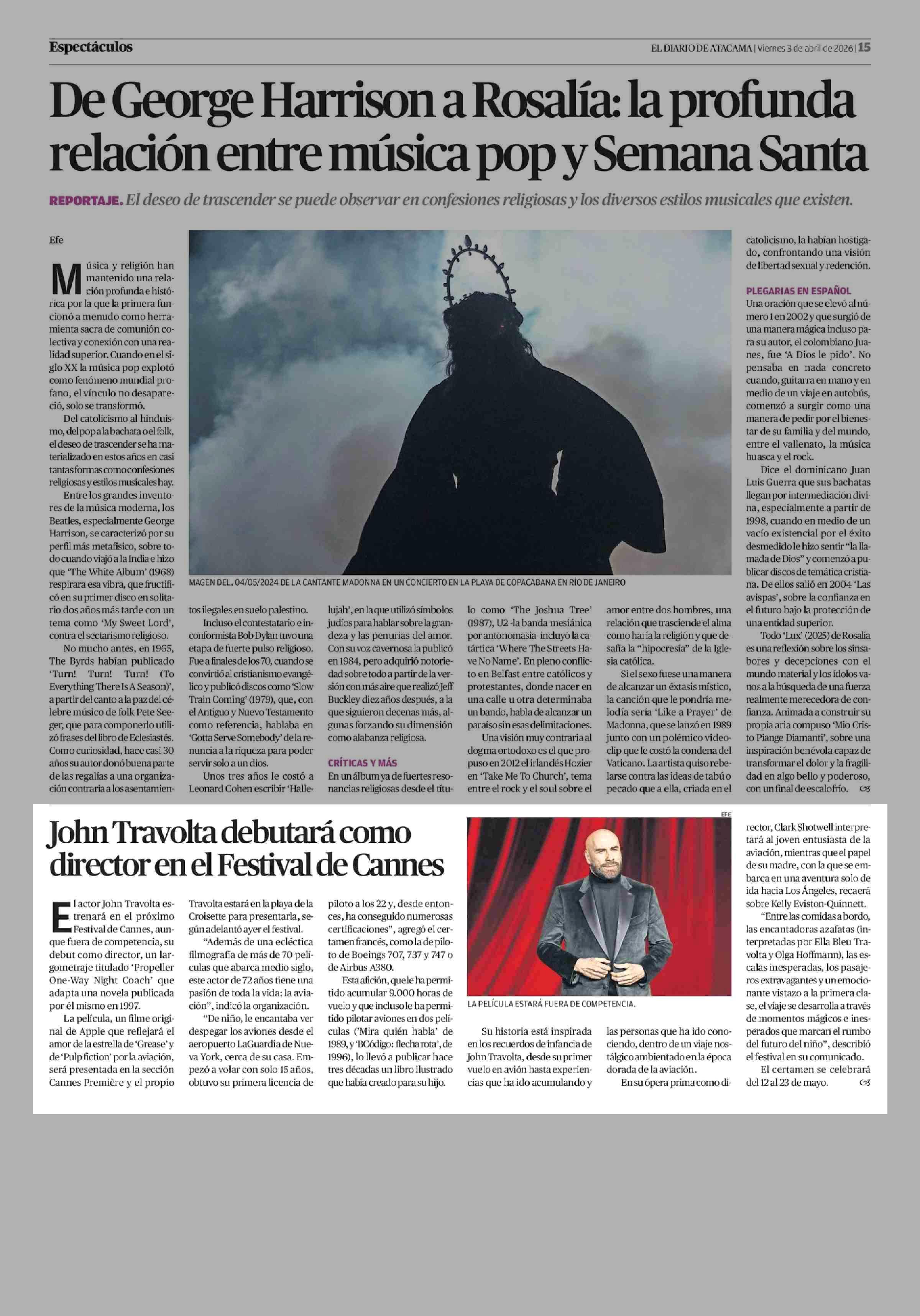 John Travolta debutará como director en el Festival de Cannes 03-04-2026 El Diario de Atacama |