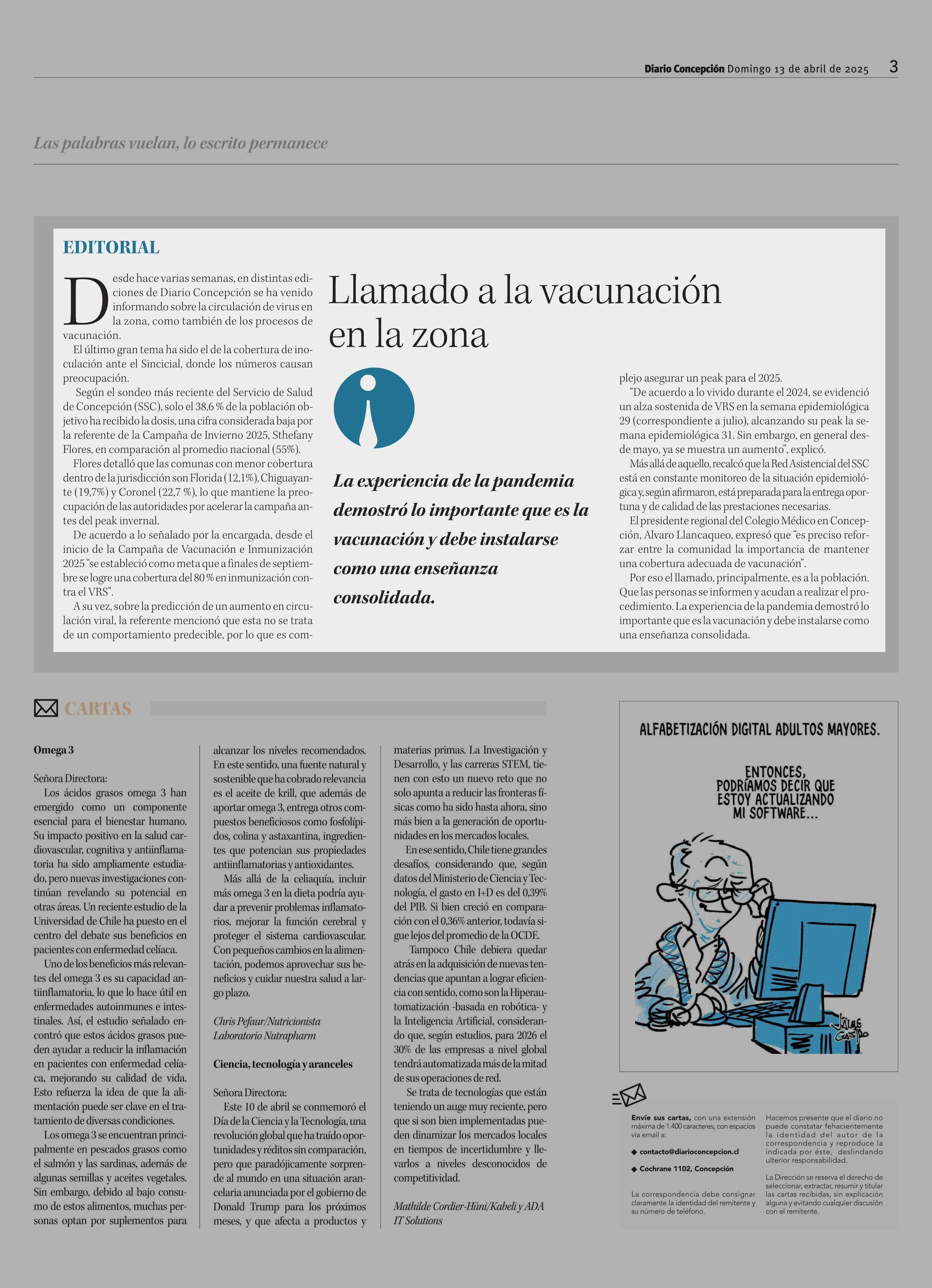 Editorial: Llamado a la vacunación en la zona 13-04-2025 Diario Concepción |