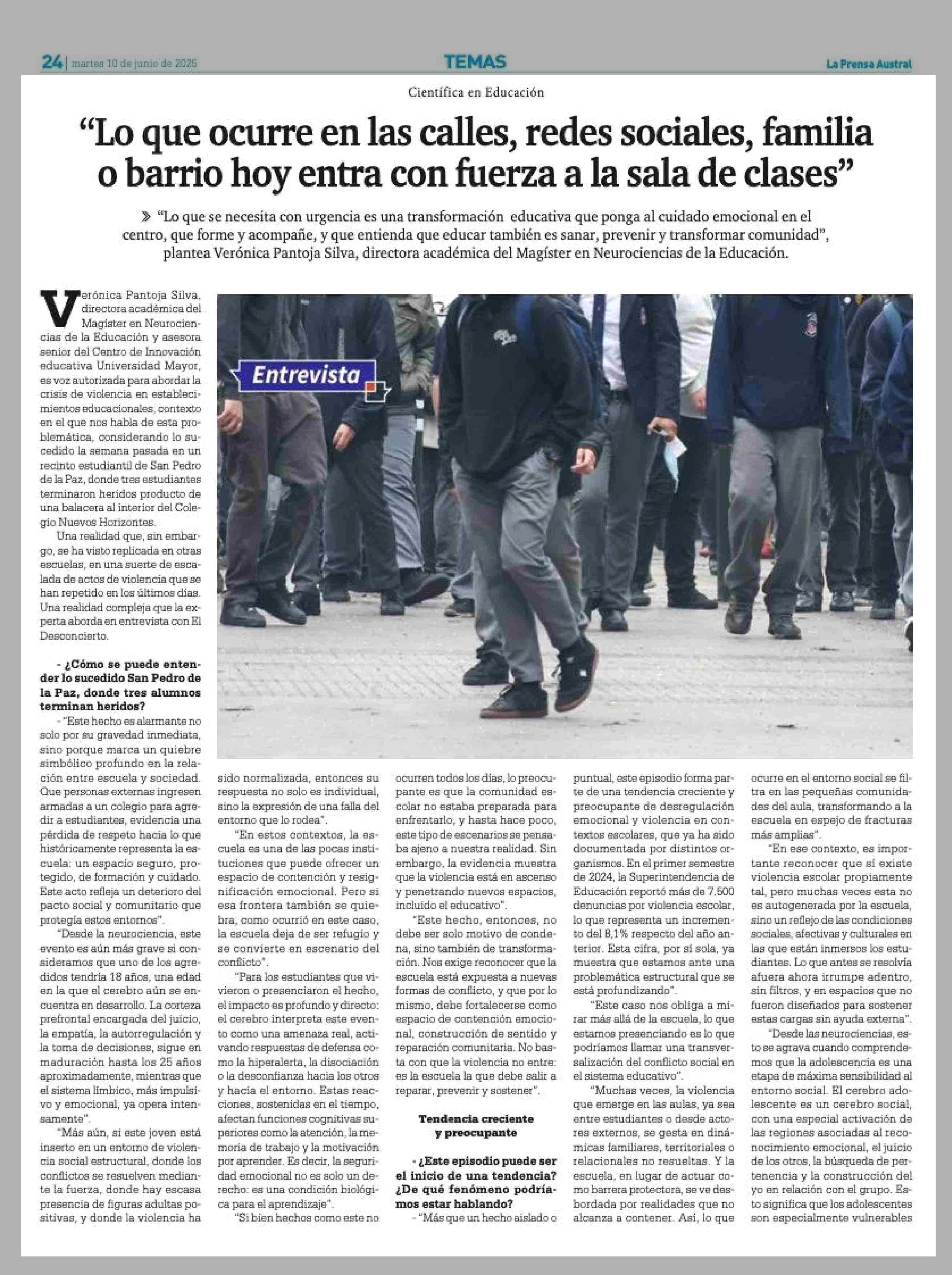 “Lo que ocurre en las calles, redes sociales, familia O barrio hoy entra con fuerza a la sala de clases” 10-06-2025 La Prensa Austral |