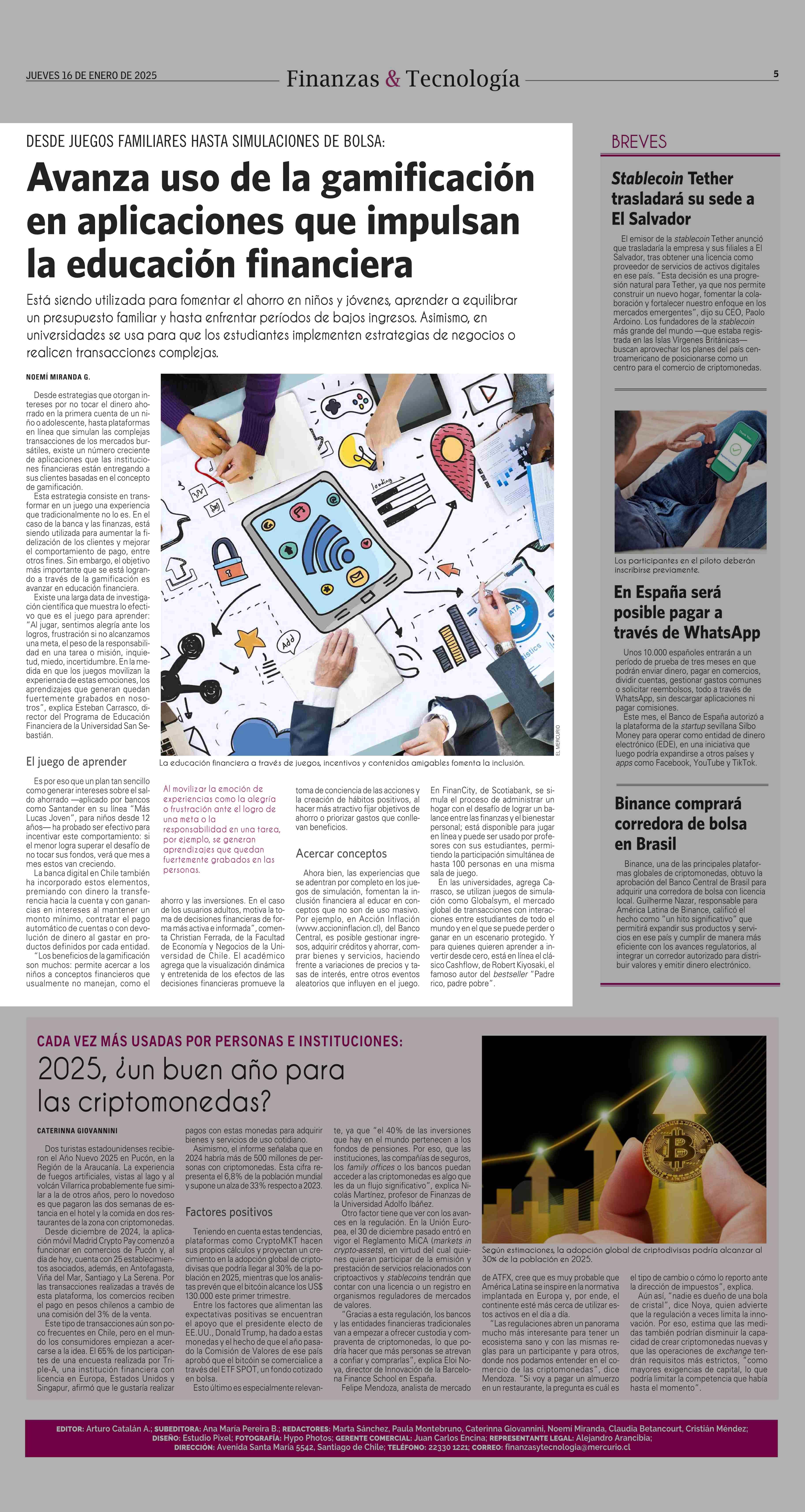 Avanza uso de la gamificación en aplicaciones que impulsan la educación financiera 16-01-2025 El Mercurio |