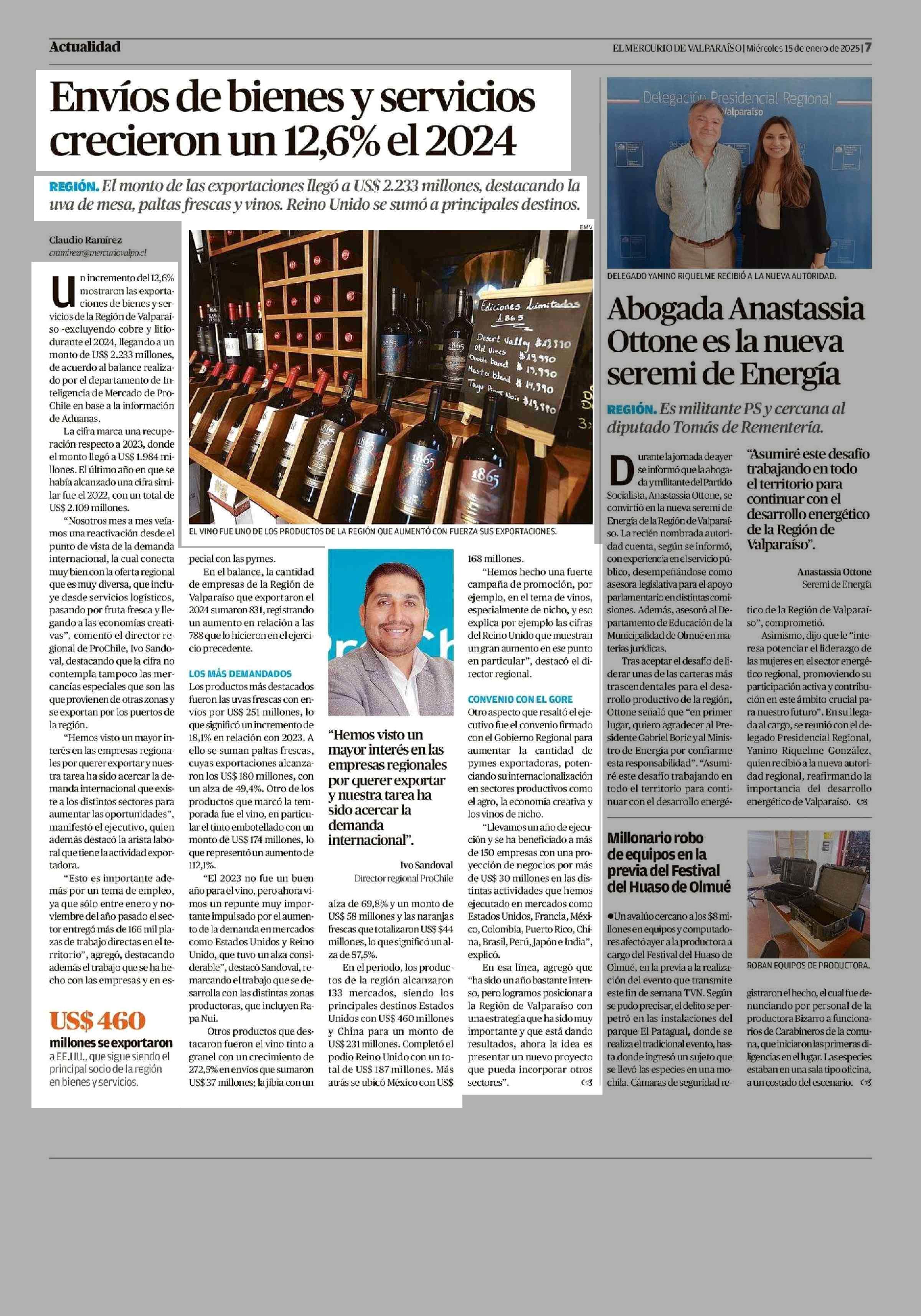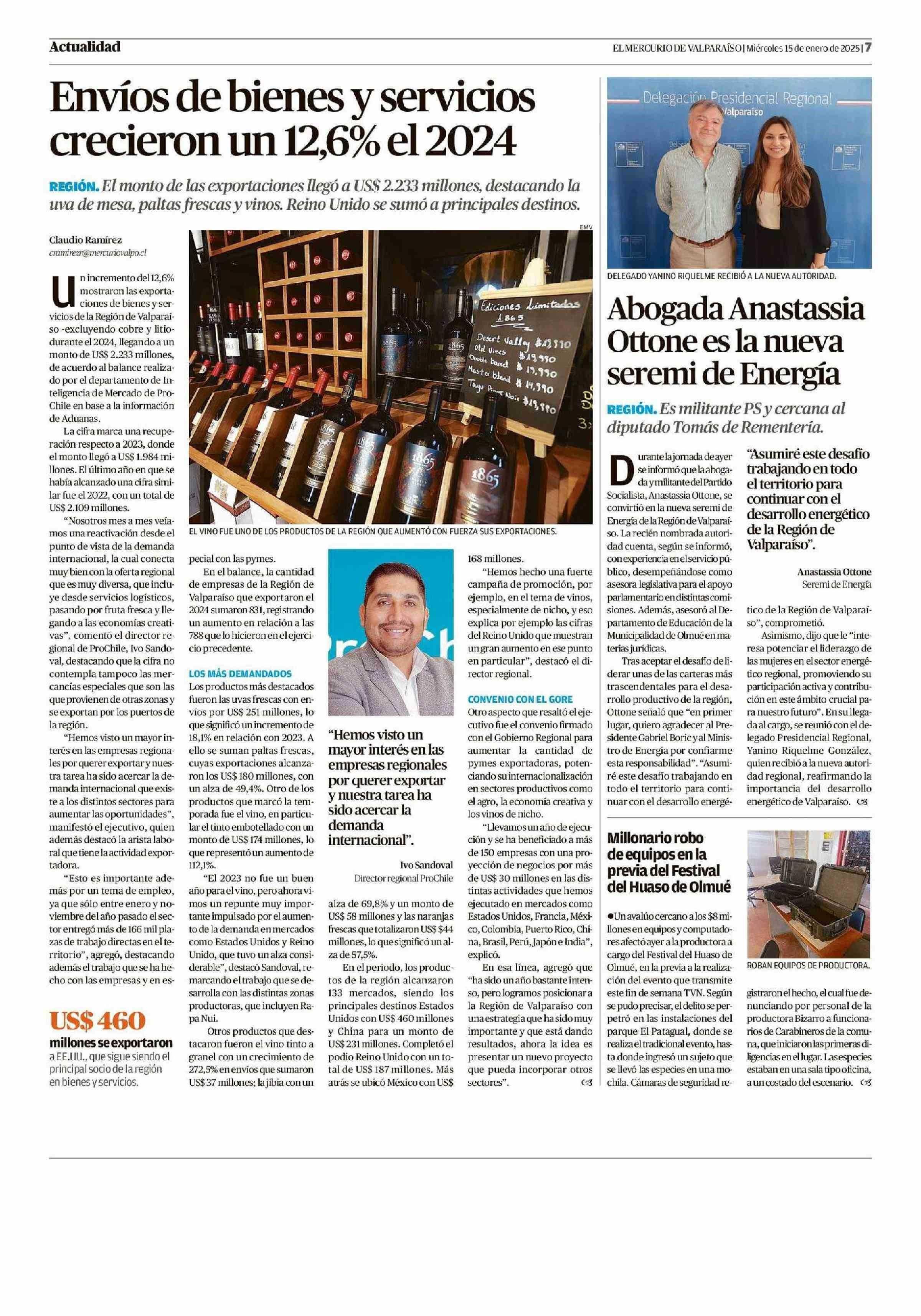 Envíos de bienes y servicios crecieron un 12,6 % el 2024 15-01-2025 El Mercurio de Valparaíso |
