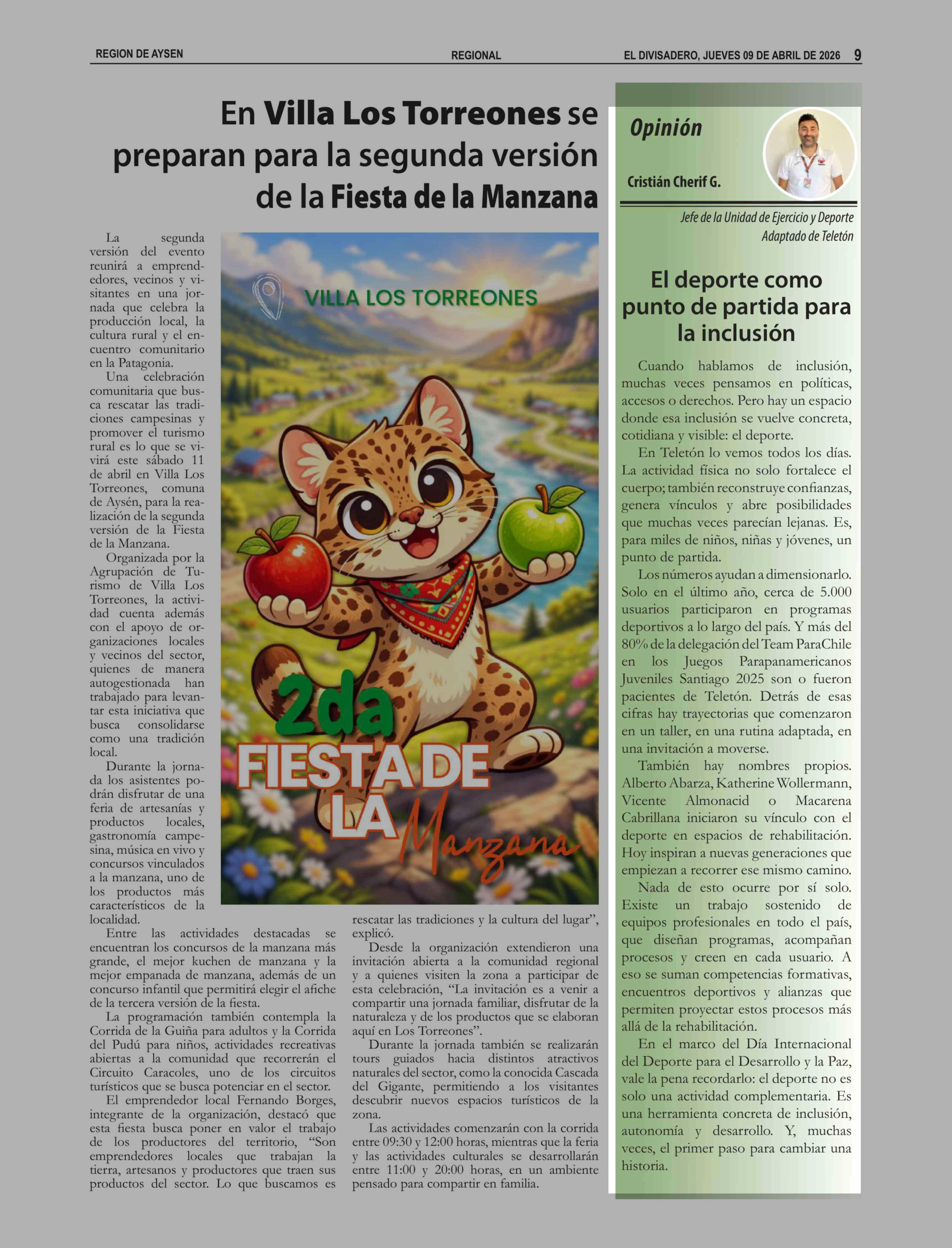 Columnas de Opinión: El deporte como punto de partida para la inclusión 09-04-2026 El Divisadero |