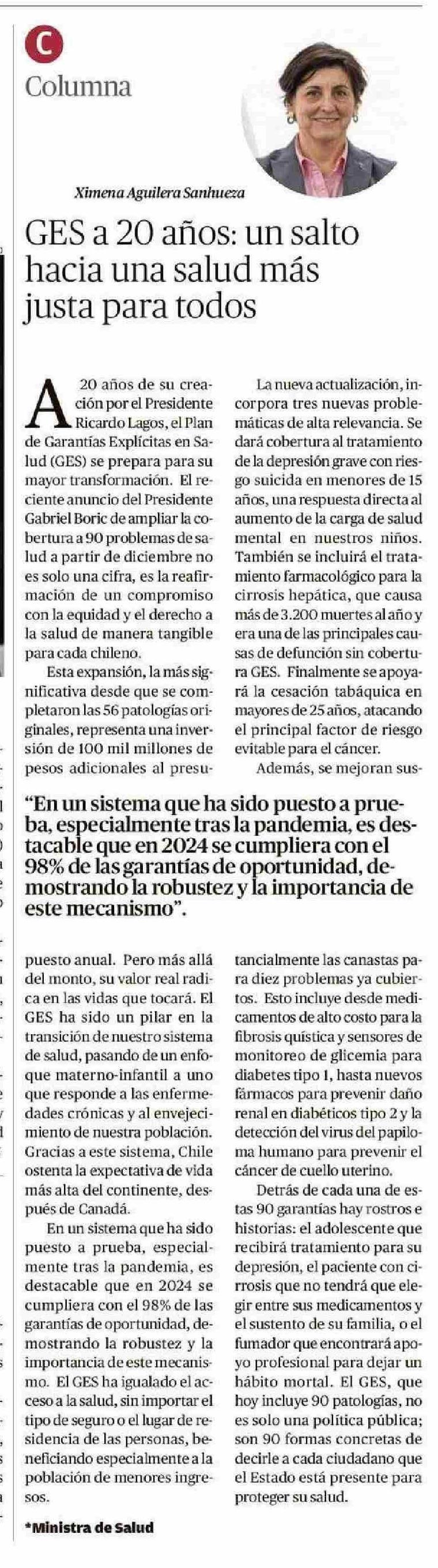 | Título: | Columnas de Opinión: GES a 20 años: un salto hacia una salud más justa para todos |