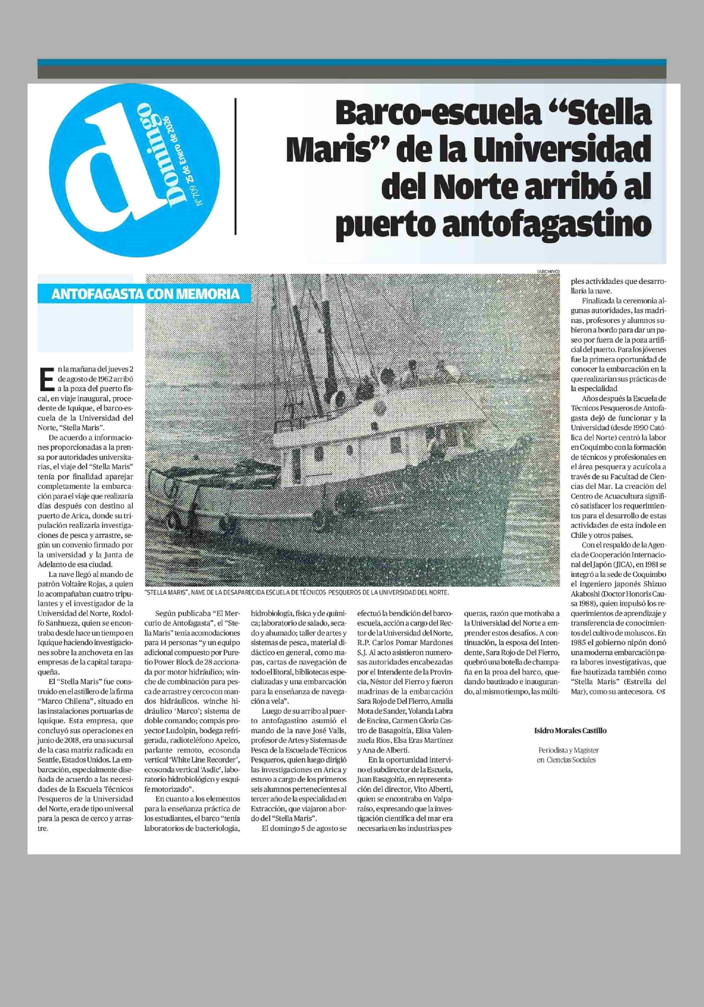 Barco-escuela “Stella Maris” de la Universidad del Norte arribó al puerto antofagastino 25-01-2026 El Mercurio de Calama |