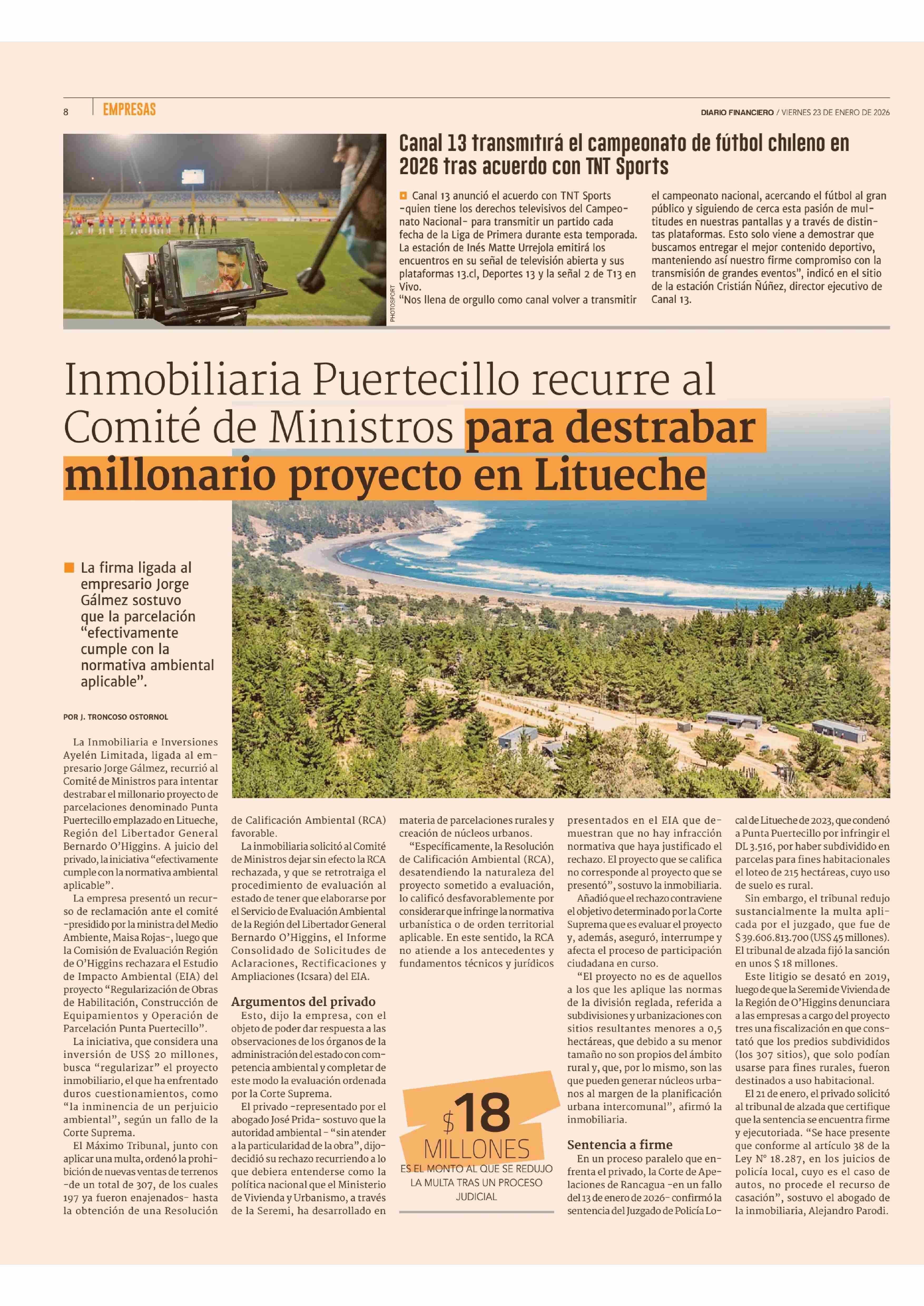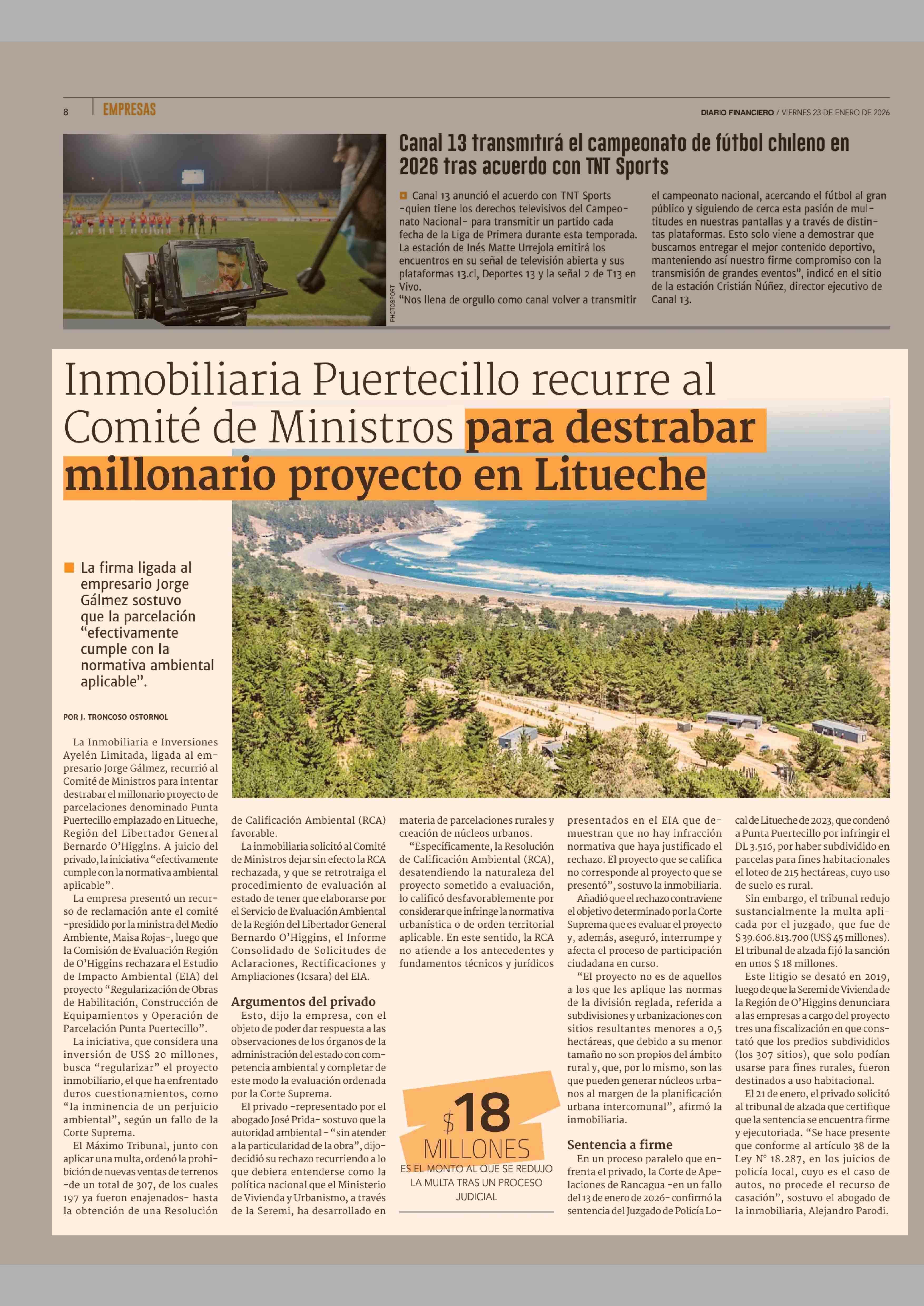 Título: Inmobiliaria Puertecillo recurre al Comité de Ministros para destrabar millonario proyecto en Litueche