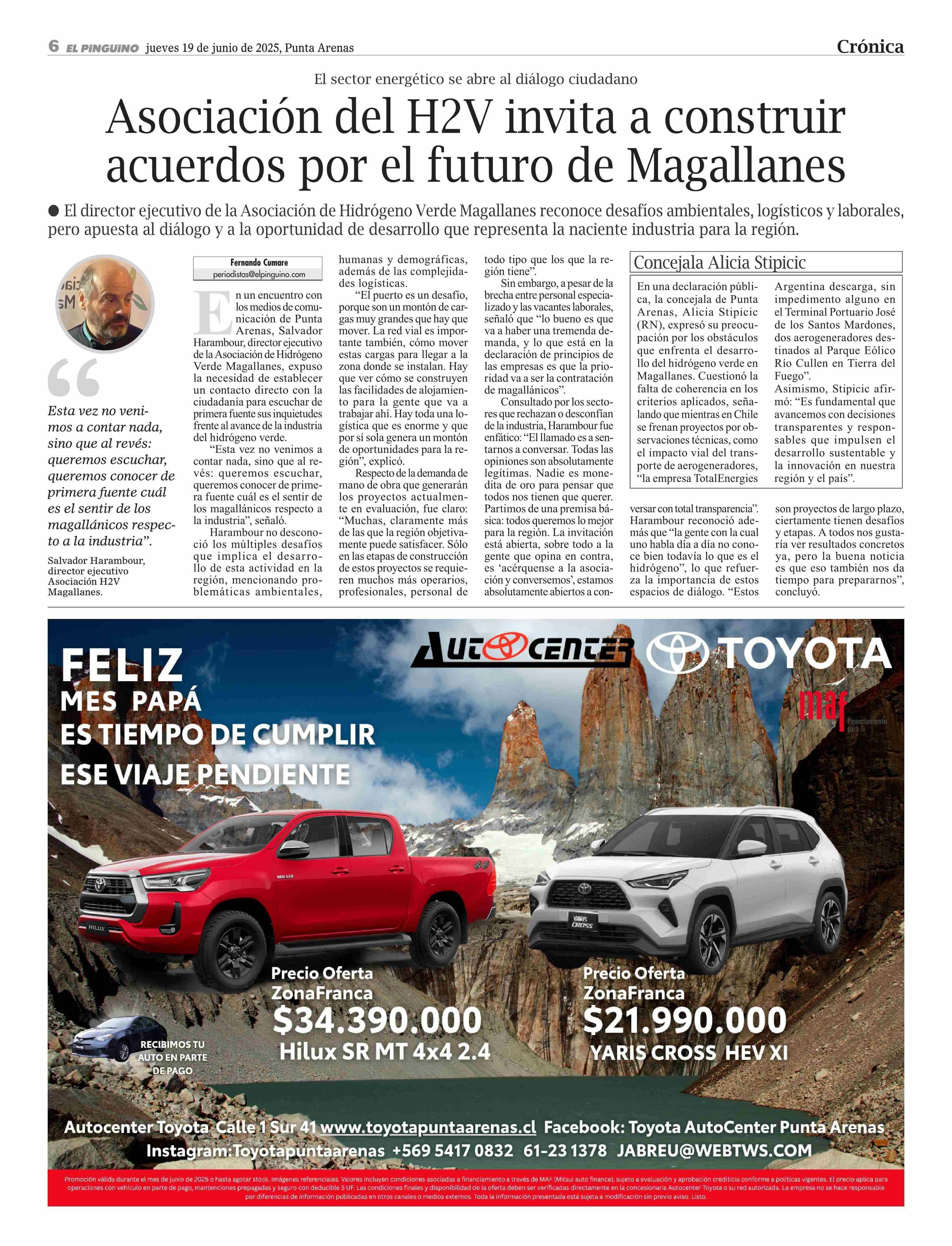 Asociación del H2V invita a construir acuerdos por el futuro de Magallanes 19-06-2025 El Pingüino |