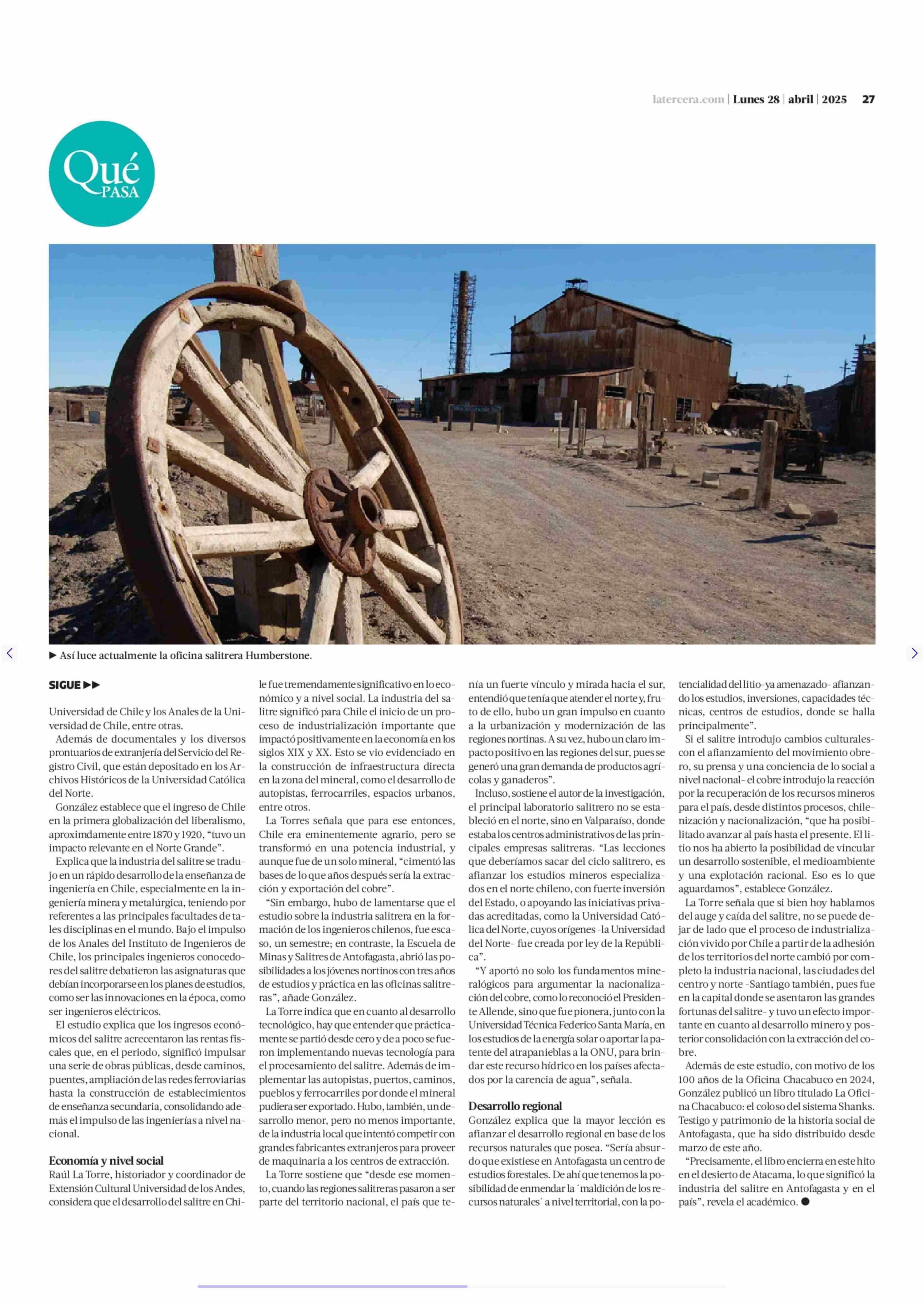 Ni Arica ni el Huáscar: la desconocida herencia del salitre en el país 28-04-2025 La Tercera |