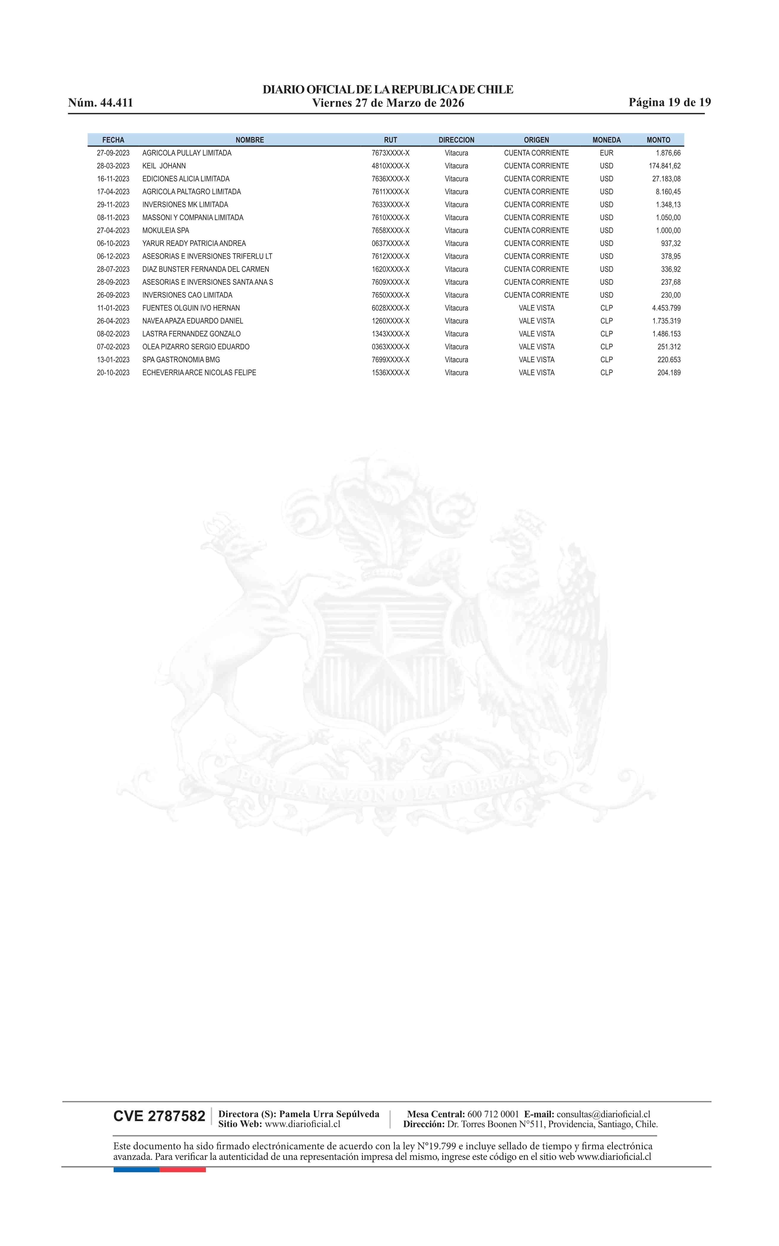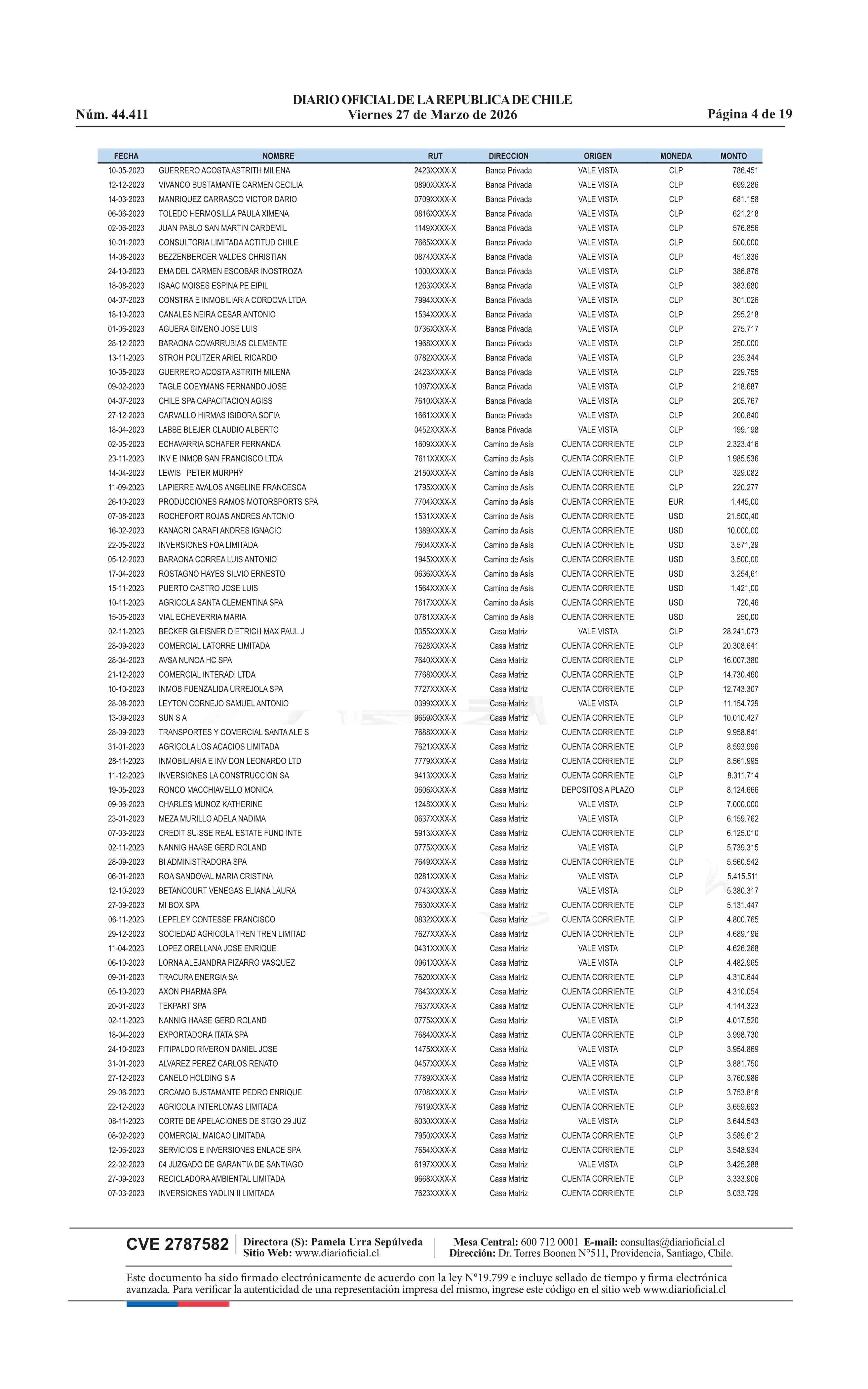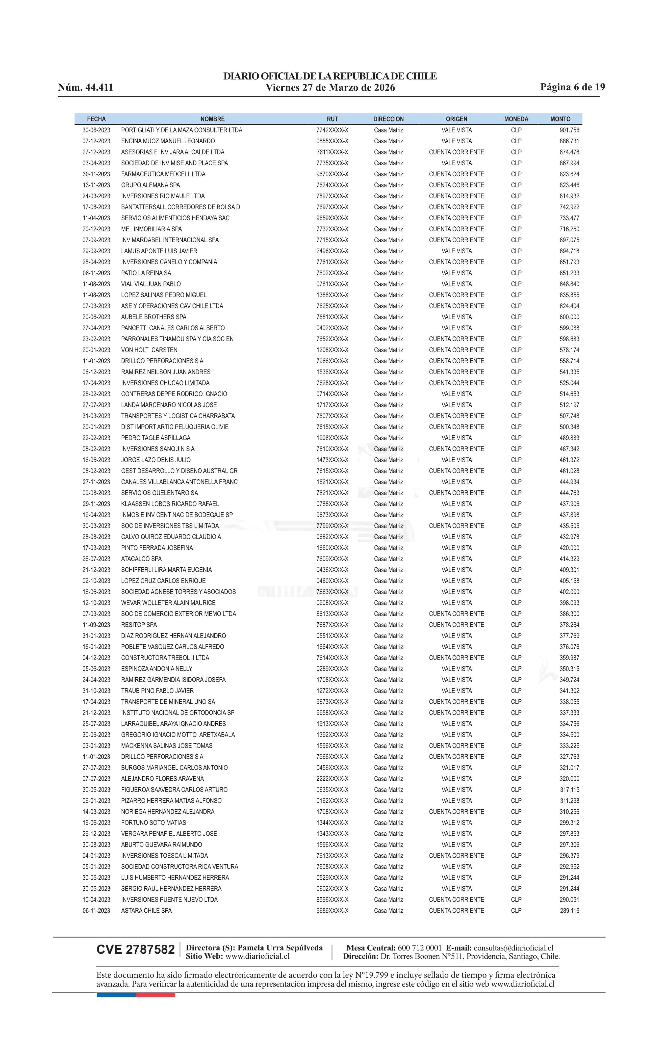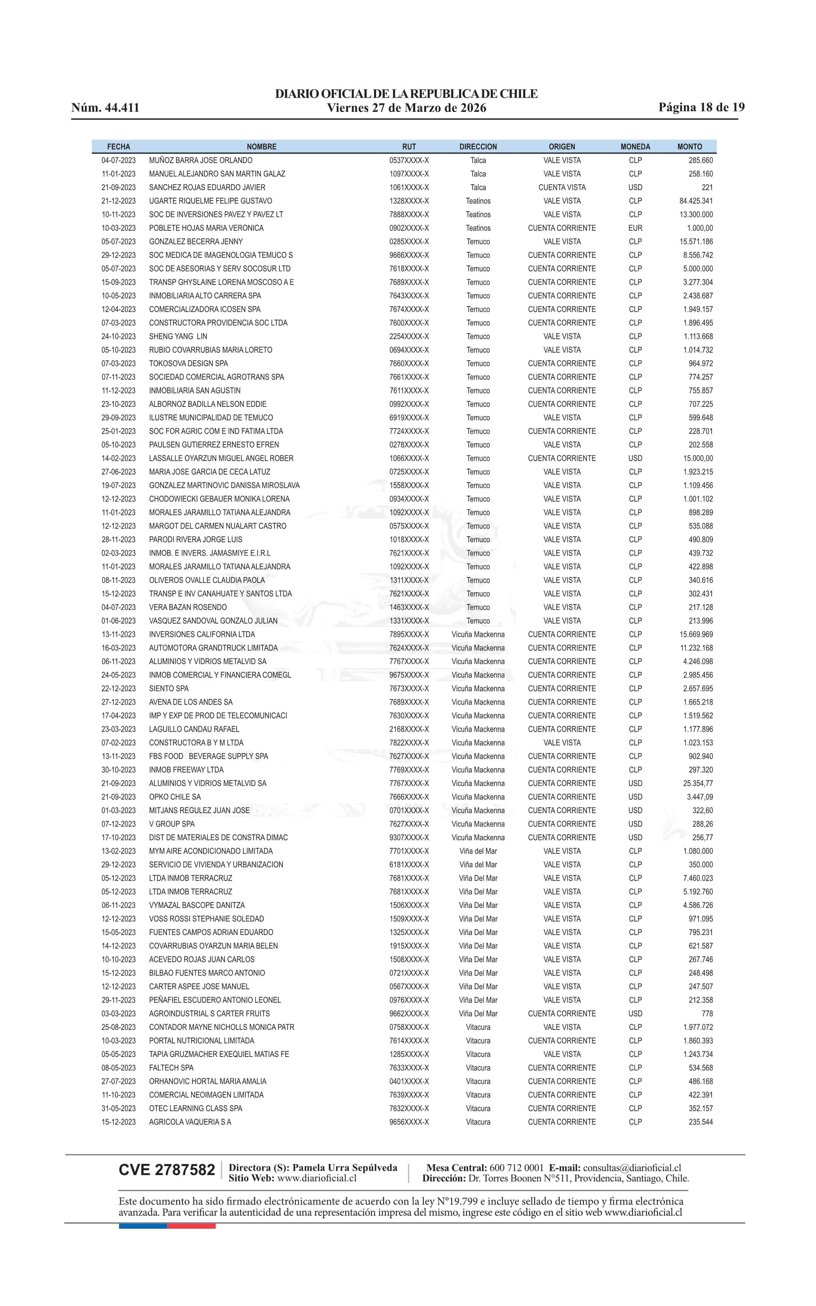 | Fuente: | Diario Oficial Edición Electrónica (Diario Oficial de Chile - 4 Avisos Destacados) | Página(s): | 13-31 |