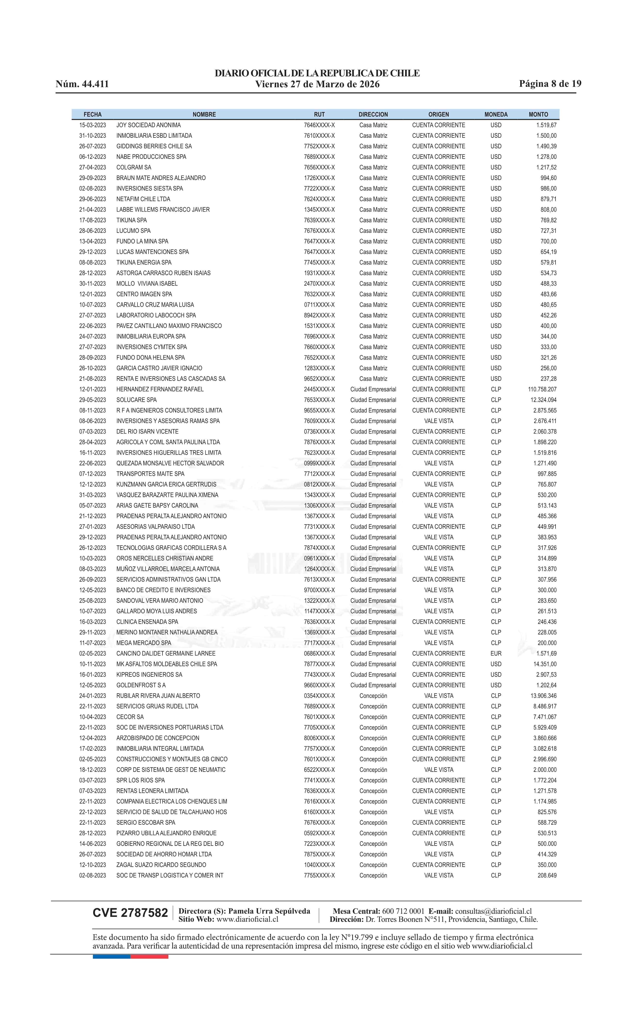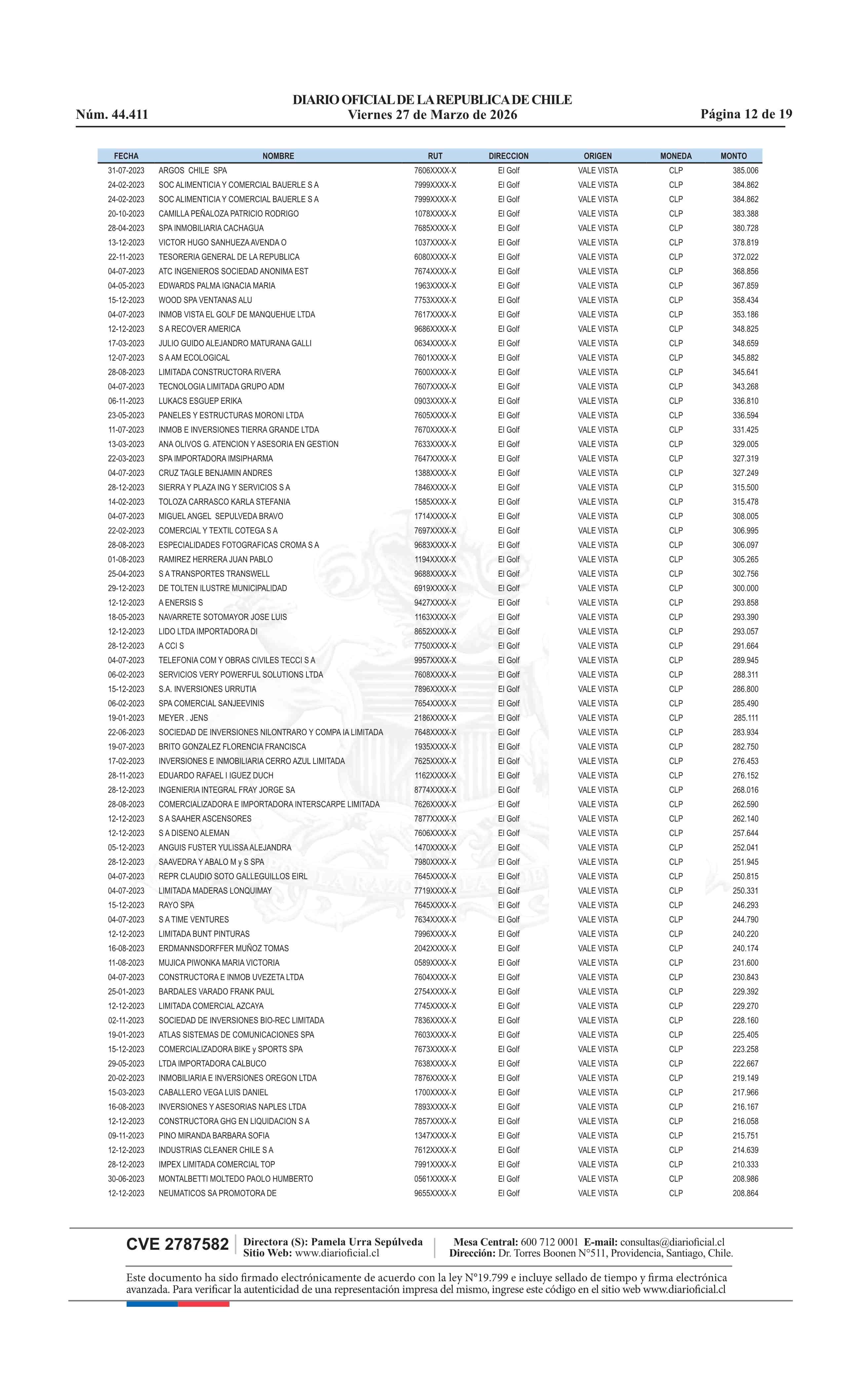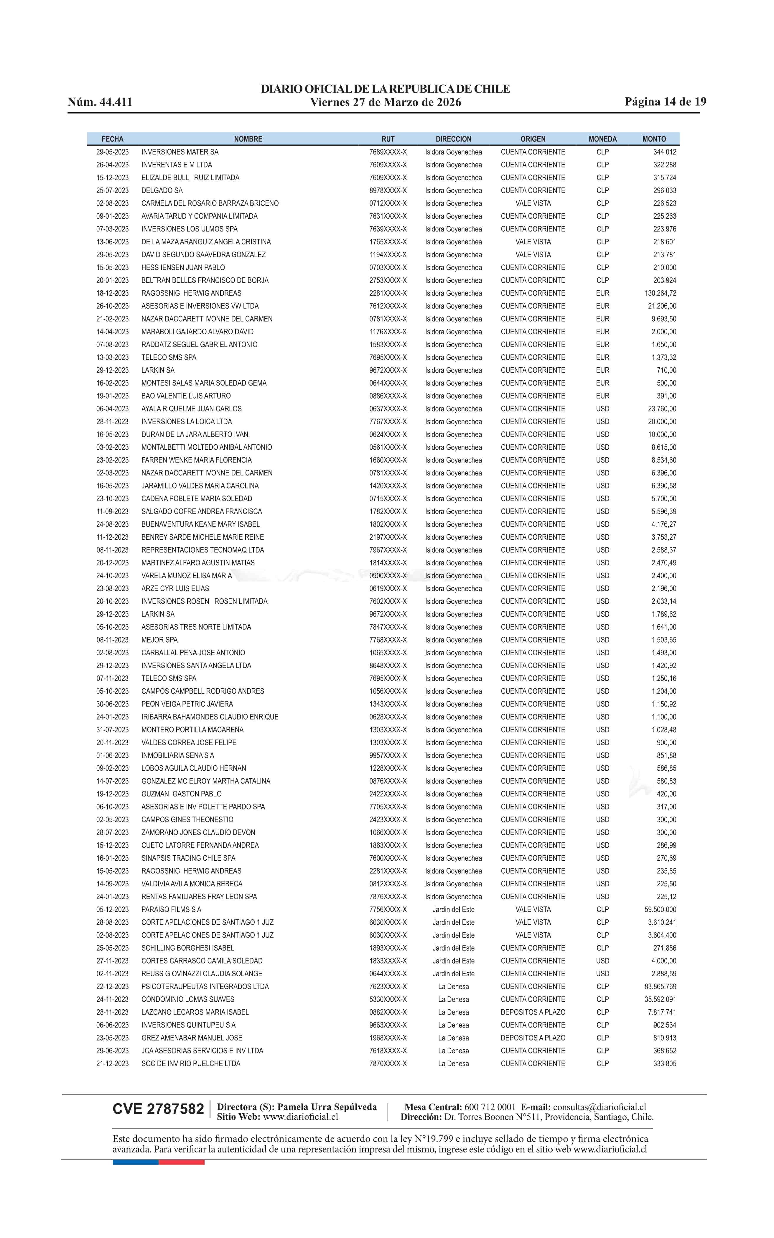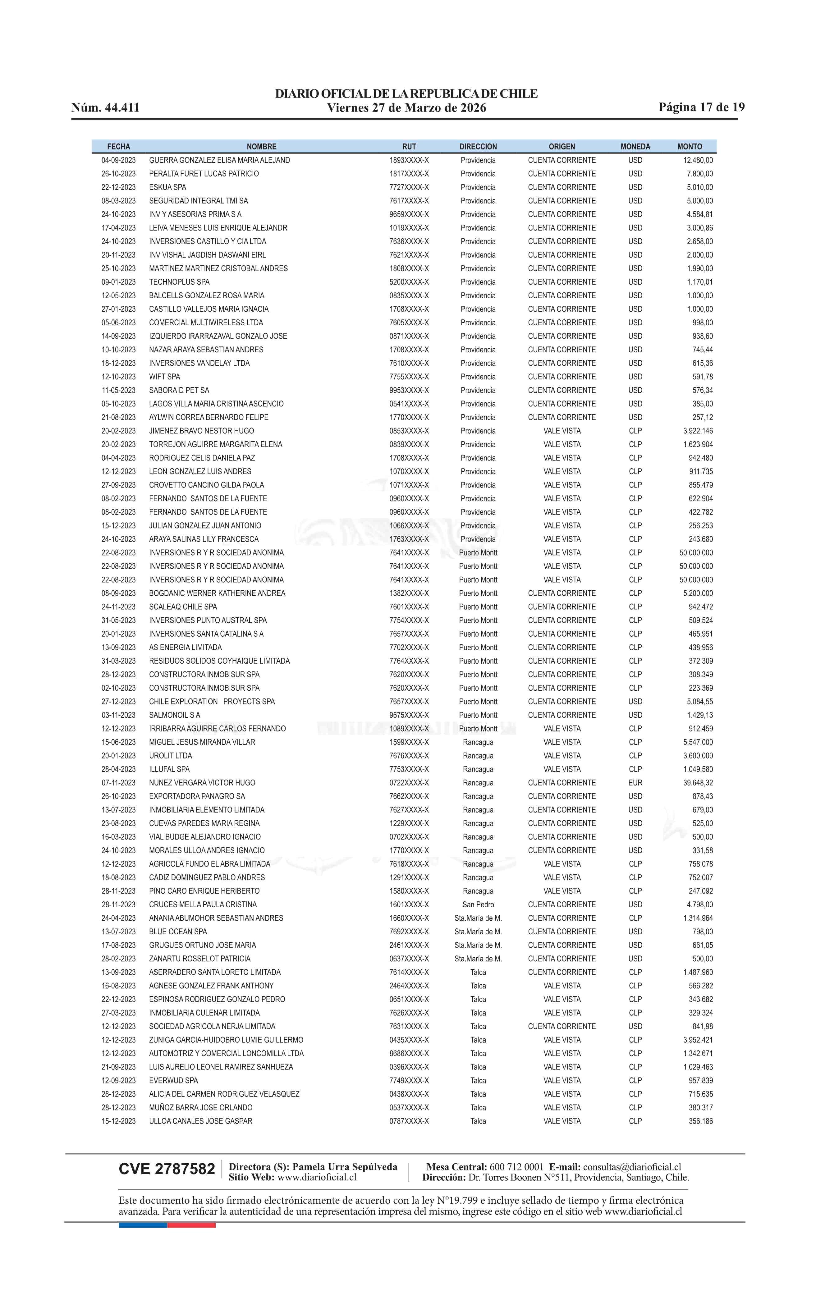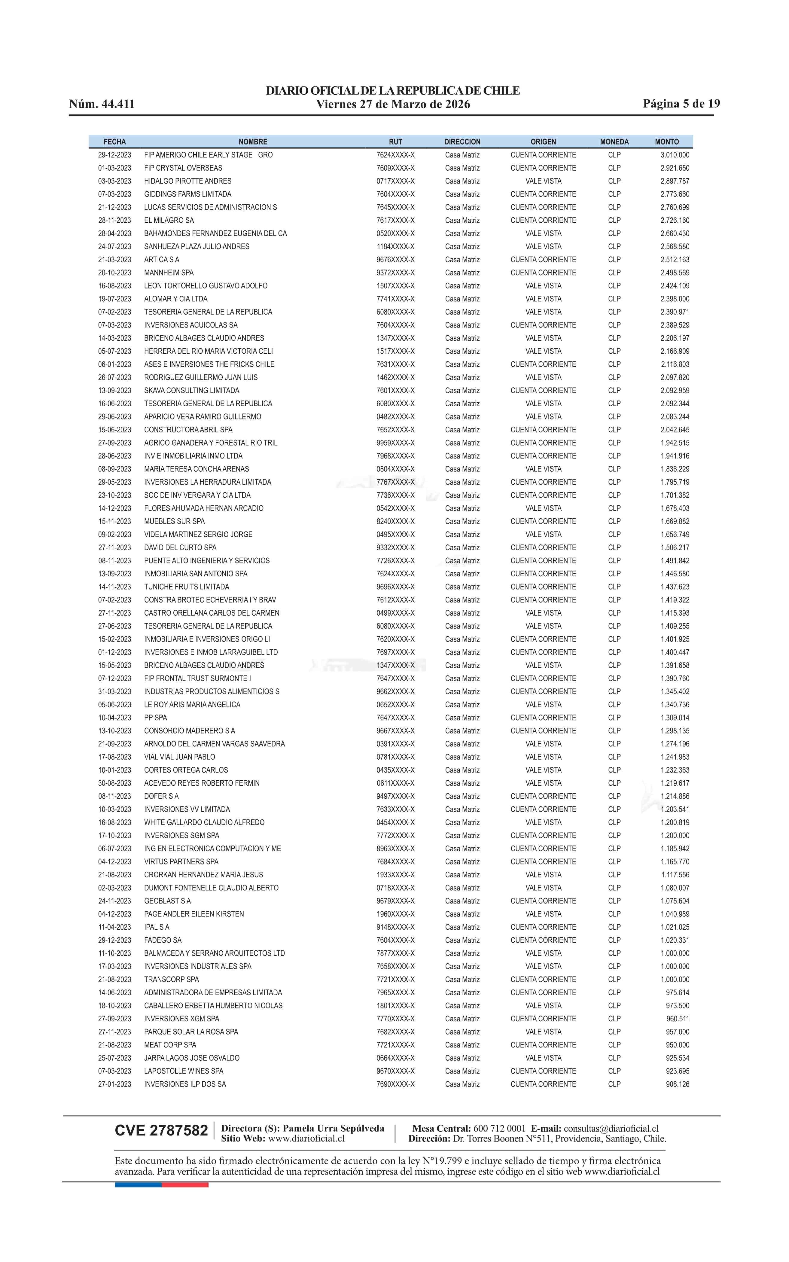| Fuente: | Diario Oficial Edición Electrónica (Diario Oficial de Chile - 4 Avisos Destacados) | Página(s): | 13-31 |