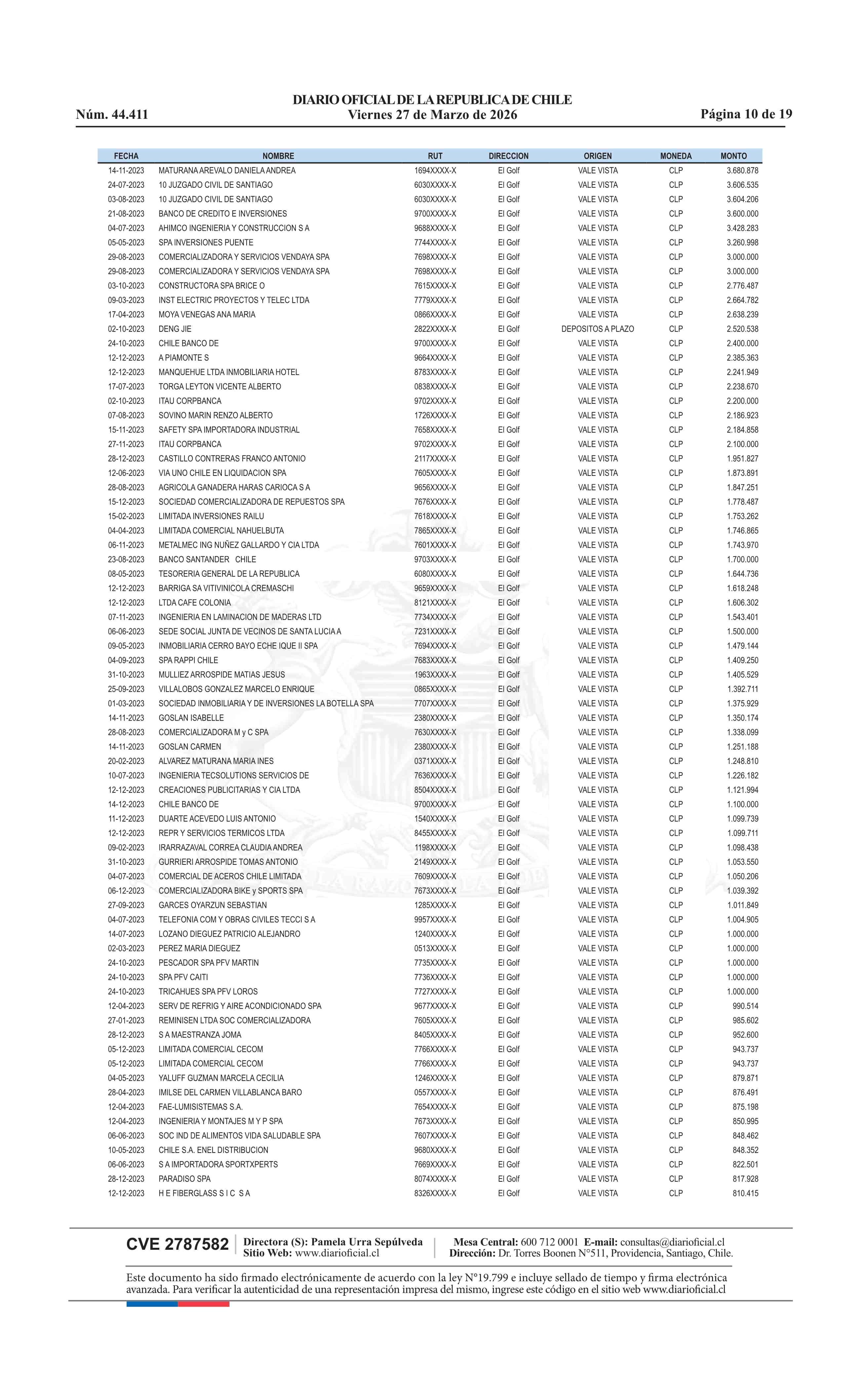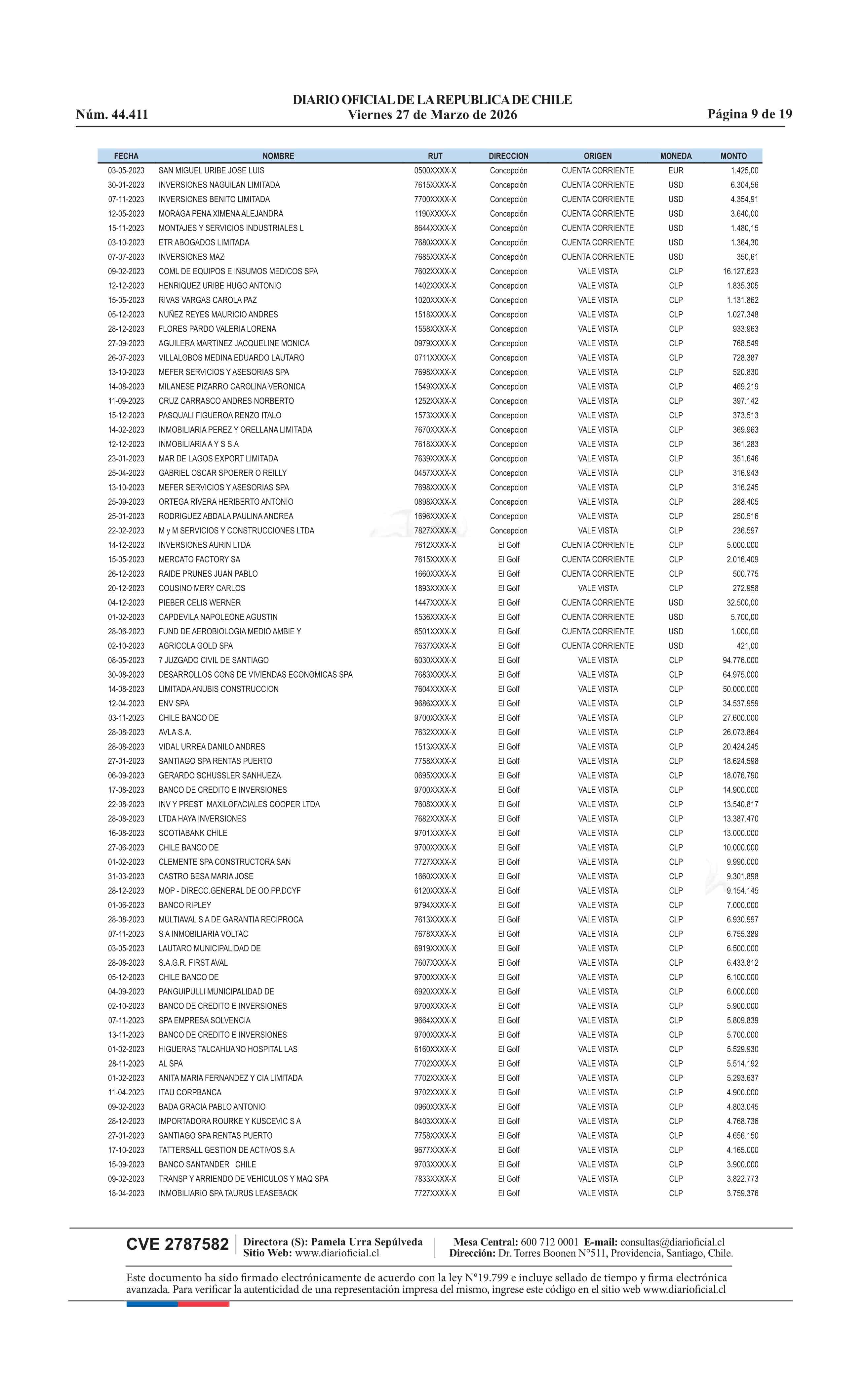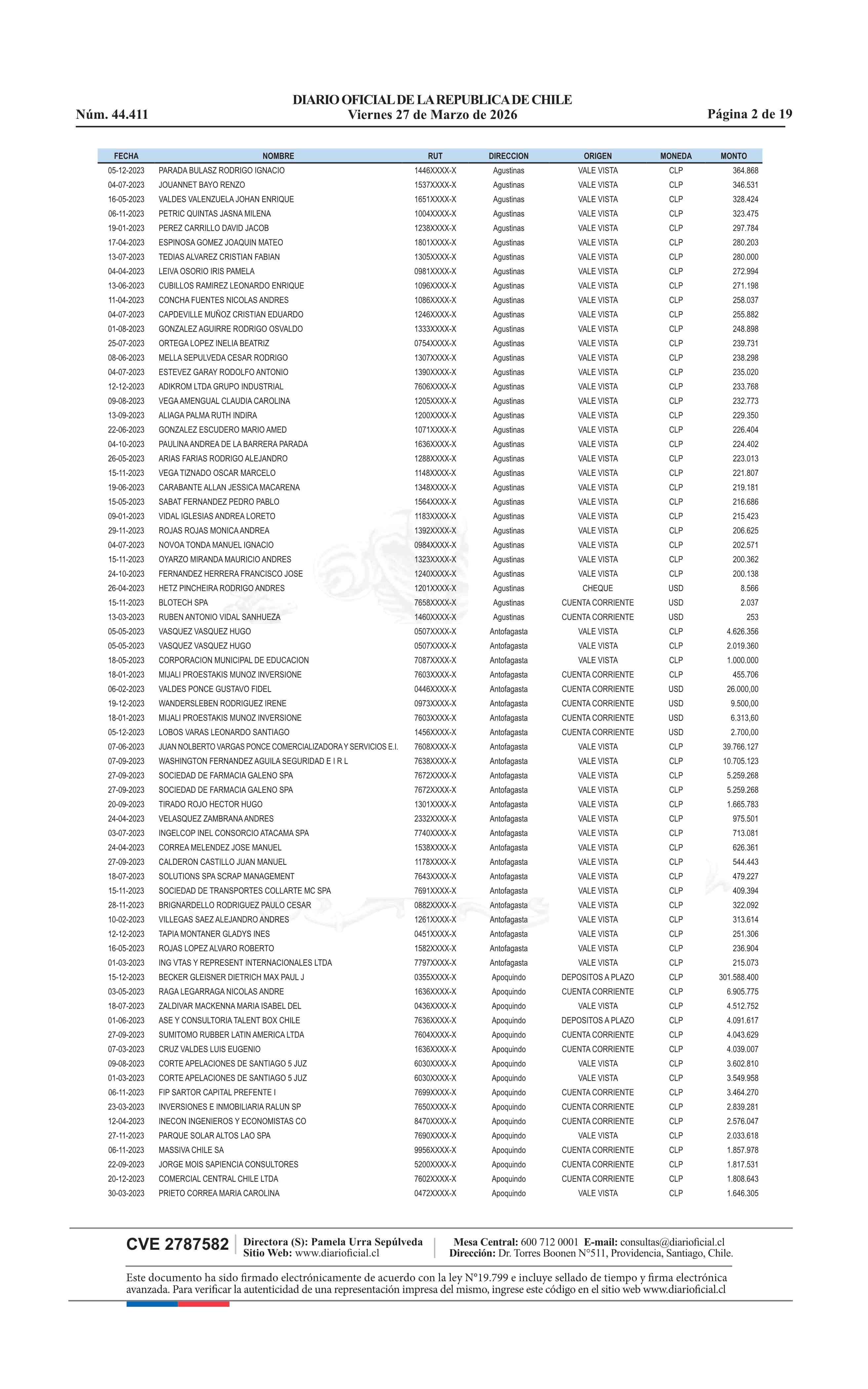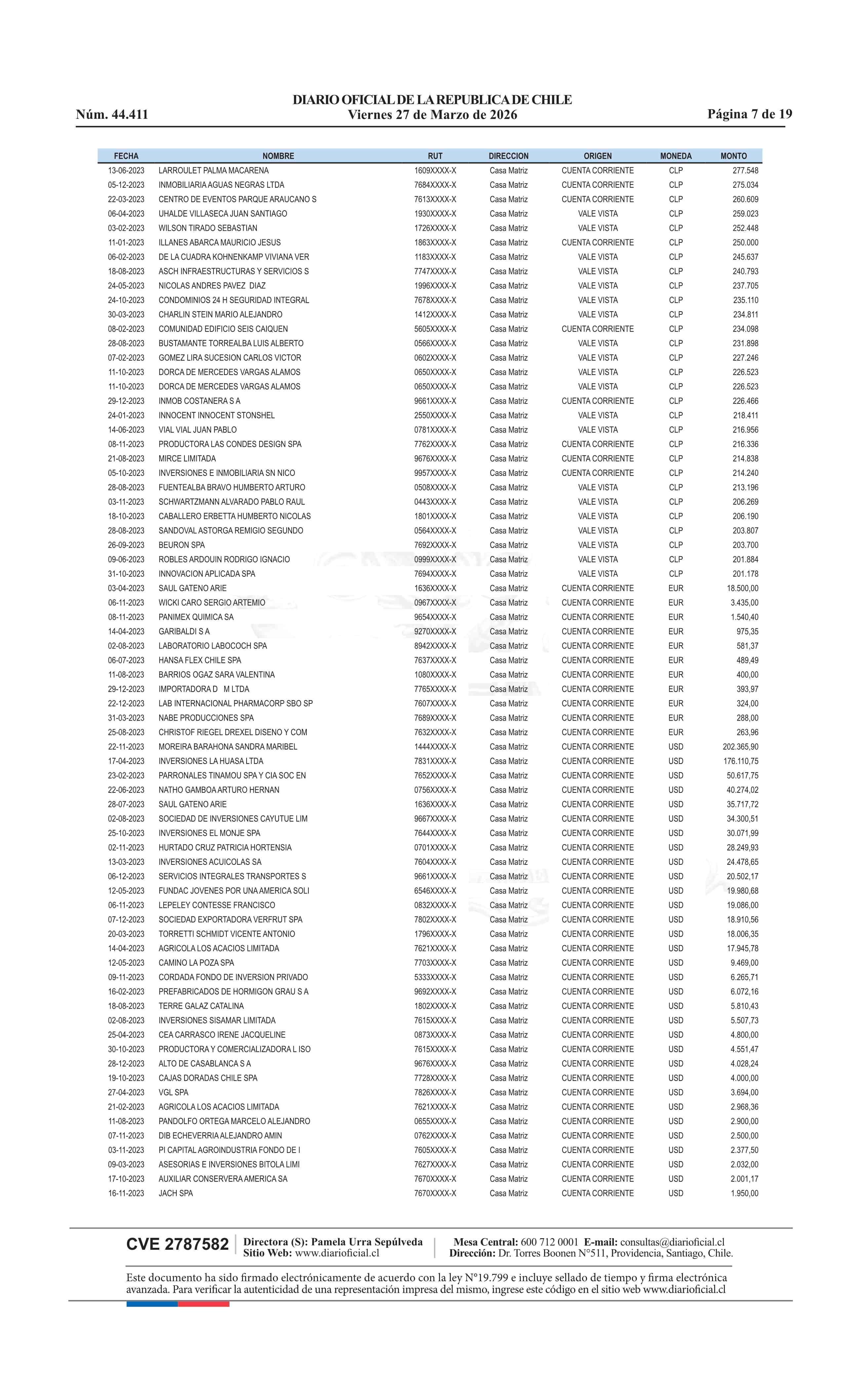 | Fuente: | Diario Oficial Edición Electrónica (Diario Oficial de Chile - 4 Avisos Destacados) | Página(s): | 13-31 |