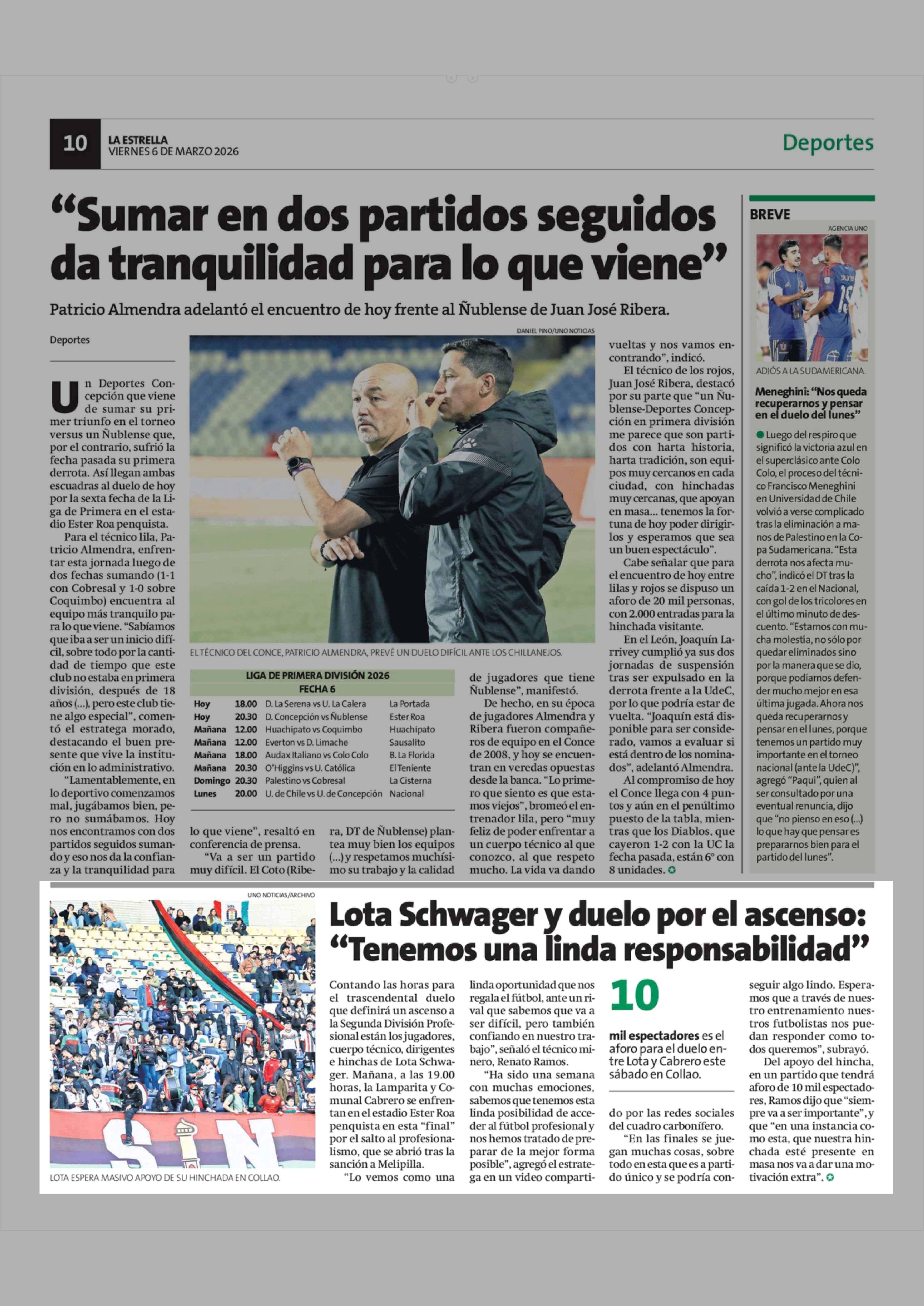 Lota Schwager y duelo por el ascenso: "Tenemos una linda responsabilidad" 06-03-2026 La Estrella de Concepción |