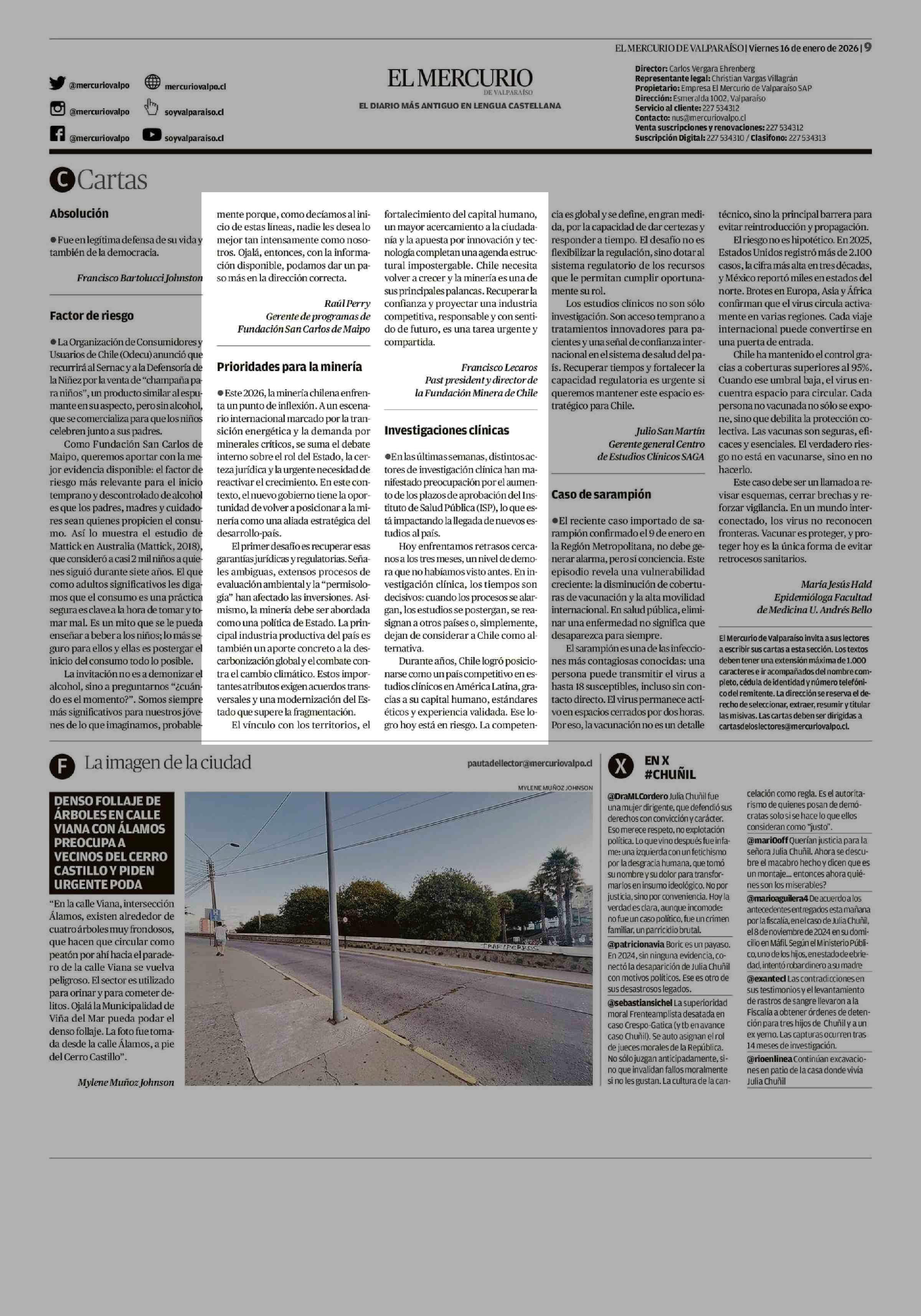 CARTA: Prioridades para la minería 16-01-2026 El Mercurio de Valparaíso |