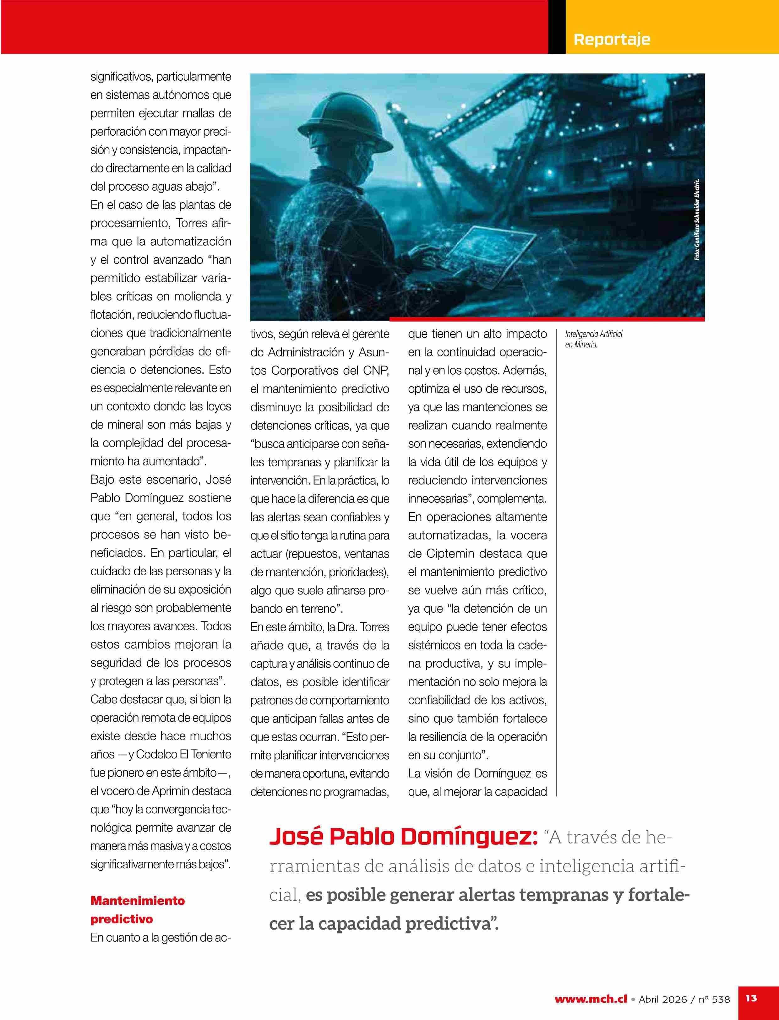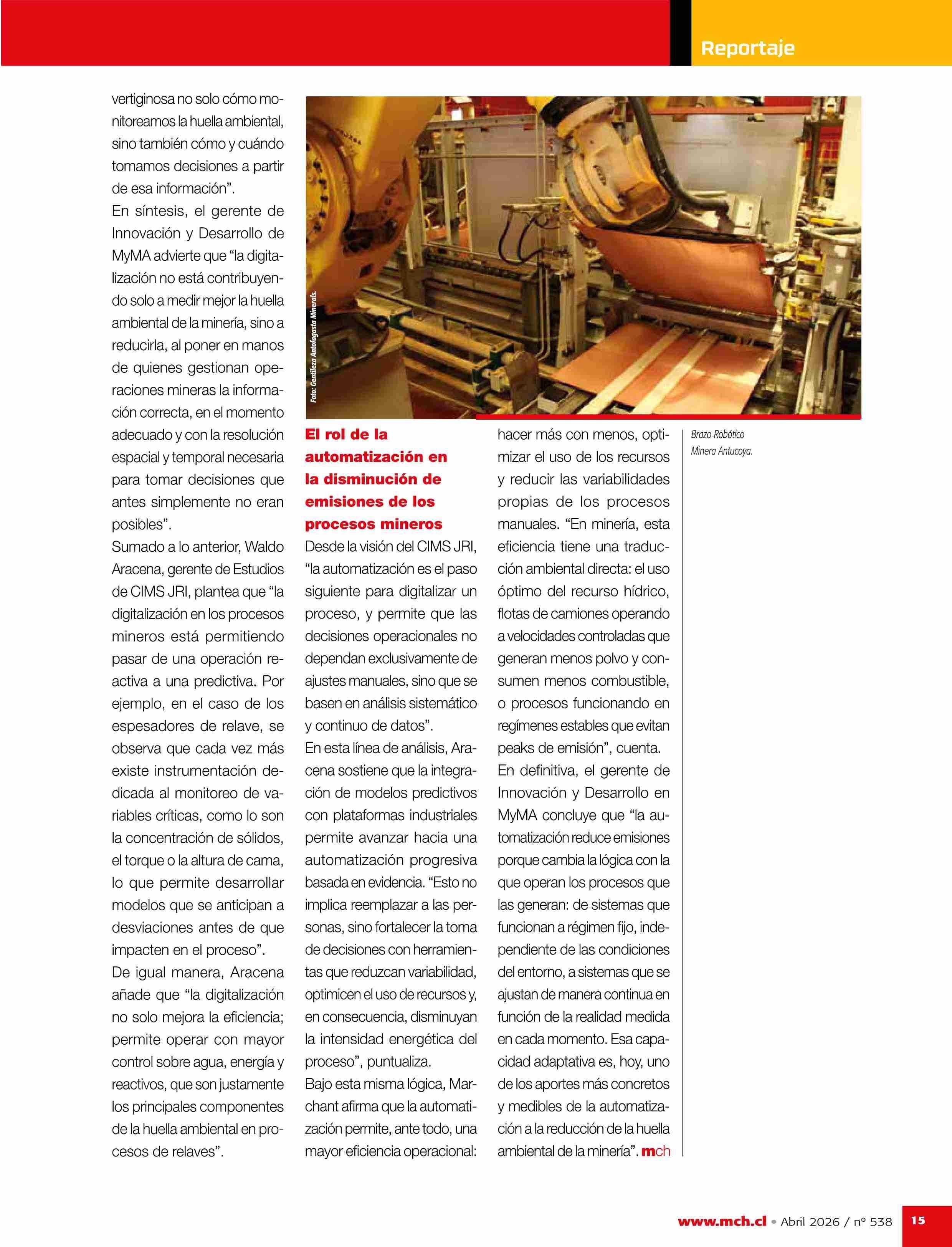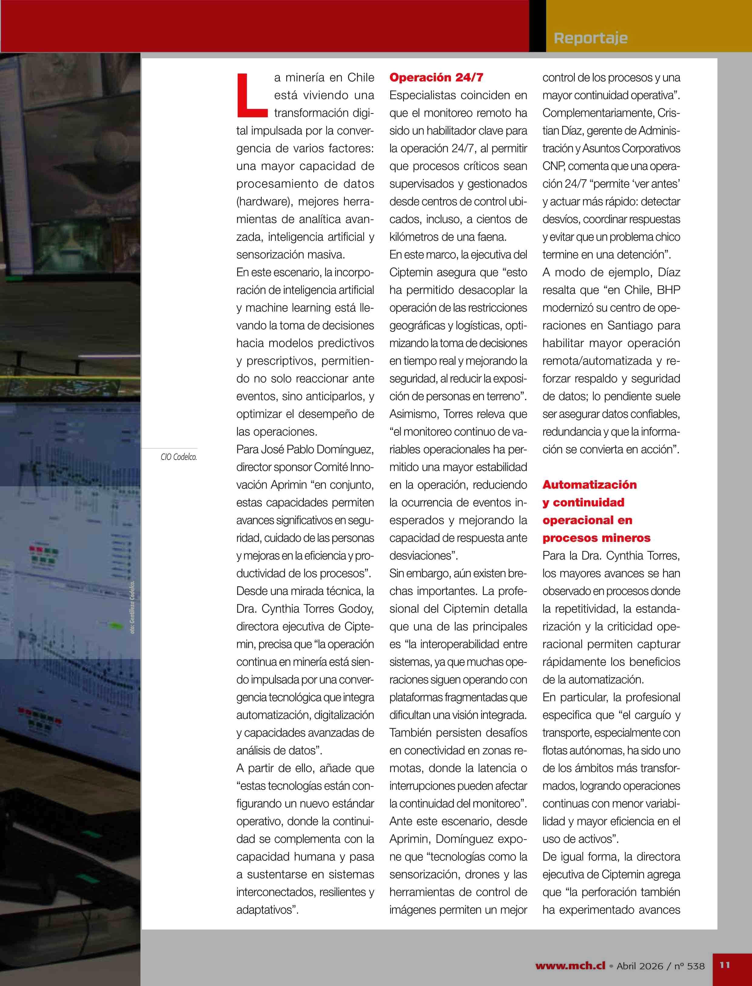 Hacia una industria más eficiente, segura y sostenible 23-04-2026 Revista Minería Chilena |
