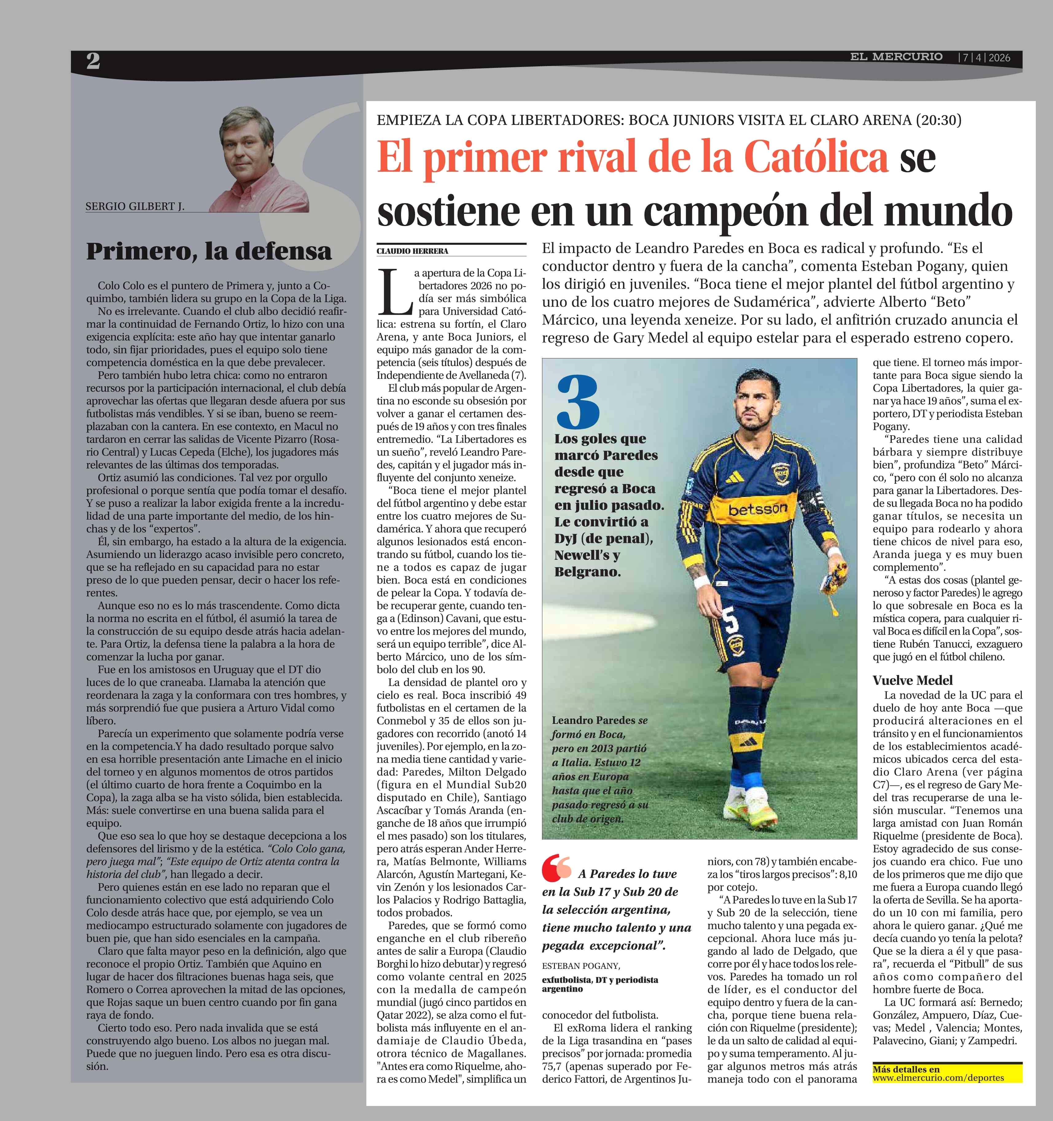 El primer rival de la Católica se sostiene en un campeón del mundo 07-04-2026 El Mercurio |