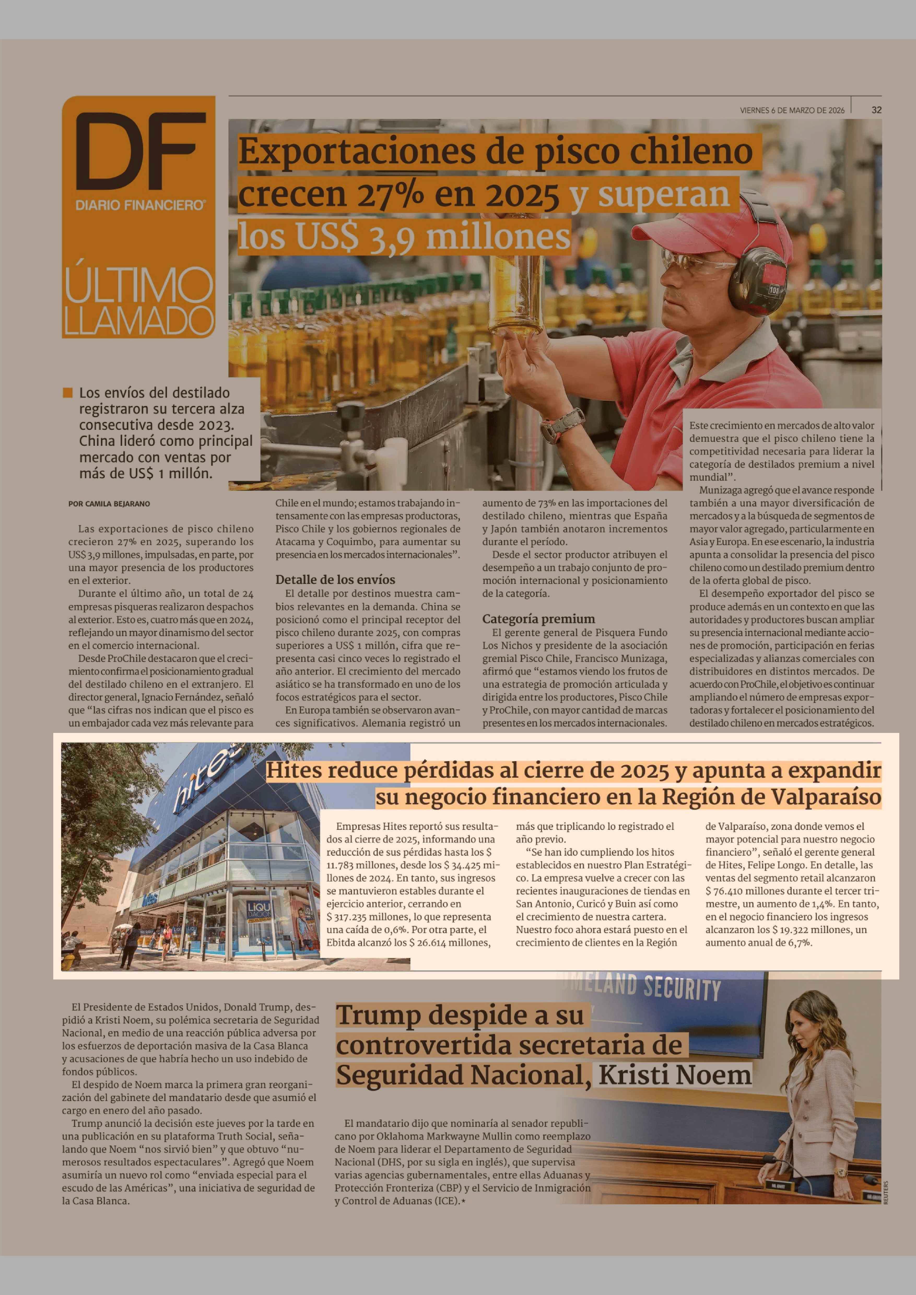 Hites reduce pérdidas al cierre de 2025 y apunta a expandir su negocio financiero en la Región de Valparaíso 06-03-2026 Diario Financiero |