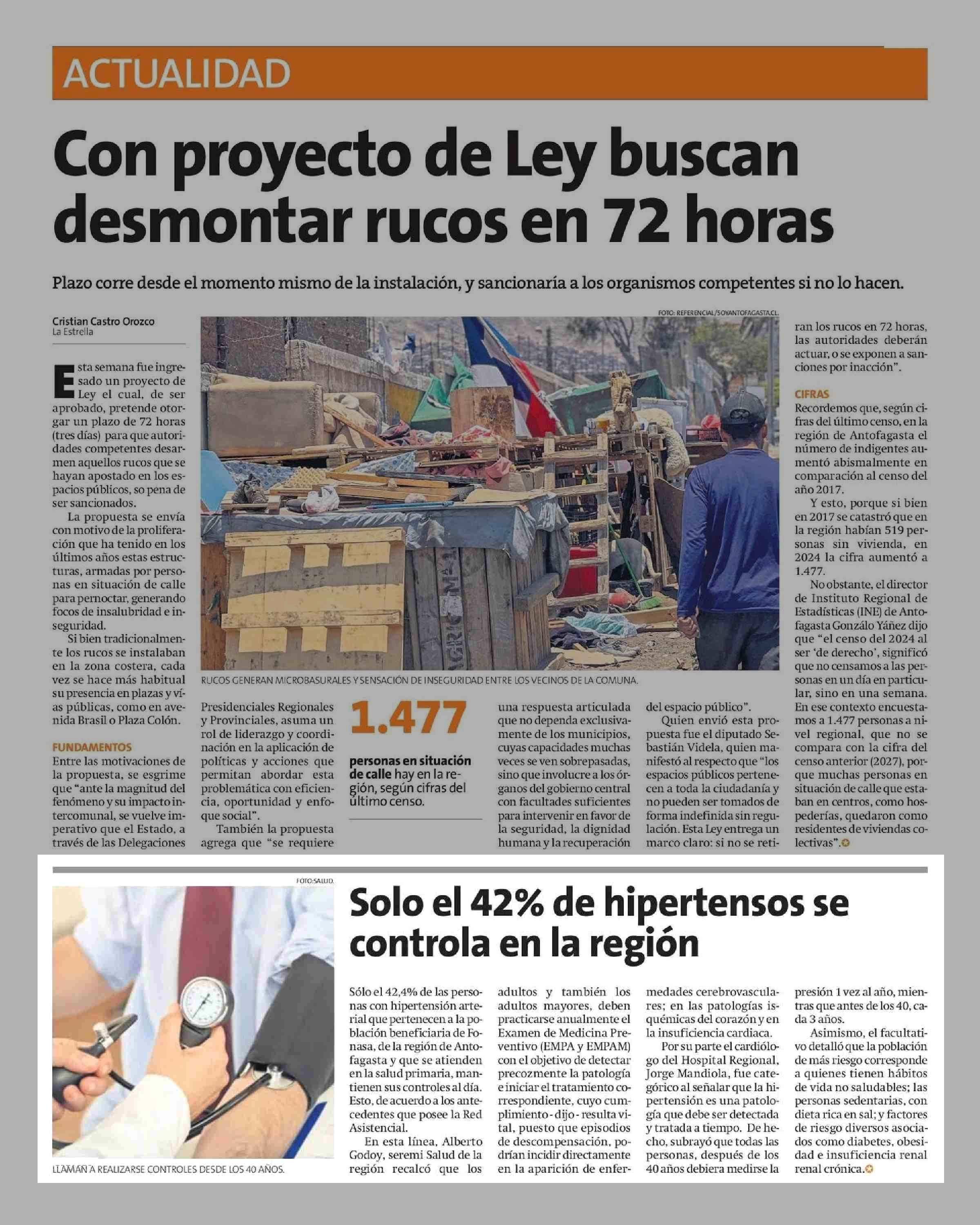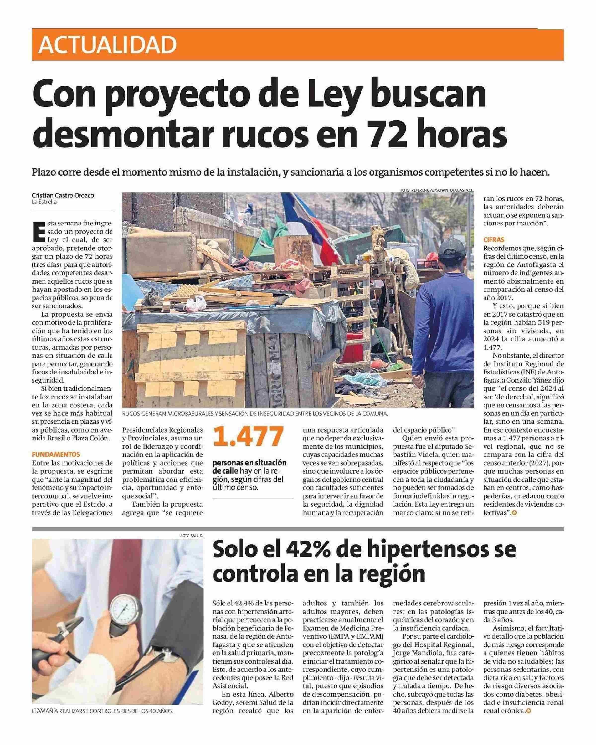 Solo el 42% de hipertensos se controla en la región 27-05-2025 La Estrella de Antofagasta |
