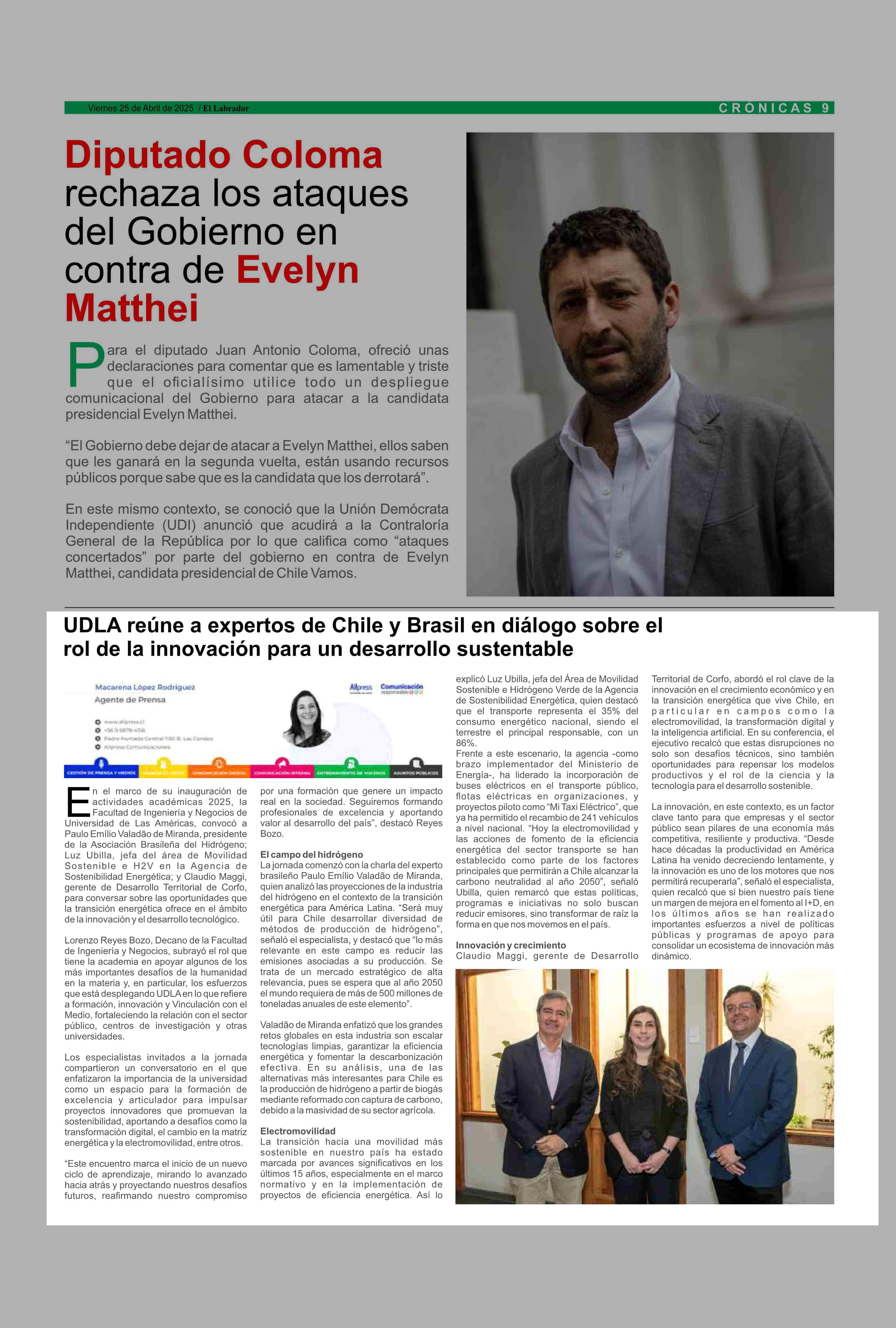 UDLA reúne a expertos de Chile y Brasil en diálogo sobre el rol de la innovación para un desarrollo sustentable 25-04-2025 El Labrador |