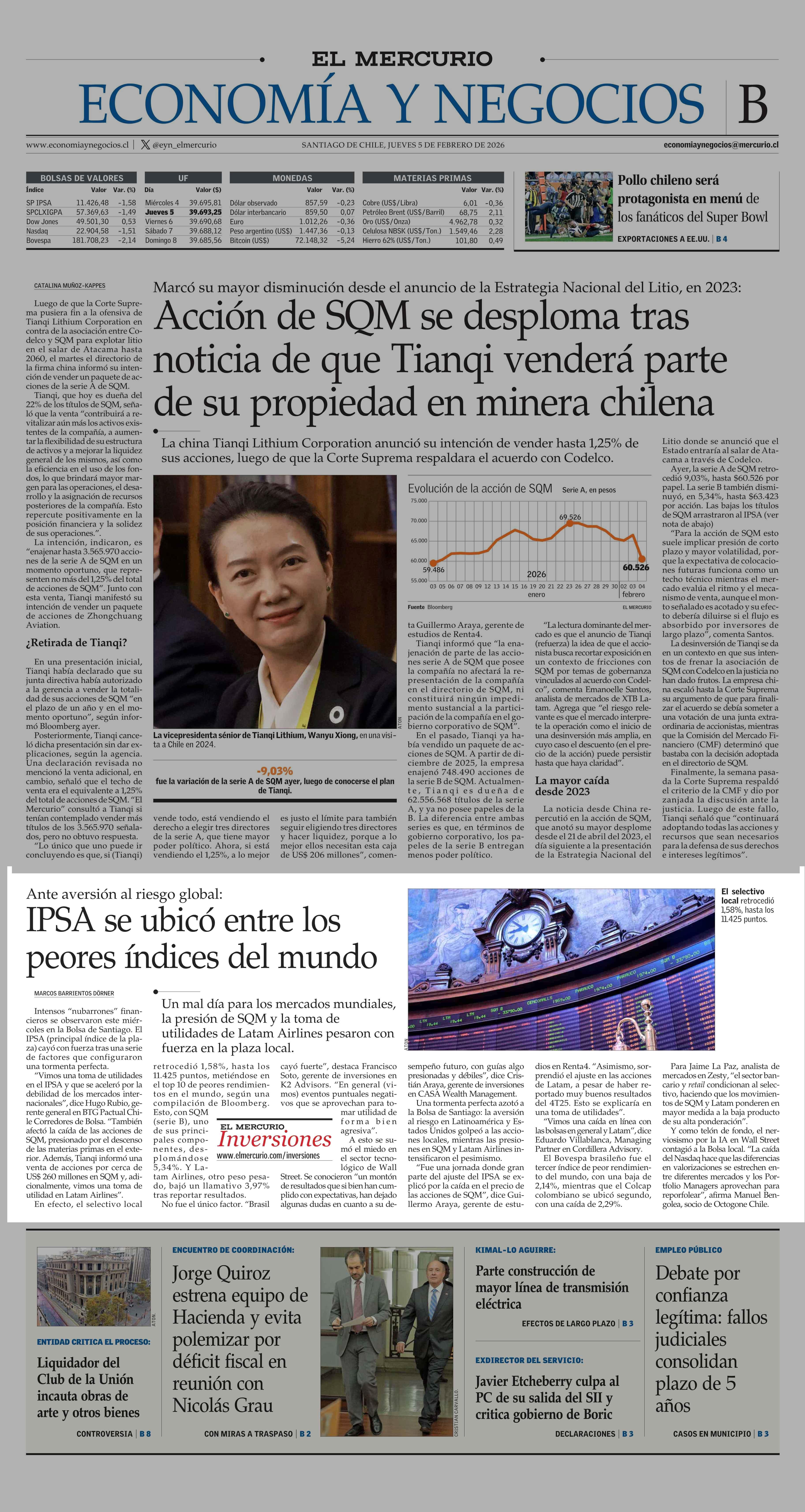IPSA se ubicó entre los peores índices del mundo 05-02-2026 El Mercurio |